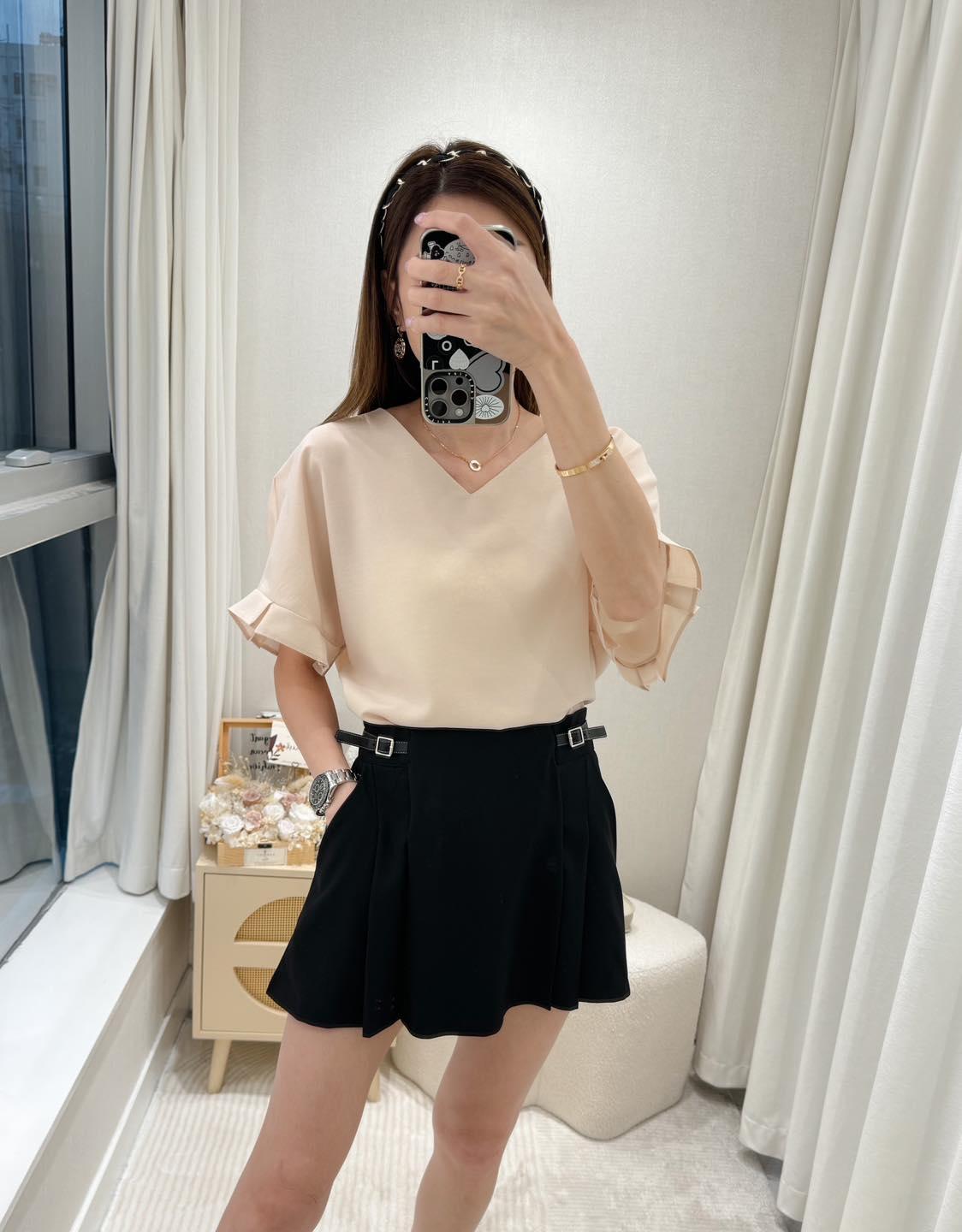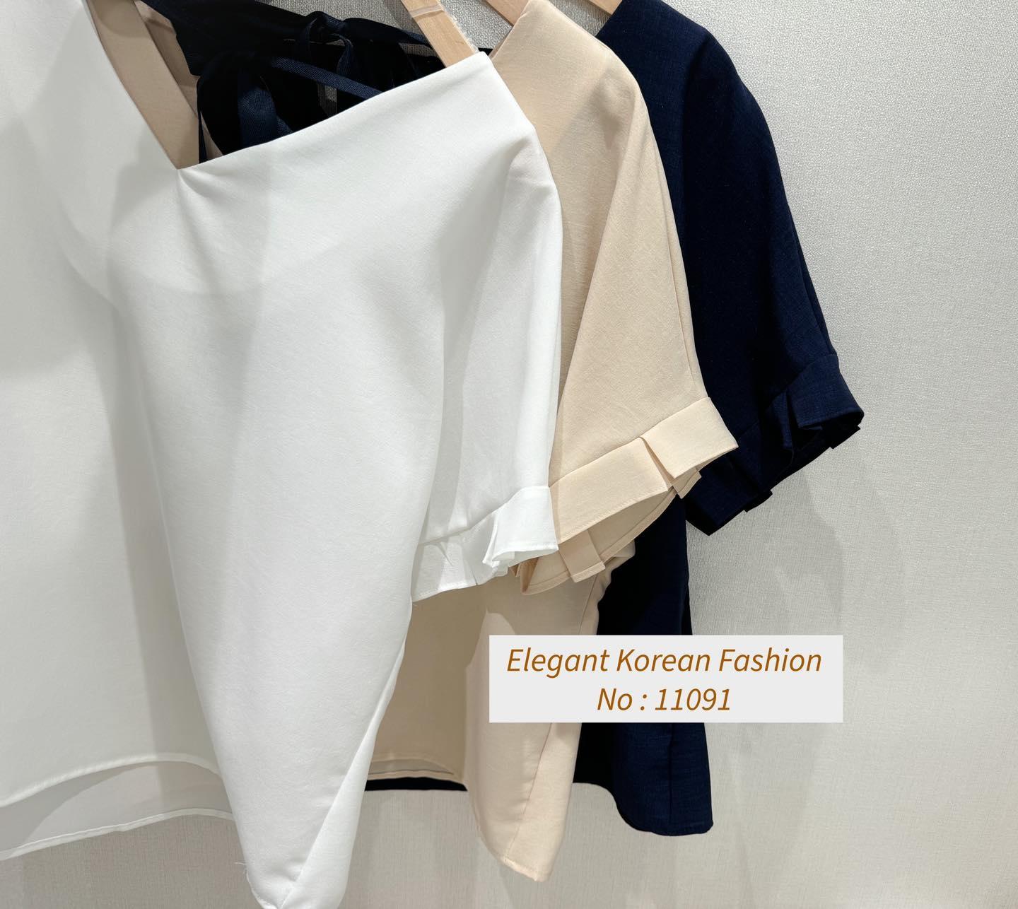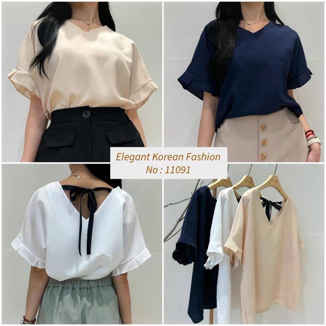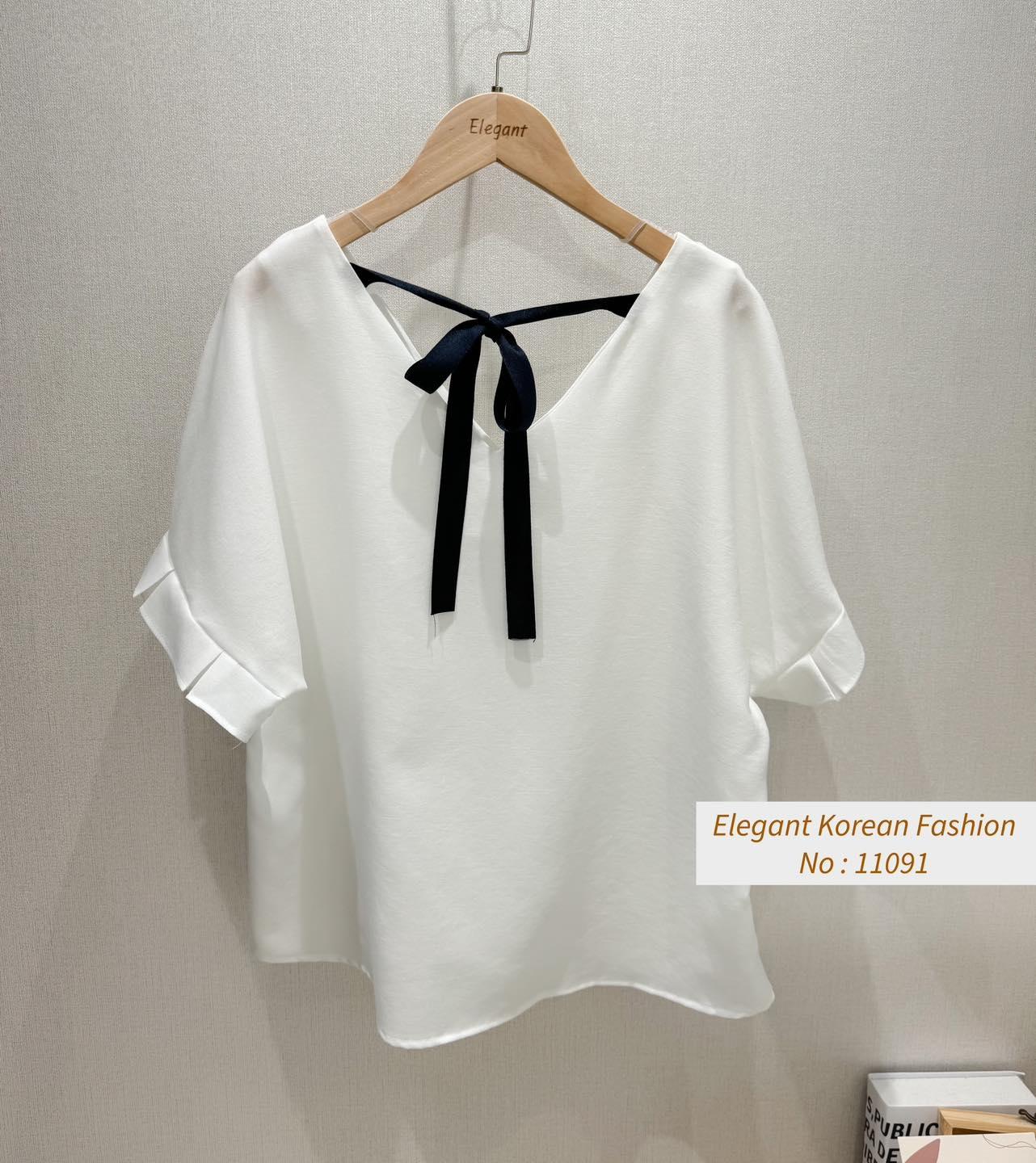 背綁蝴蝶結Top 百摺袖位靚呀 襯裙或褲都好睇呀 雪紡料 白色淺杏深藍3 Colour No: 11091 Size : Chest 42 Length 23"