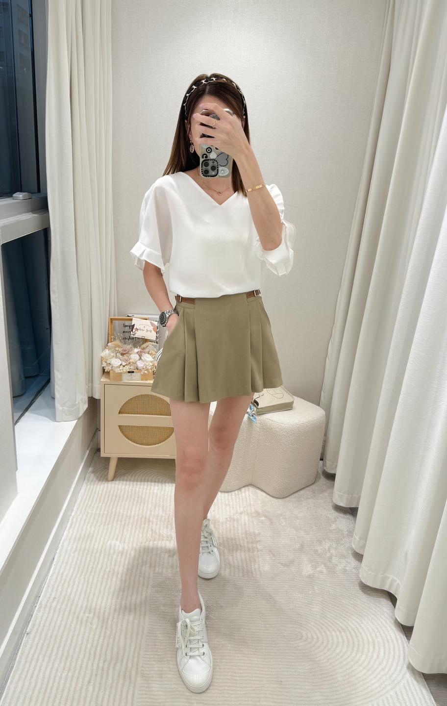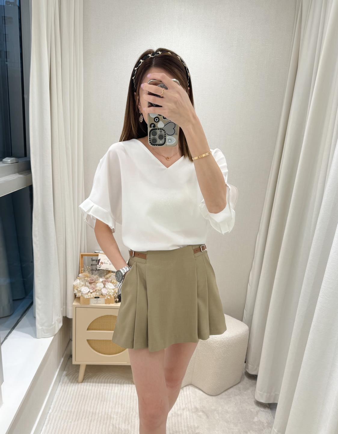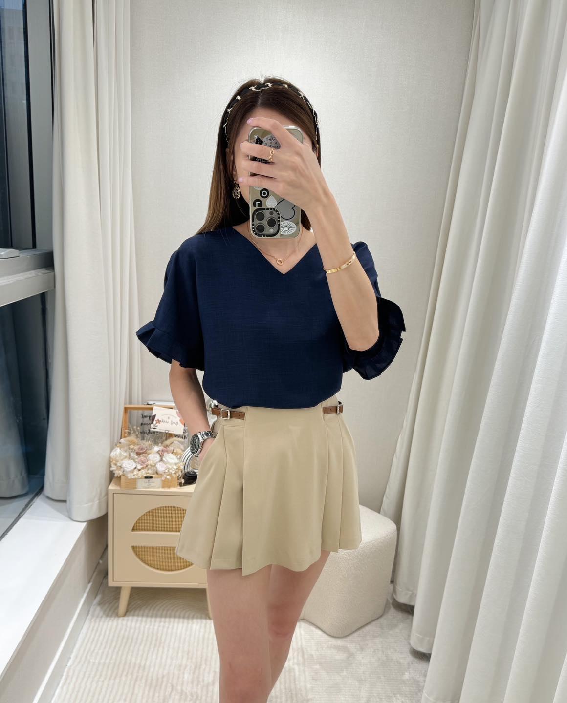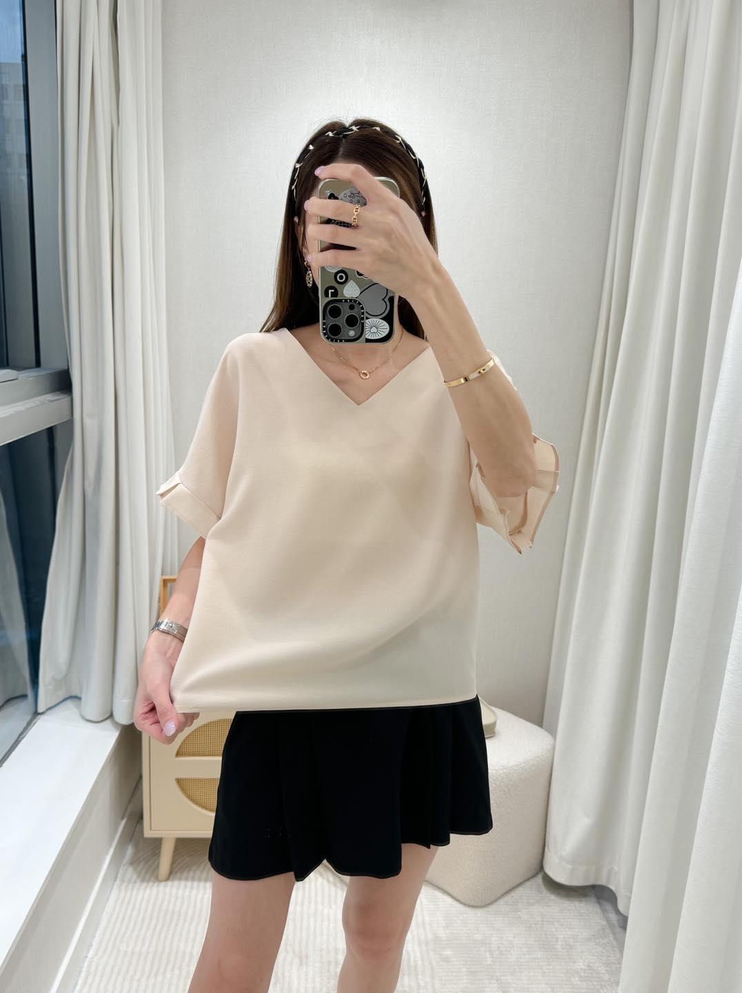 背綁蝴蝶結Top 百摺袖位靚呀 襯裙或褲都好睇呀 雪紡料 白色淺杏深藍3 Colour No: 11091 Size : Chest 42 Length 23"