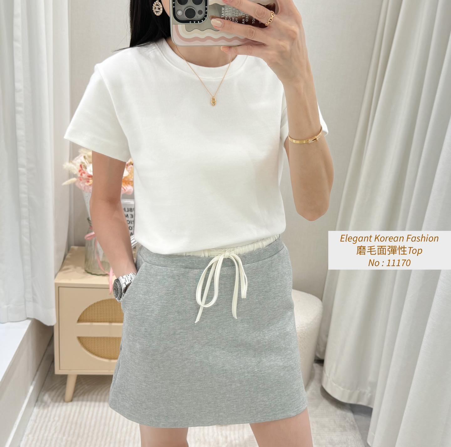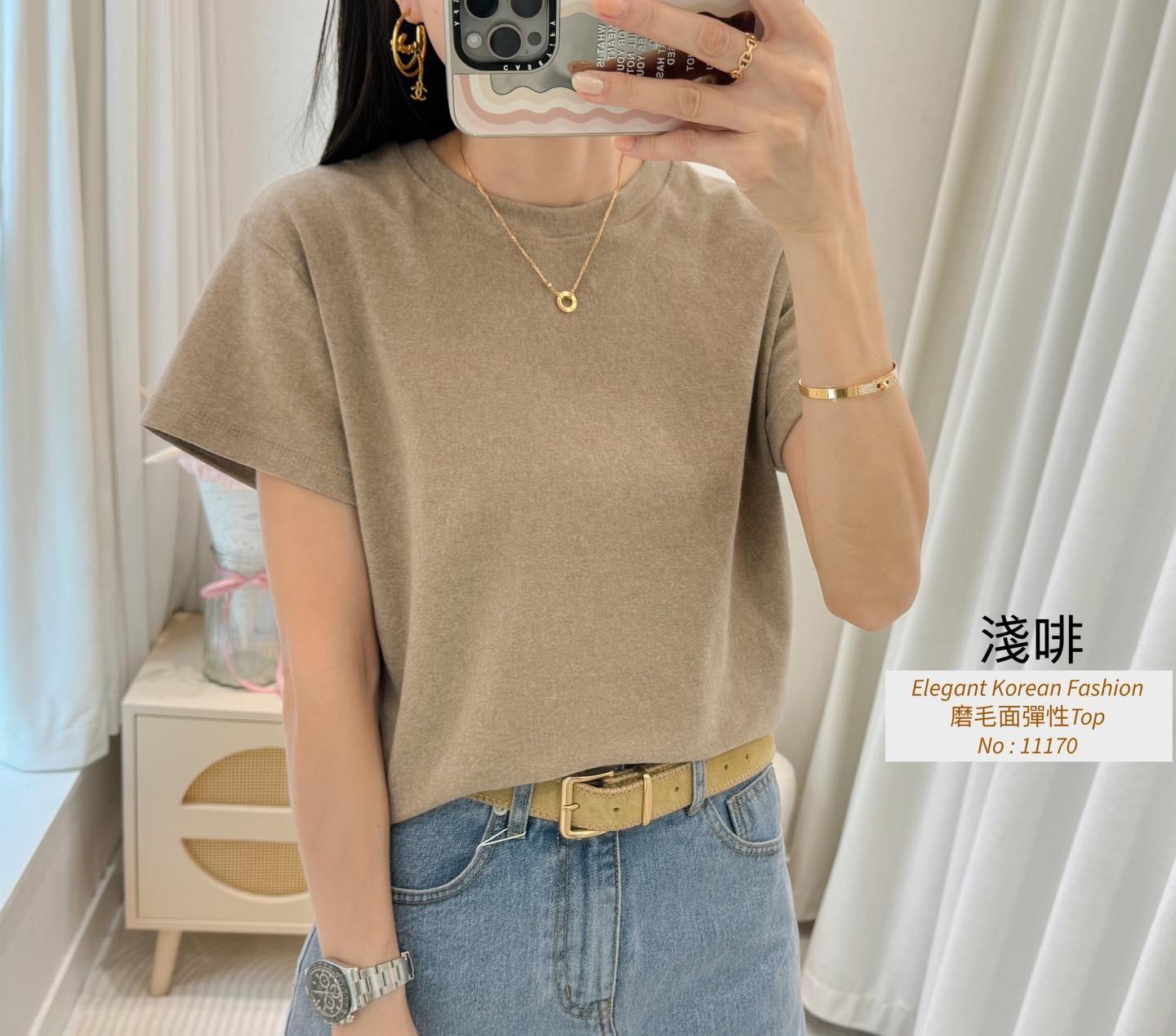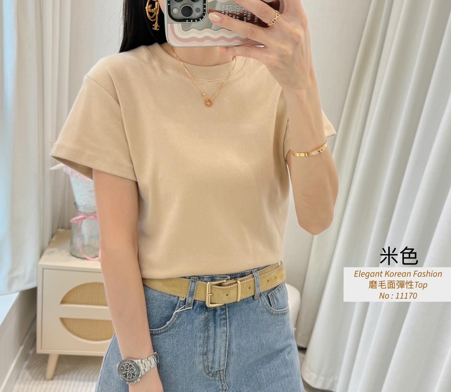 磨毛面彈性Top 內棉線料磨毛面 挺身彈性料 仲有好多色揀又抵著又好襯 轉季襯褸著都靚呀 白色燕麥色米白淺啡 深啡灰色黑色7 Colour No: 11170 Size : Chest 36-52 Length 21"