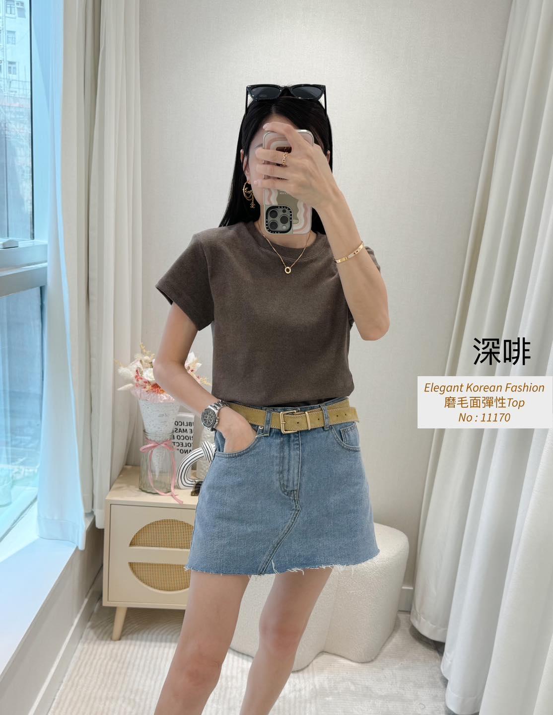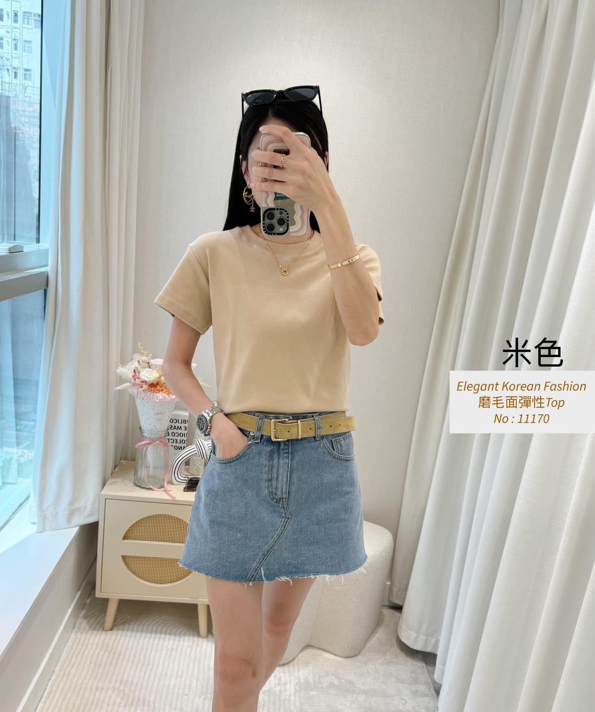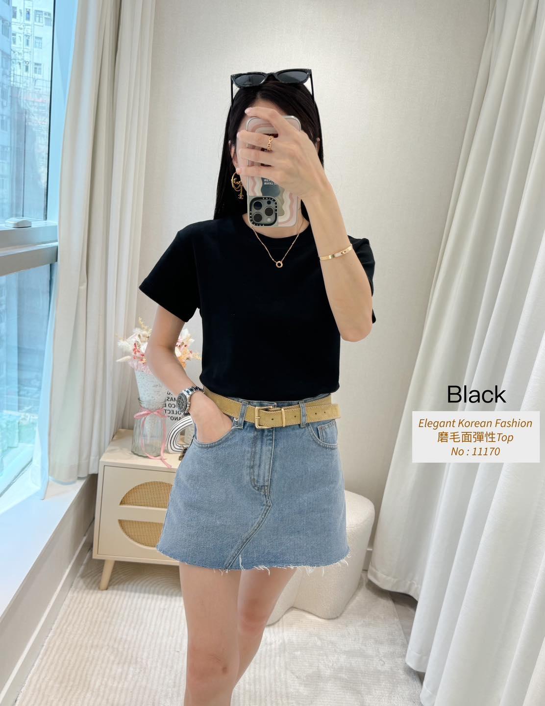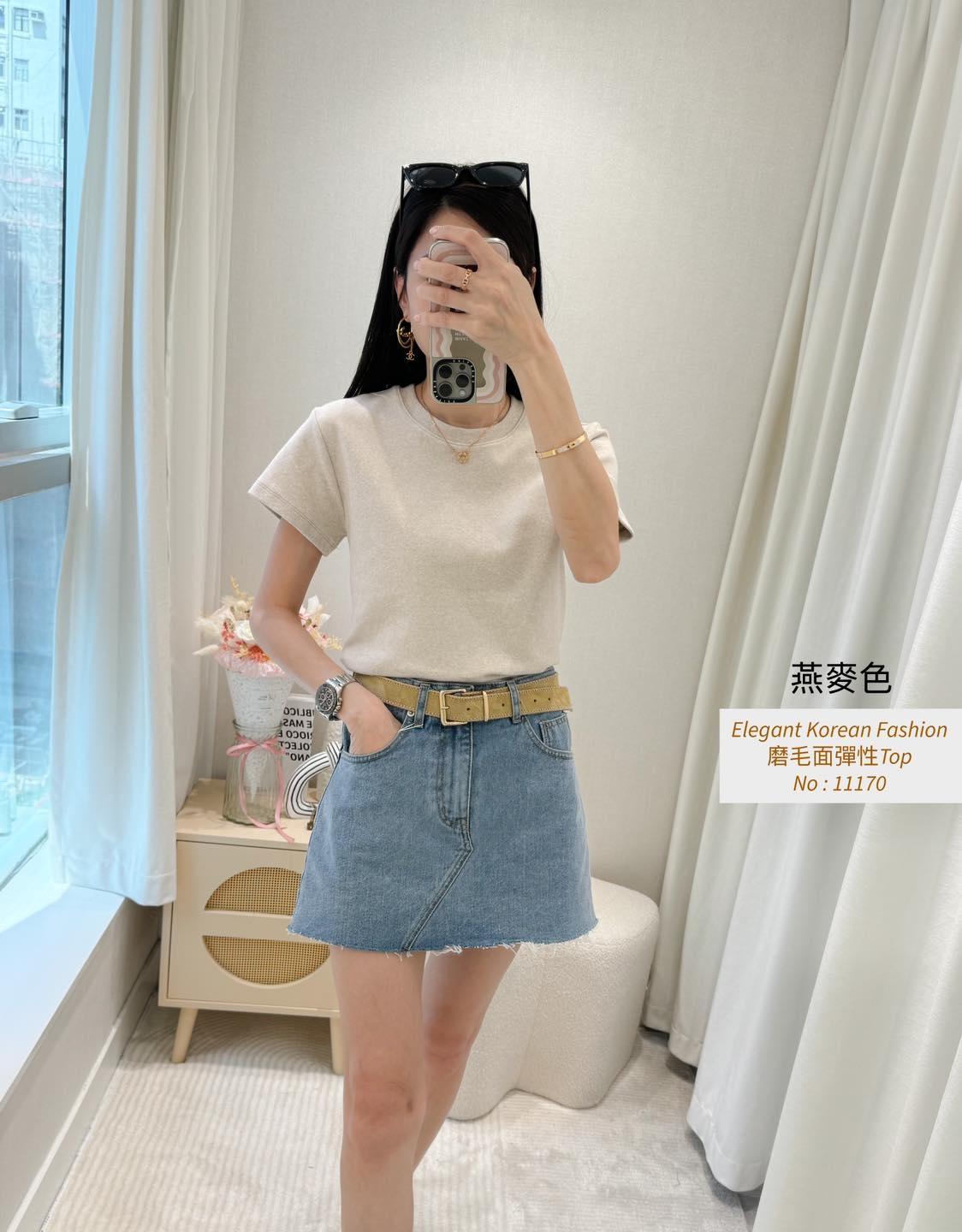 磨毛面彈性Top 內棉線料磨毛面 挺身彈性料 仲有好多色揀又抵著又好襯 轉季襯褸著都靚呀 白色燕麥色米白淺啡 深啡灰色黑色7 Colour No: 11170 Size : Chest 36-52 Length 21"