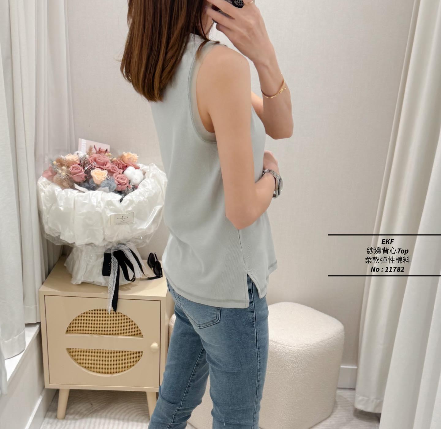 ・❥・紗邊背心Top・❥・ ・❥・柔軟彈性棉料 ・❥・單著或襯外套都好睇 ・❥・兩側開叉款唔貼肚仔 '*•.¸♡ 白色 / 淺灰 / 黑色/ 3 Colour ♡¸.•*' ✎ No: 11782 ✎ Size : Chest 36-52 Waist 32-52 Length 22"