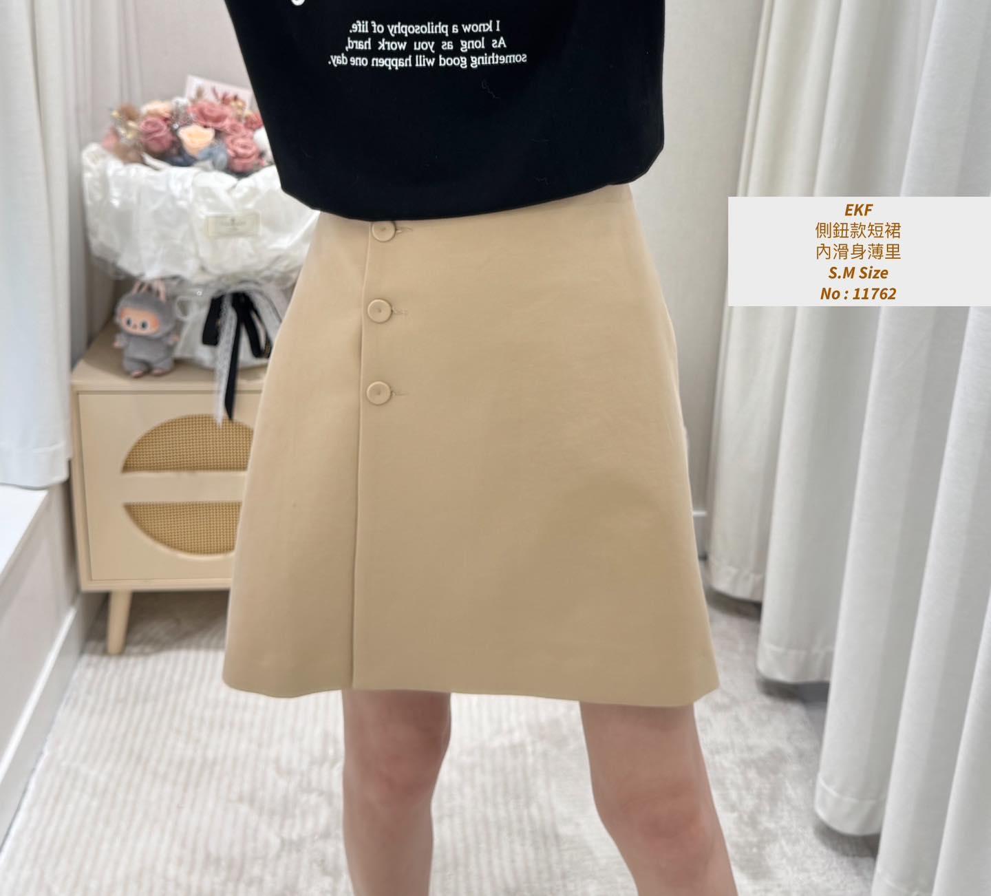 ・❥・側鈕款短裙・❥・ ・❥・內滑身薄里 ・❥・薄身西裝料 '*•.¸♡ 杏色 / 黑色 / 2 Colour ♡¸.•*' ✎ No: 11762 ✎ S.M Size : (S) Waist 26 Hip 36 Length 17" (M) Waist 28 Hip 38 Length 17"