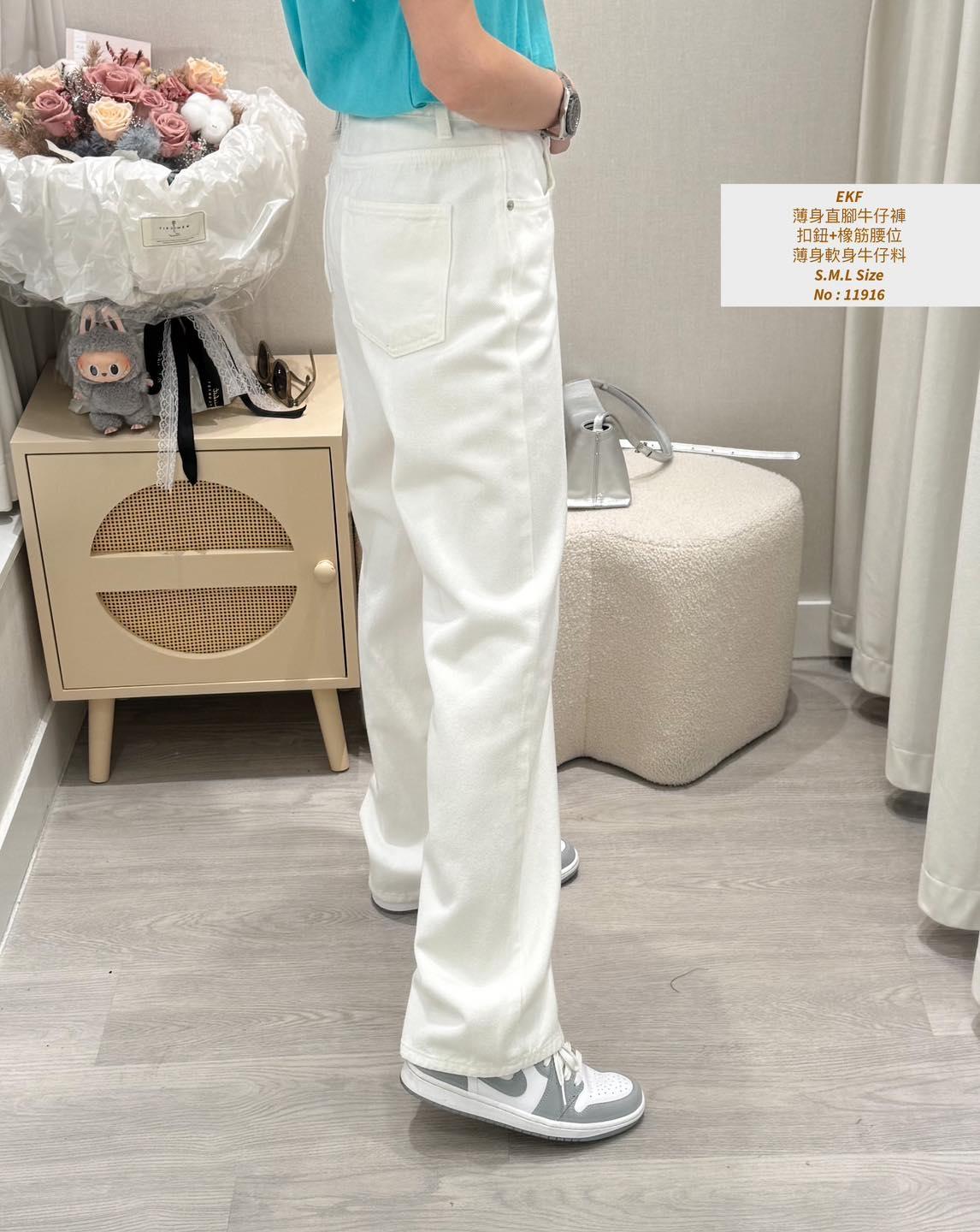 ・❥・薄身直腳牛仔褲・❥・ ・❥・門市熱賣款自留白色 ・❥・扣鈕+橡筋腰位 ・❥・薄身軟身牛仔料 ・❥・又好著又好襯 '*•.¸♡ 白色 / 黑色 / 2 Colour ♡¸.•*' ✎ No: 11916 ✎ S.M.L Size : (S) Waist 24-28 Hip 34 Length 40" (M) Waist 25-30 Hip 36 Length 40" (L) Waist 26-32 Hip 38 Length 40"