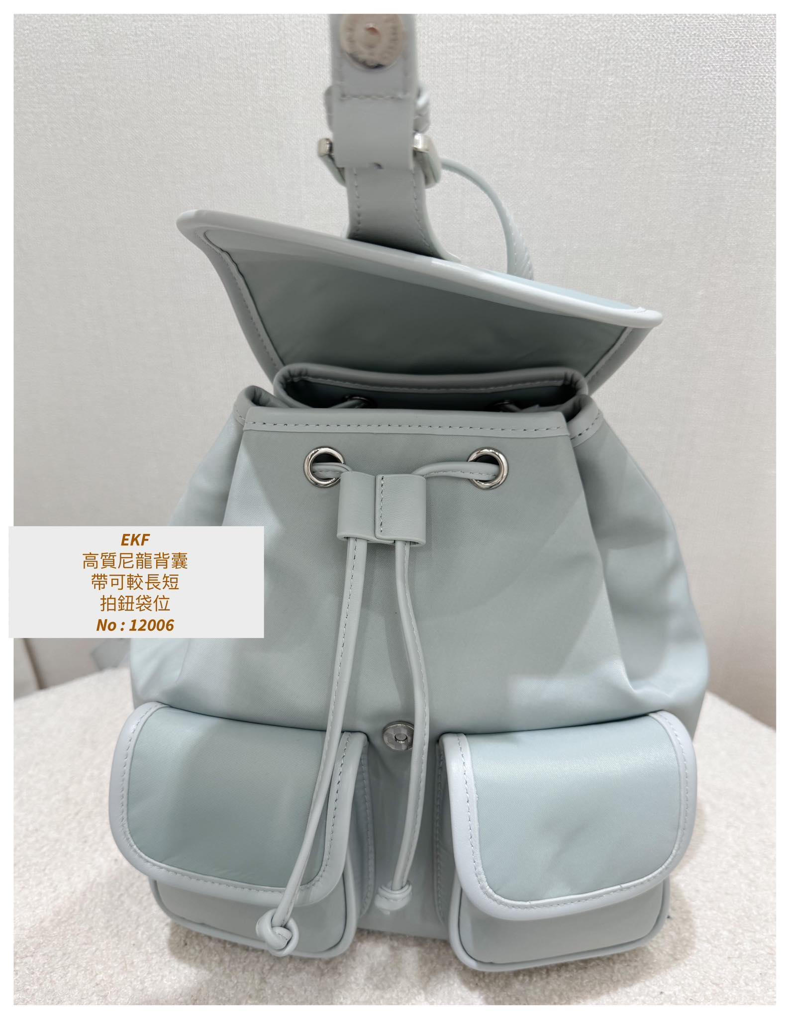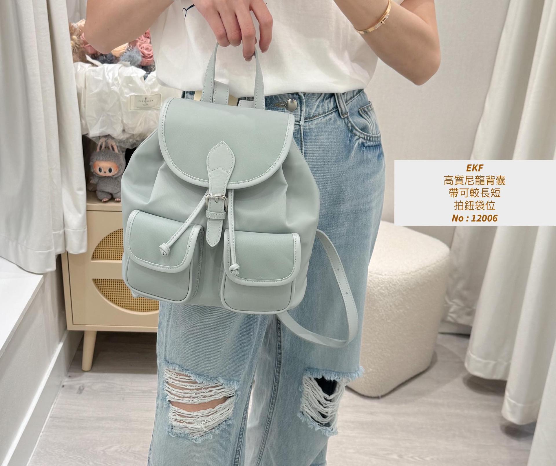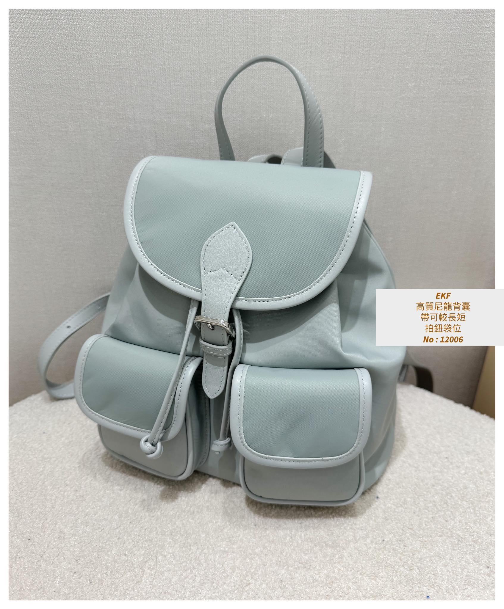 ・❥・高質尼龍背囊・❥・ ・❥・帶可較長短 ・❥・拍鈕袋位 ・❥・內拉鍊格 ✎ 灰藍/ 黑色 / 淡粉 / 3 Colour ¸.• ✎ No: 12006 ✎ Size : 闊9" 袋高 9" 深 5"