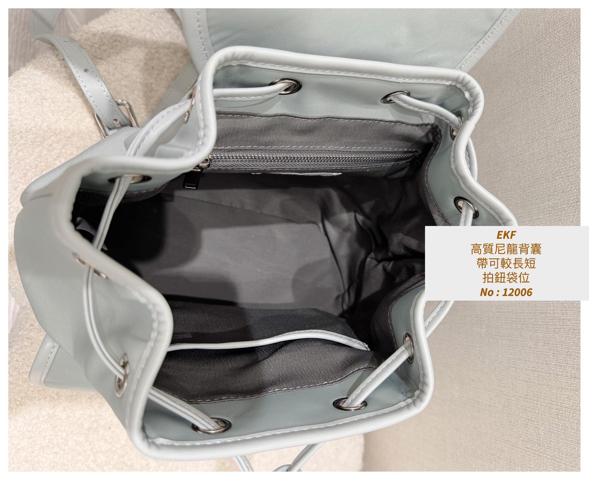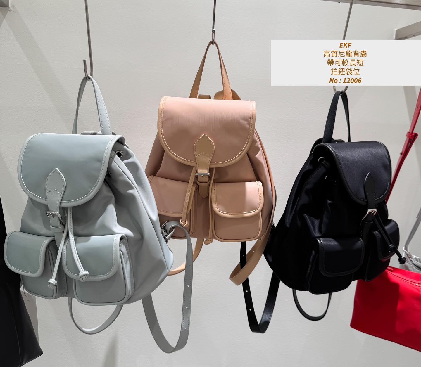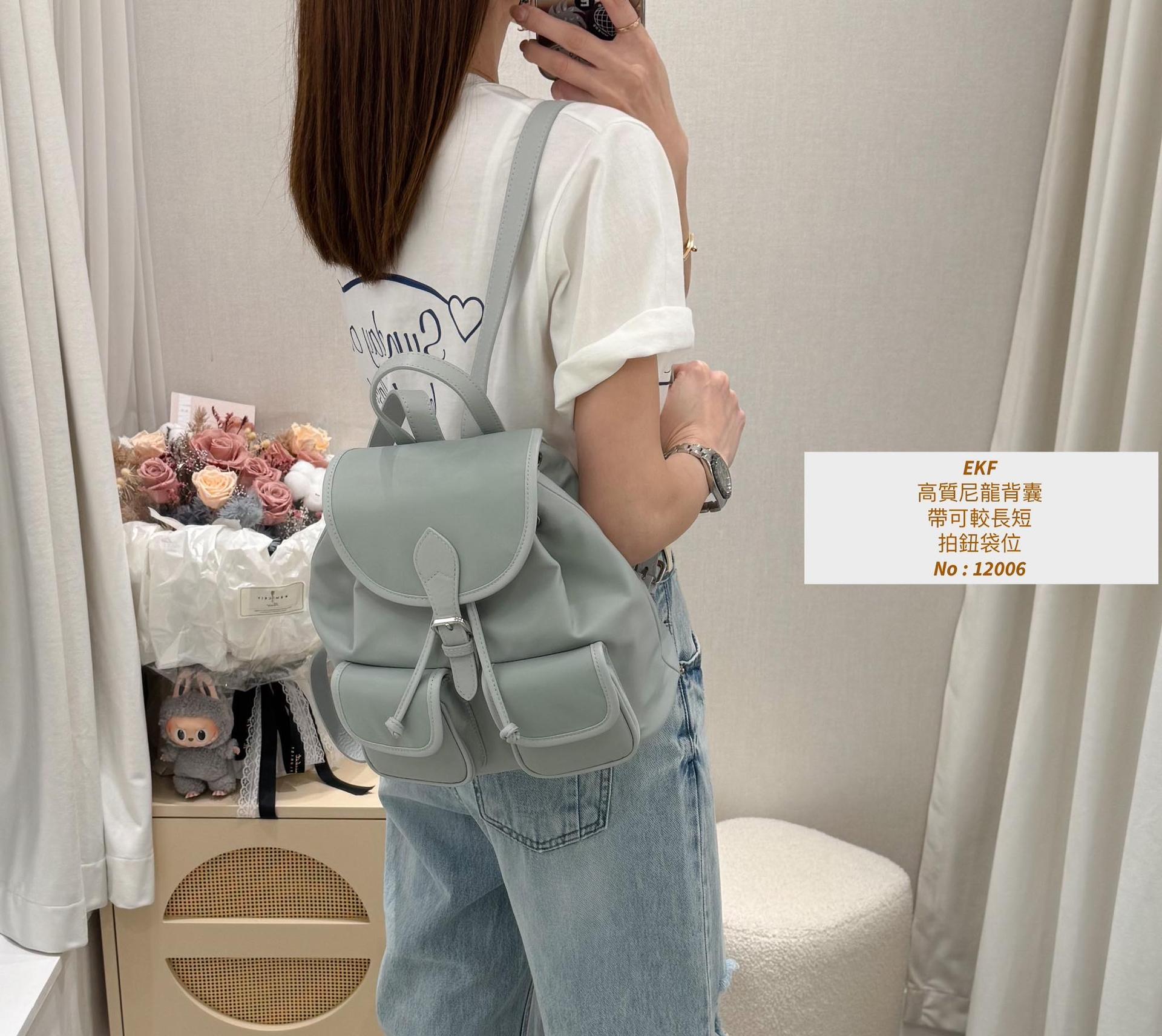 ・❥・高質尼龍背囊・❥・ ・❥・帶可較長短 ・❥・拍鈕袋位 ・❥・內拉鍊格 ✎ 灰藍/ 黑色 / 淡粉 / 3 Colour ¸.• ✎ No: 12006 ✎ Size : 闊9" 袋高 9" 深 5"