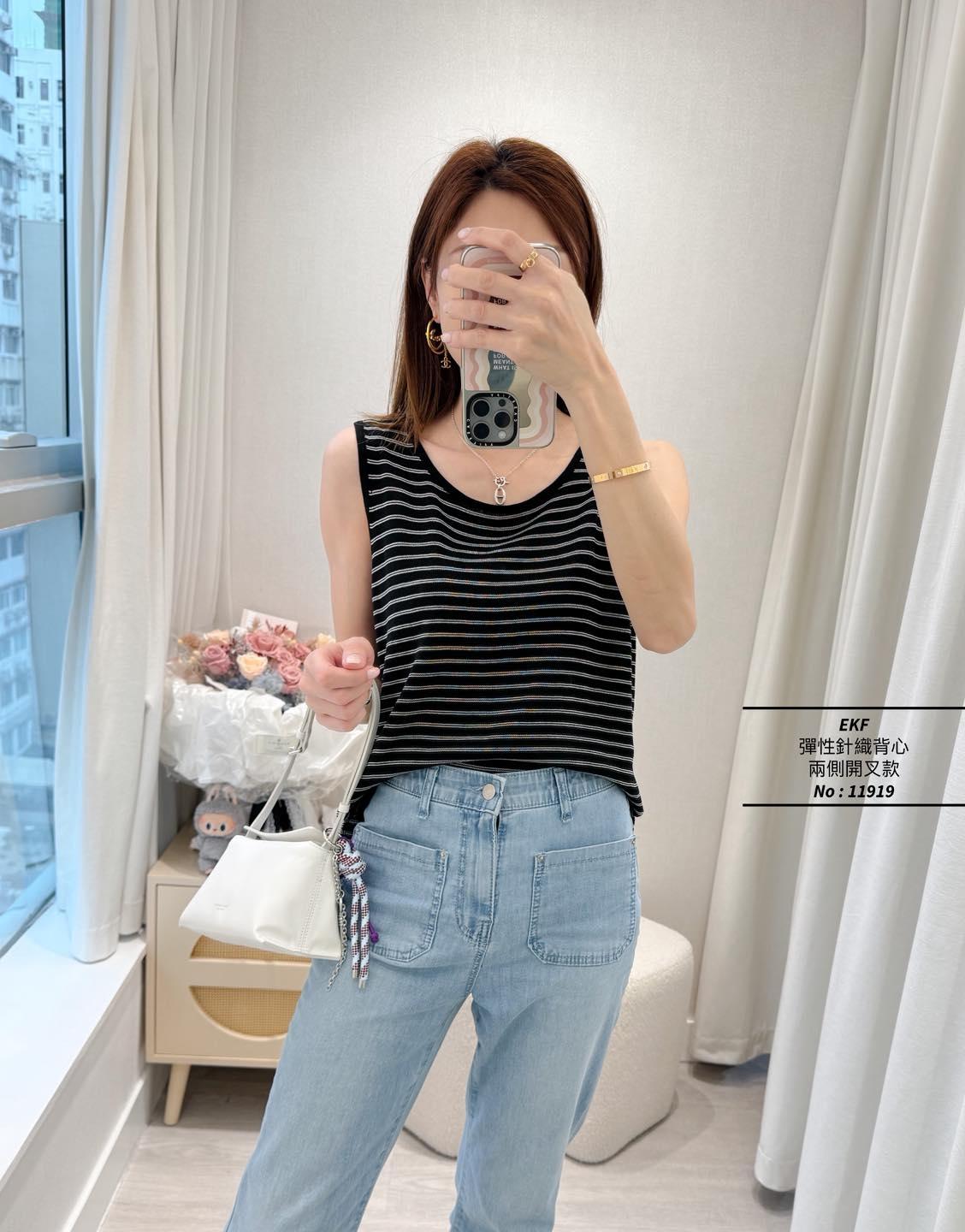 ・❥・彈性針織背心 ・❥・ ・❥・單著或襯外套都好睇,又涼爽 ・❥・兩側開叉位唔貼肚仔 ・❥・彈性薄針織料 '*•.¸♡ 米白 / 白底黑間 / 黑底白間/ 全黑 / 4 Colour ♡¸.•*' ✎ No: 11919 ✎ Size : Chest 34-46 Length 20"