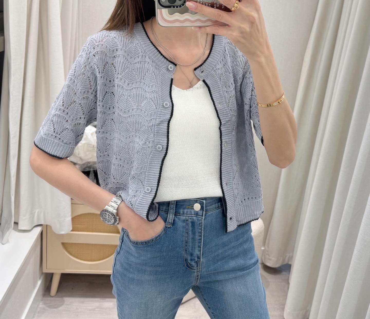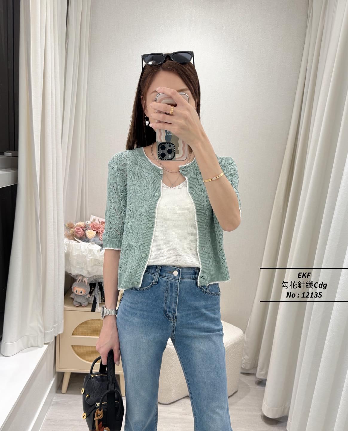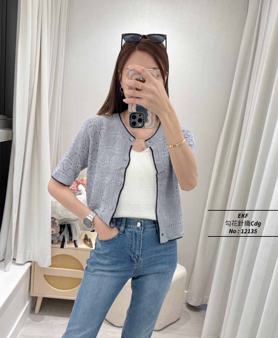 ・❥・勾花針織Cdg・❥・ ・❥・拼色邊位扣鈕當Top著都靚呀 ・❥・彈性針織料 '*•.¸♡ 白色 / 紫色 / 綠色 / 深藍 / 4 Colour ♡¸.•*' ✎ No: 12135 ✎ Size : Chest 36-46" Length 19.5"