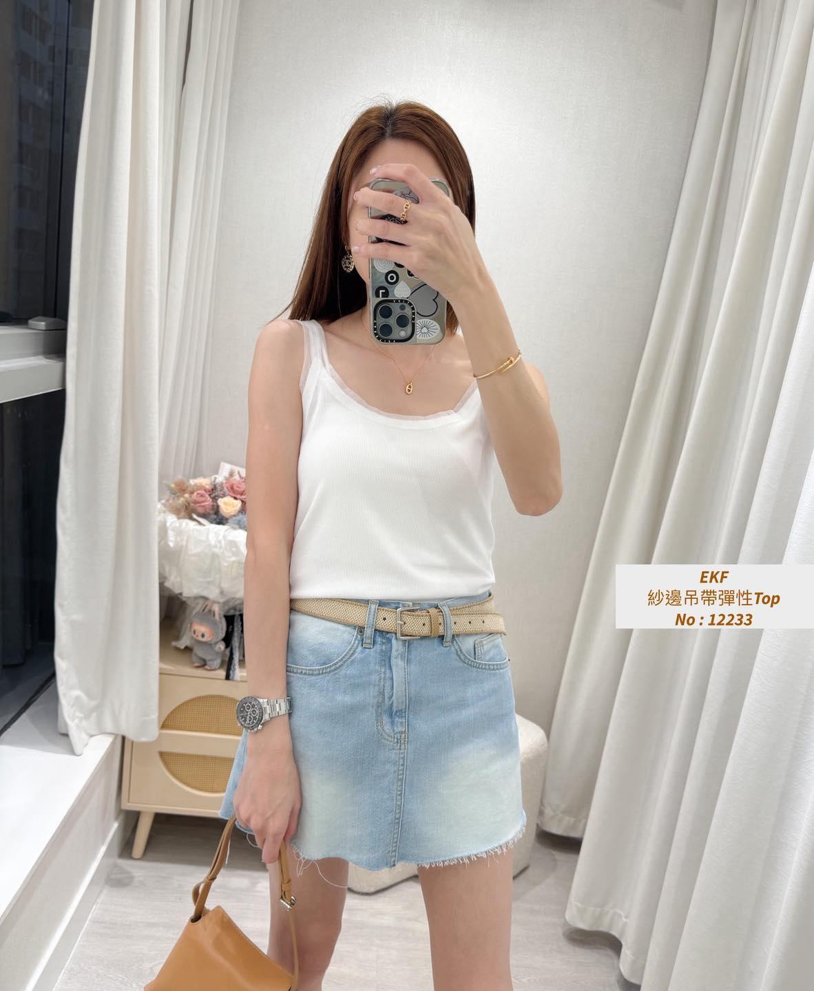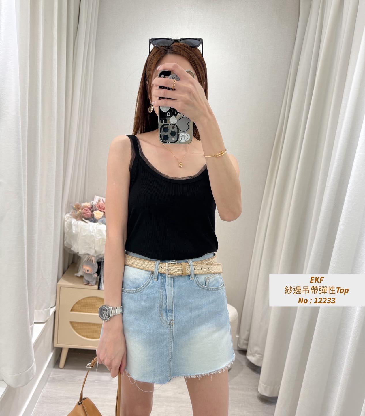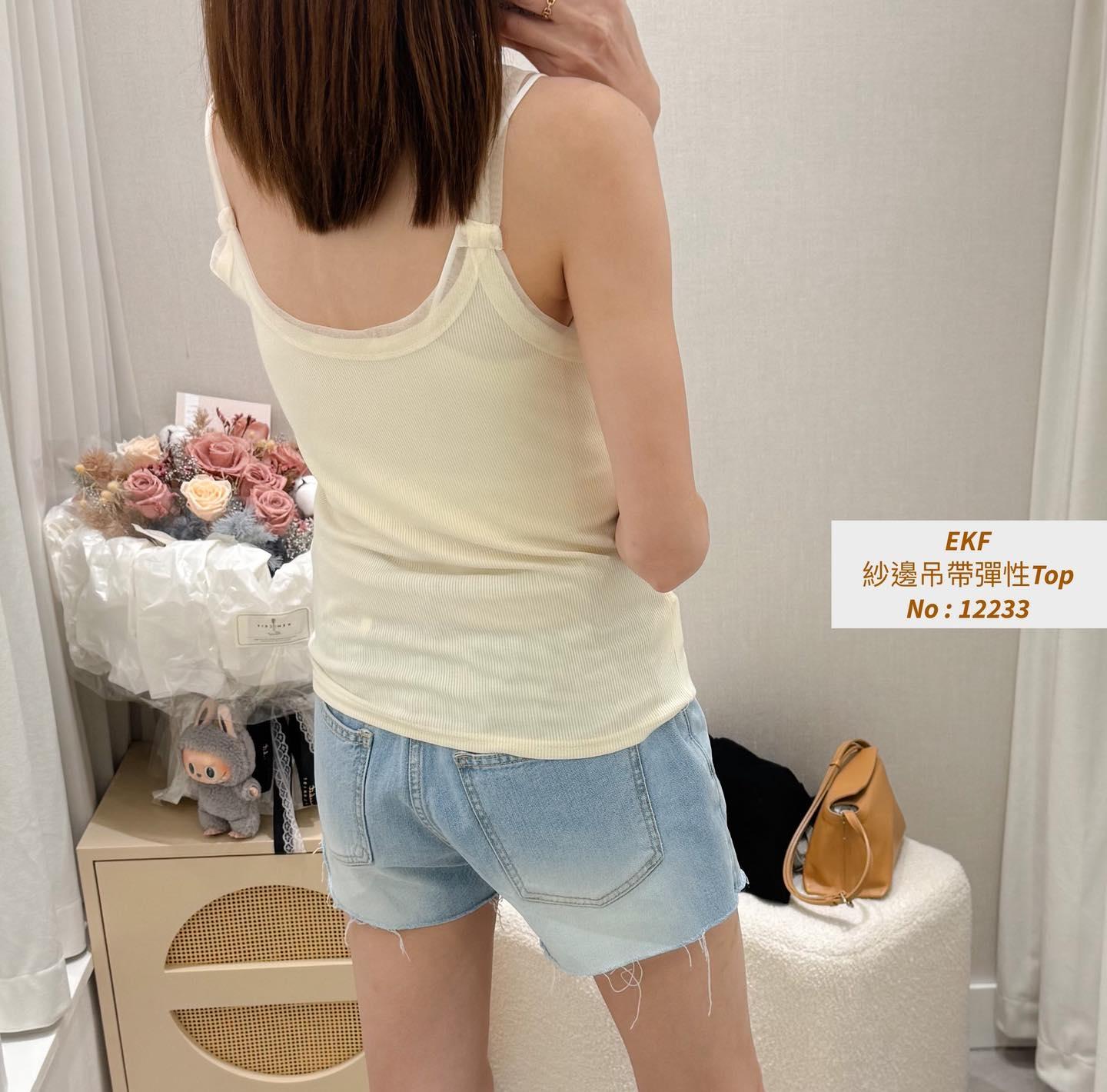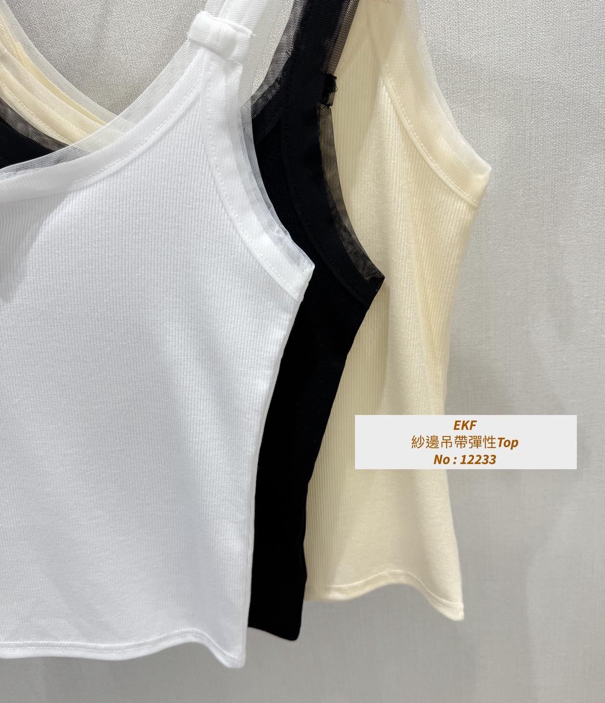 ・❥・紗邊吊帶彈性Top・❥・ ・❥・單著或襯外套都靚呀 ・❥・彈性棉料 '*•.¸♡ 白色 / 米色 / 黑色 / 3 Colour ♡¸.•*' ✎ No: 12233 ✎ Size : Chest 32-40" Length 21"