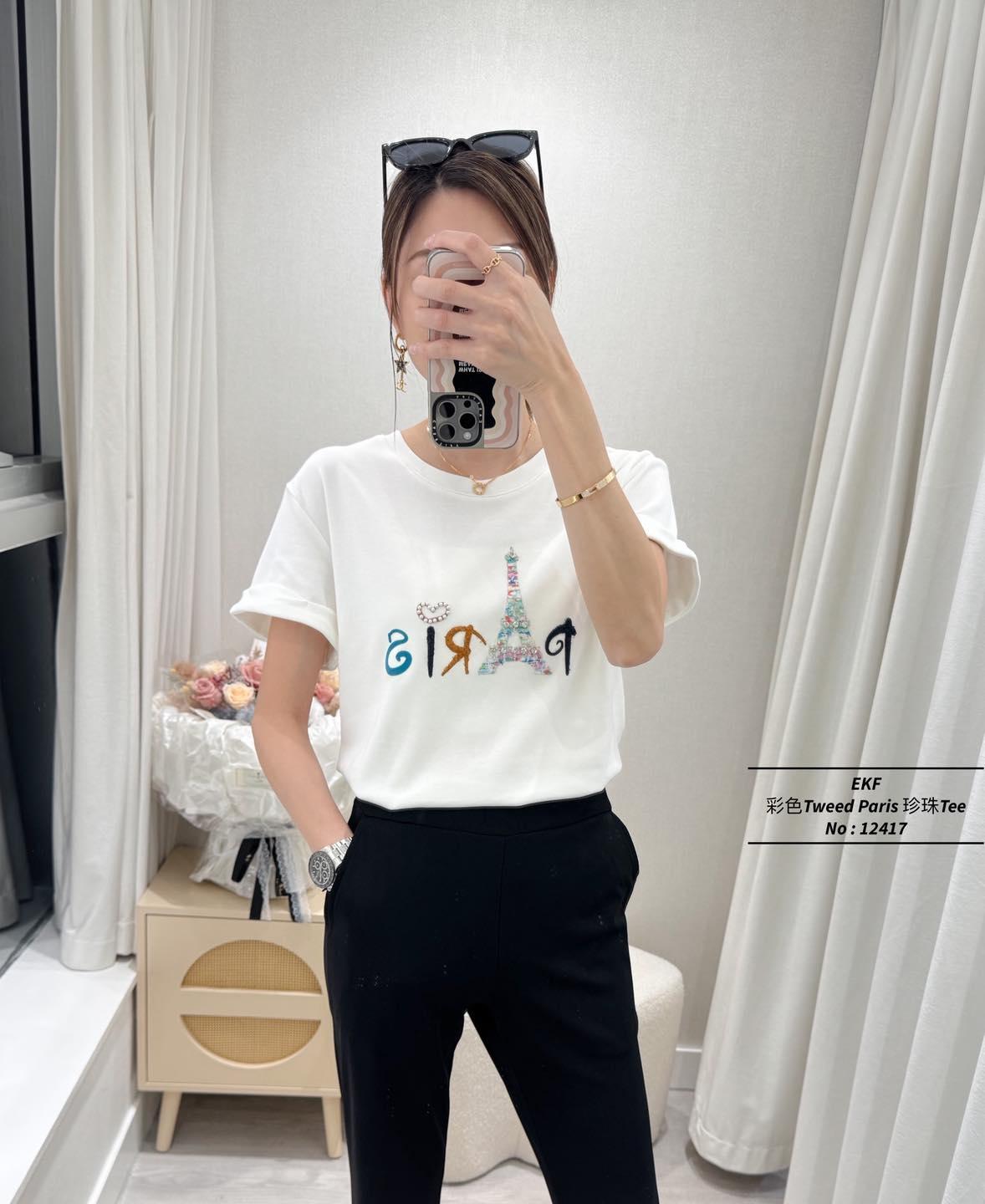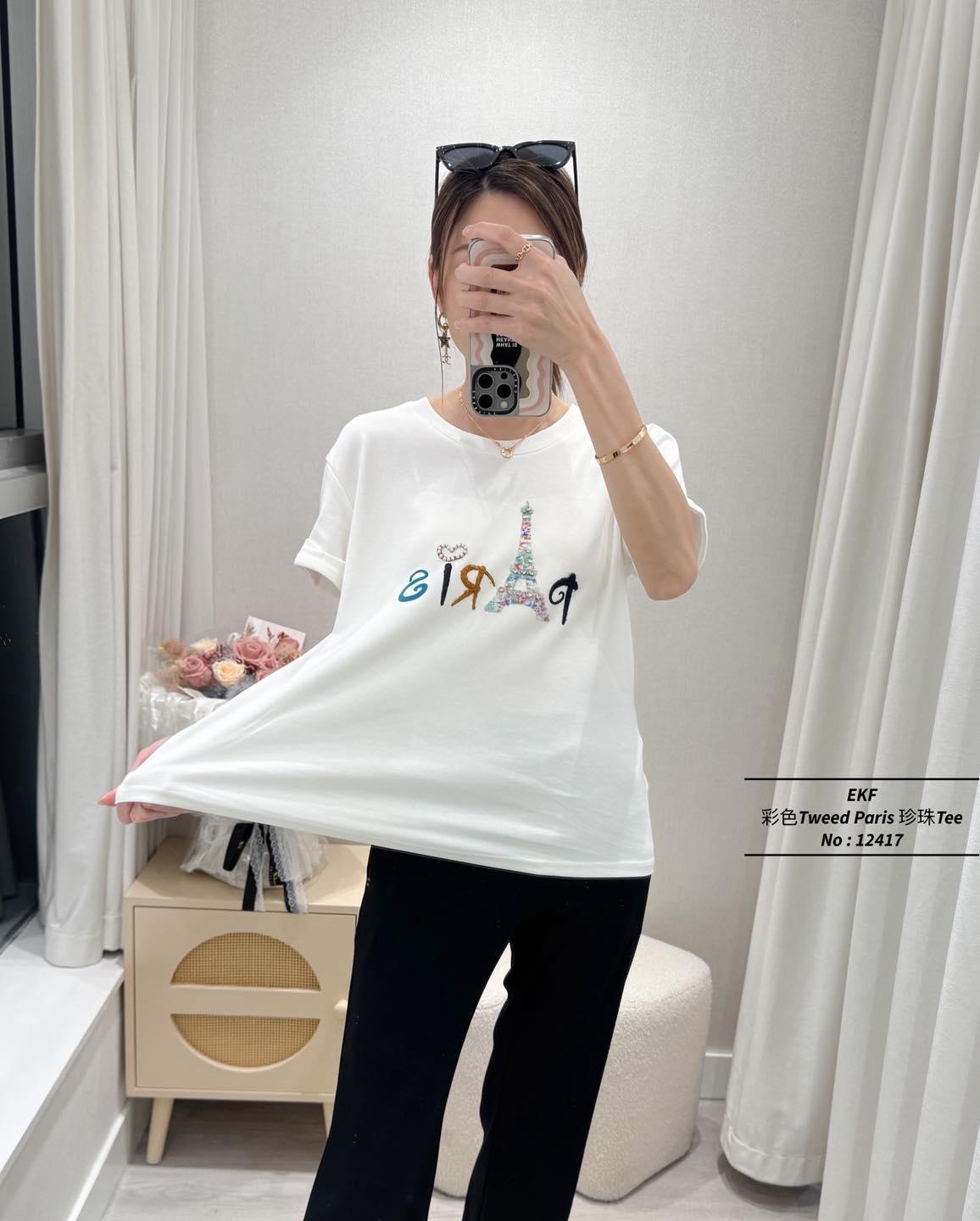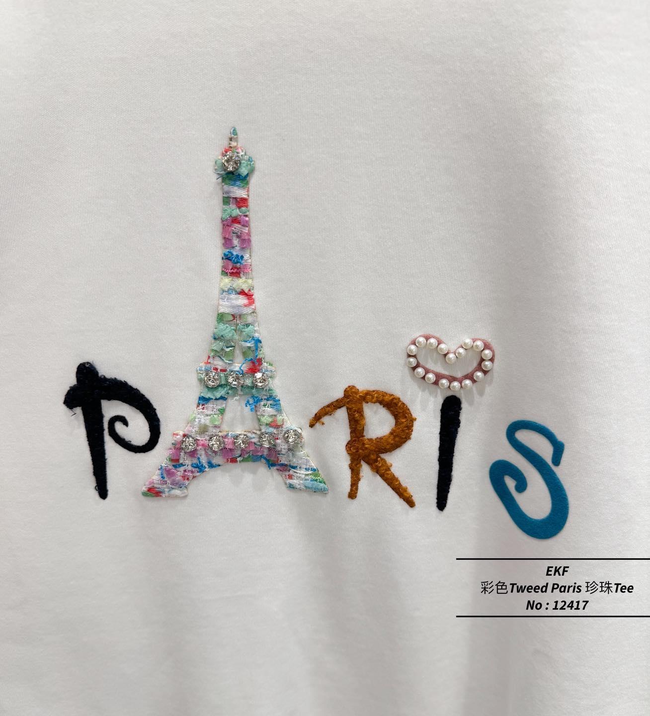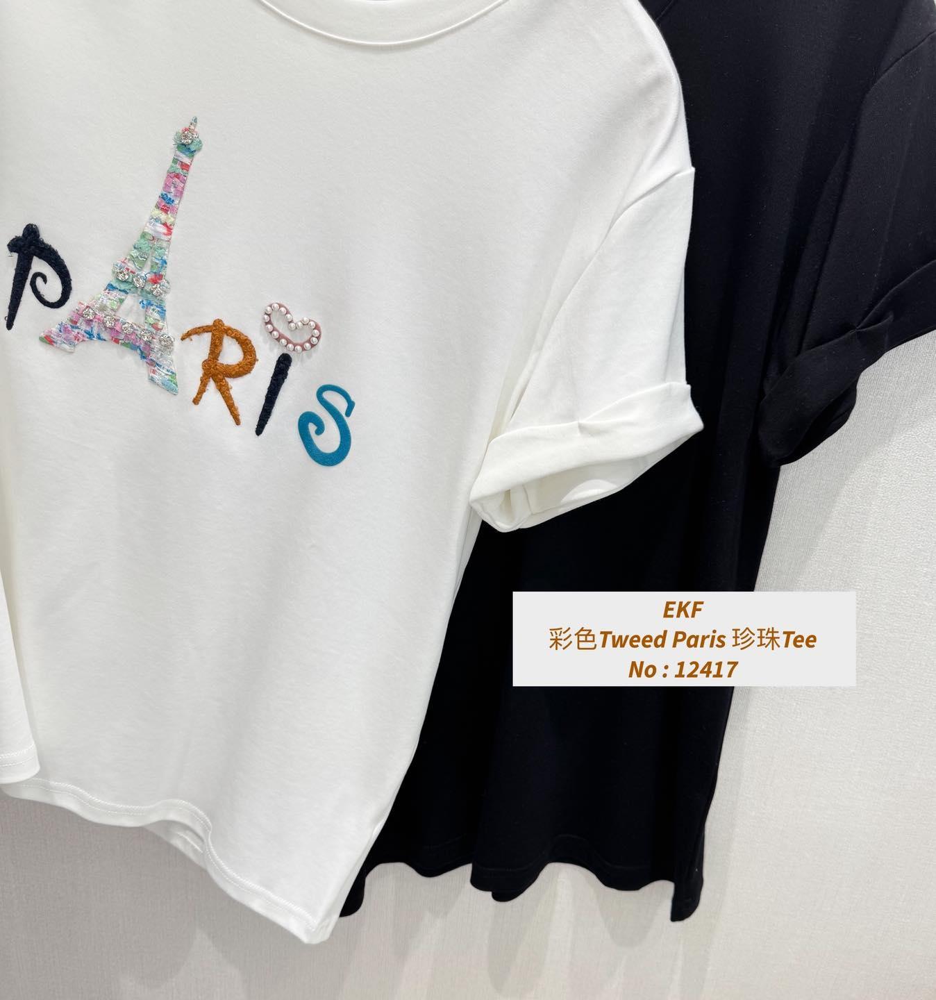 ・❥・彩色Tweed Paris 珍珠Tee・❥・ ・❥・滑身彈性棉料 ・❥・固定摺袖位 '*•.¸♡ 白色 / 黑色 / 2 Colour ♡¸.•*' ✎ No: 12417 ✎ Size : Chest 42-52" Length 23"