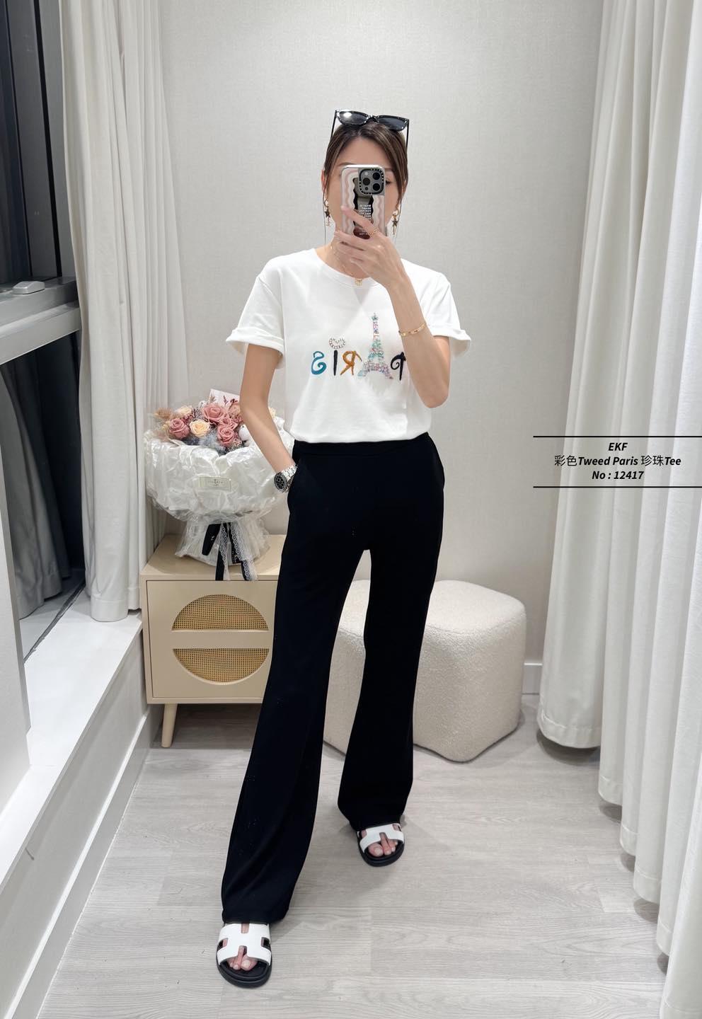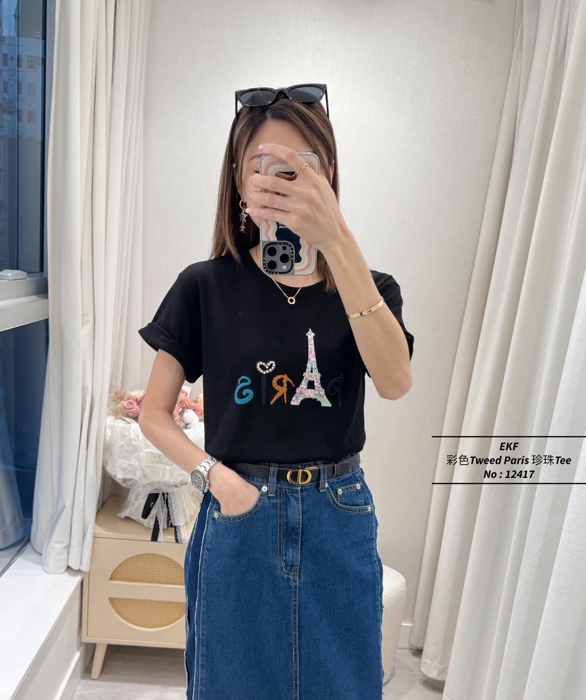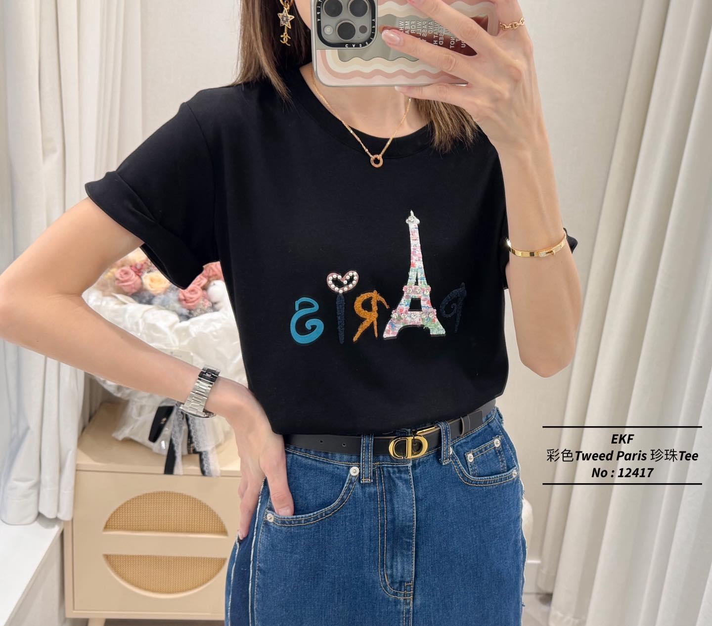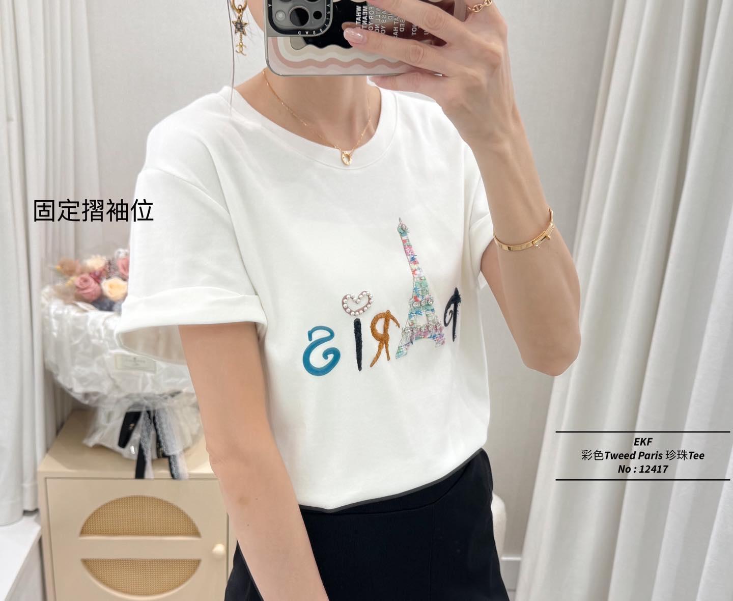 ・❥・彩色Tweed Paris 珍珠Tee・❥・ ・❥・滑身彈性棉料 ・❥・固定摺袖位 '*•.¸♡ 白色 / 黑色 / 2 Colour ♡¸.•*' ✎ No: 12417 ✎ Size : Chest 42-52" Length 23"