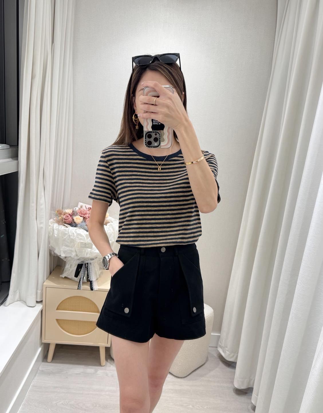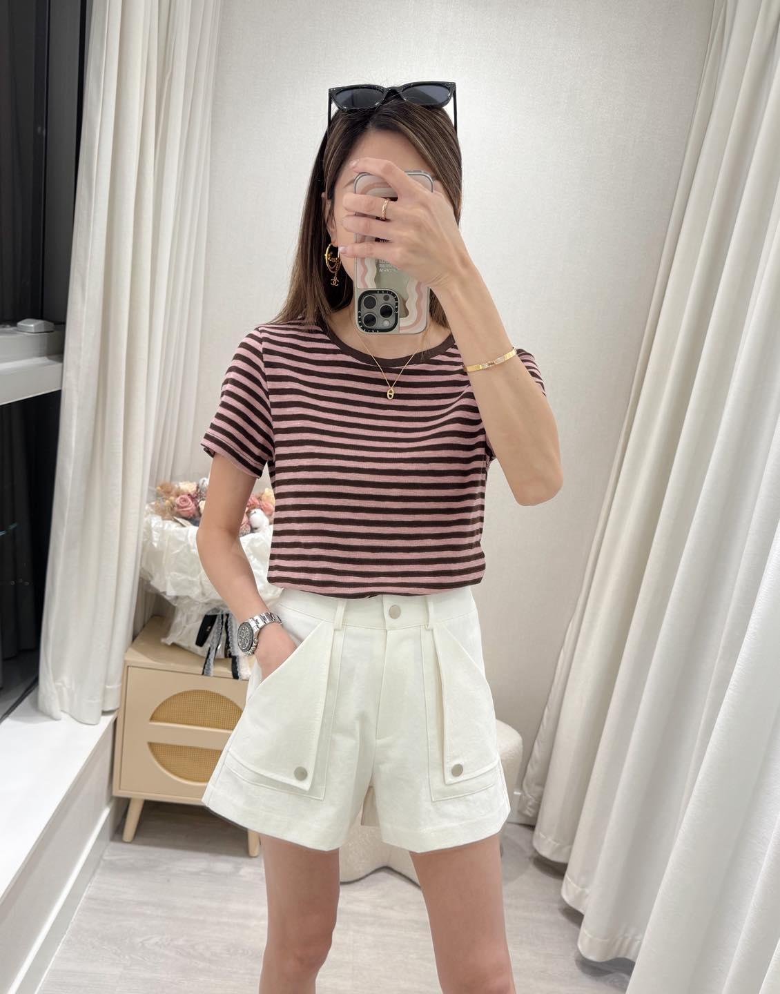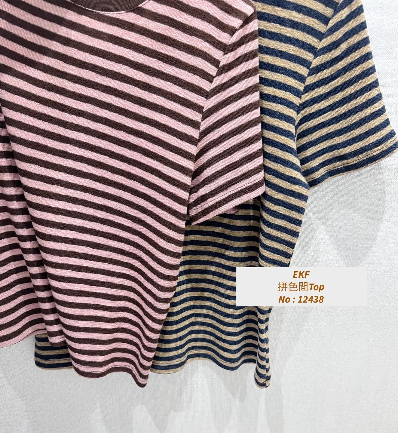 ・❥・拼色間彈性Top・❥・ ・❥・今季又興橫間款呀 ・❥・彈性棉料 '*•.¸♡ 粉啡 / 藍杏 / 2 Colour ♡¸.•*' ✎ No: 12438 ✎ Size : Chest 34-46" Length 20"