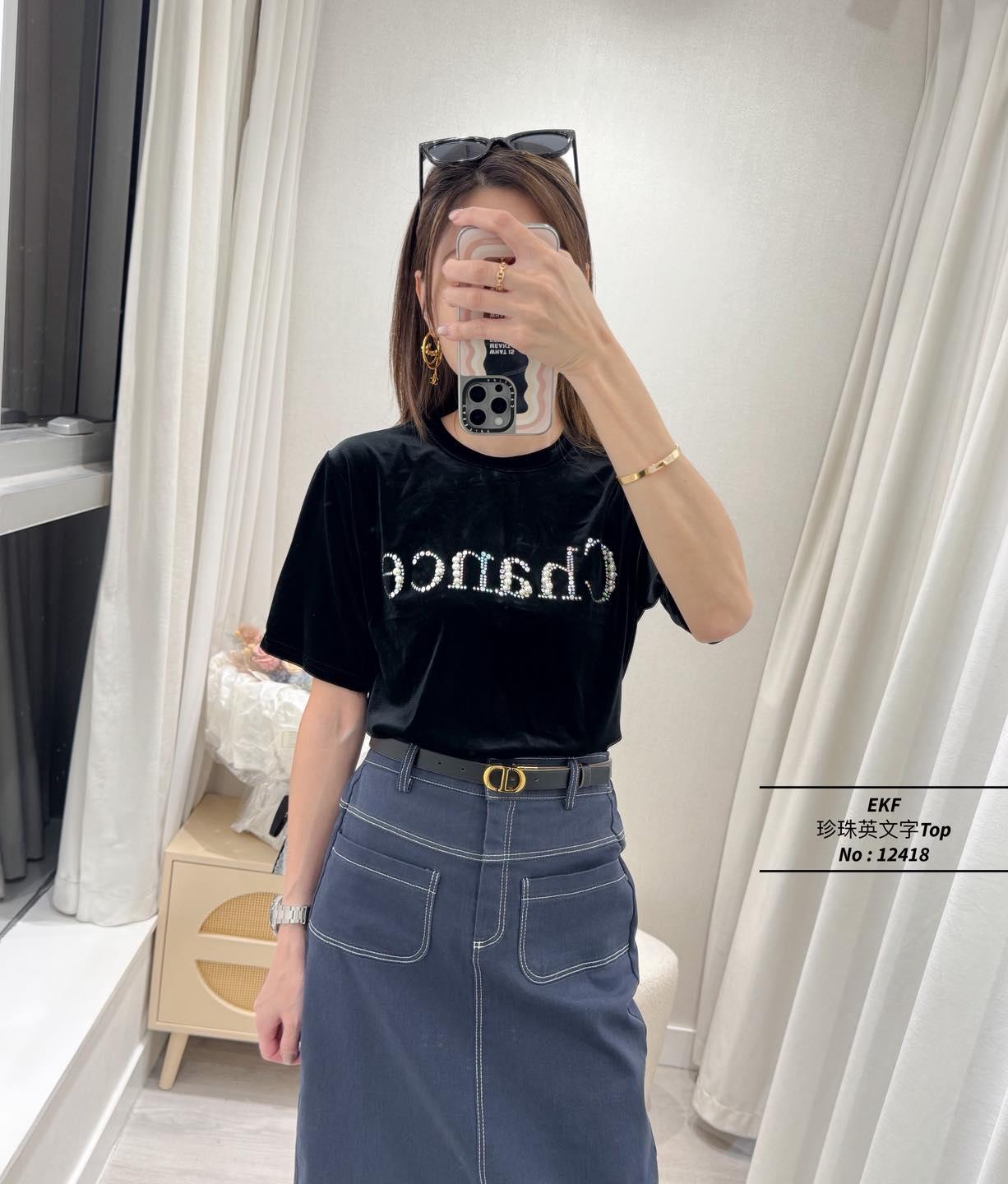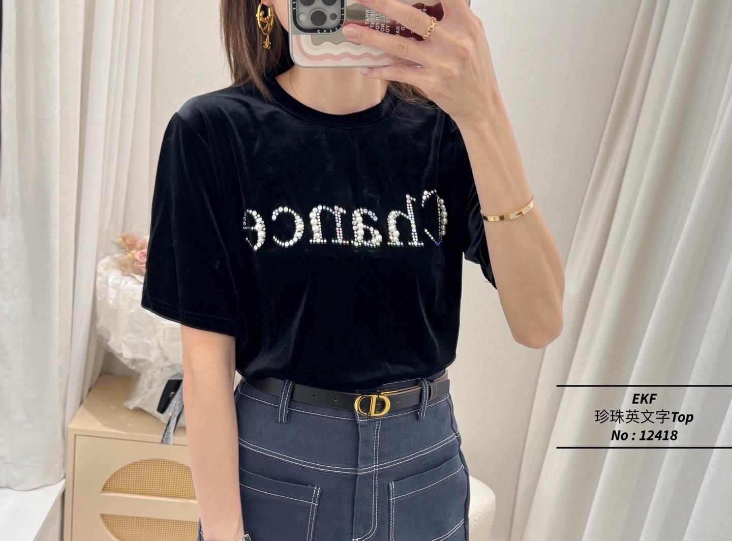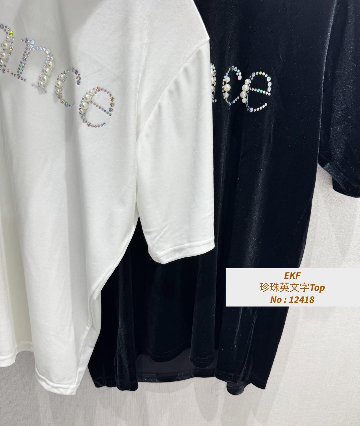 ・❥・閃石拼珍珠英文字Top・❥・ ・❥・好百搭嘅Top 款 ・❥・滑身彈性薄絲絨料 '*•.¸♡ 白色 / 黑色 / 2 Colour ♡¸.•*' ✎ No: 12418 ✎ Size : Chest 38-48" Length 22"