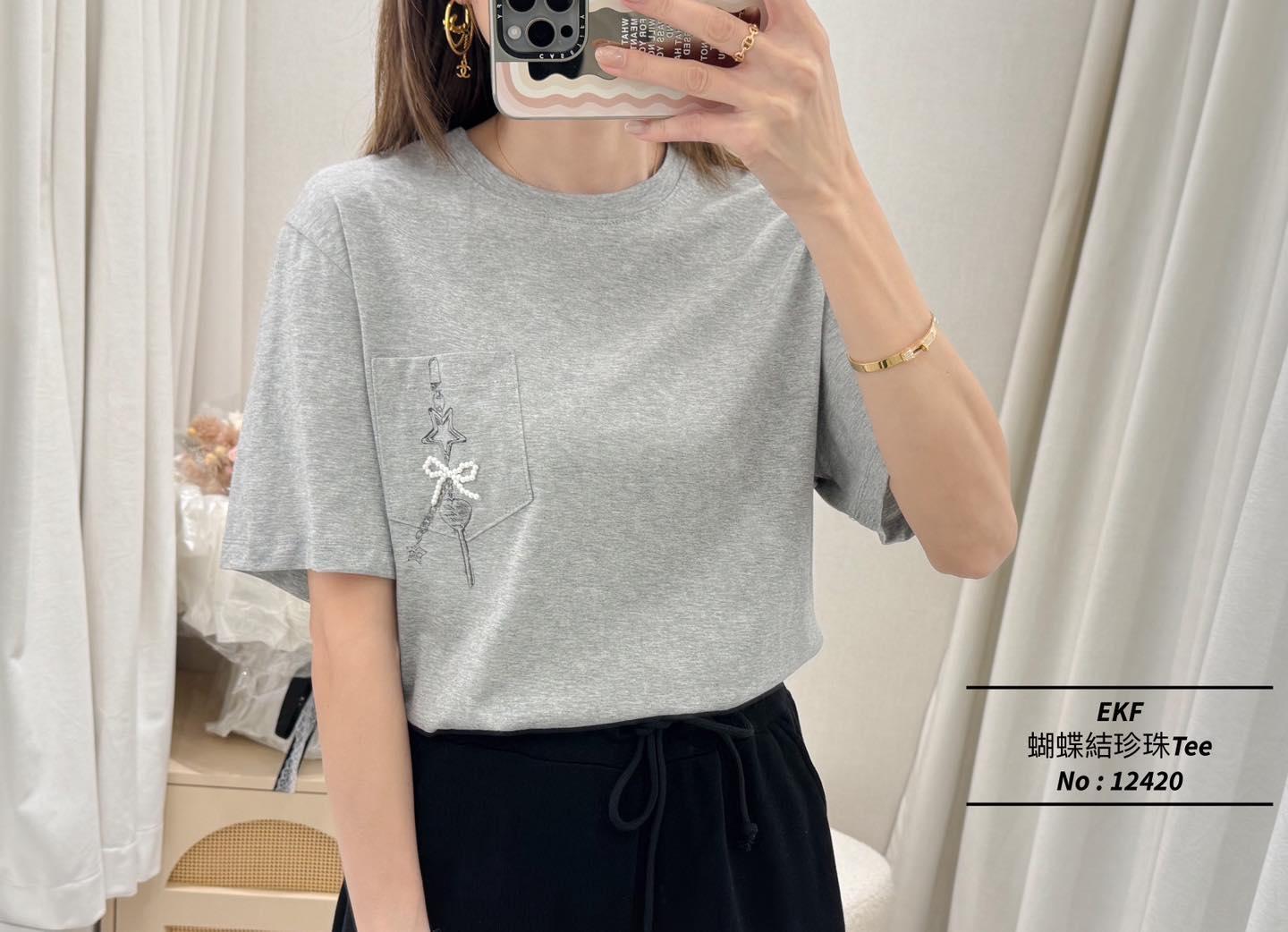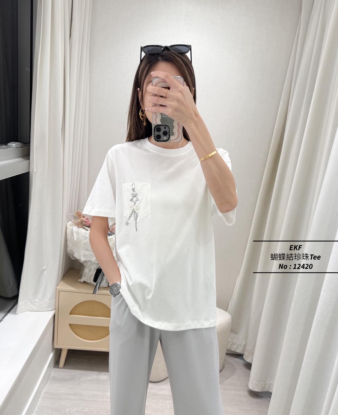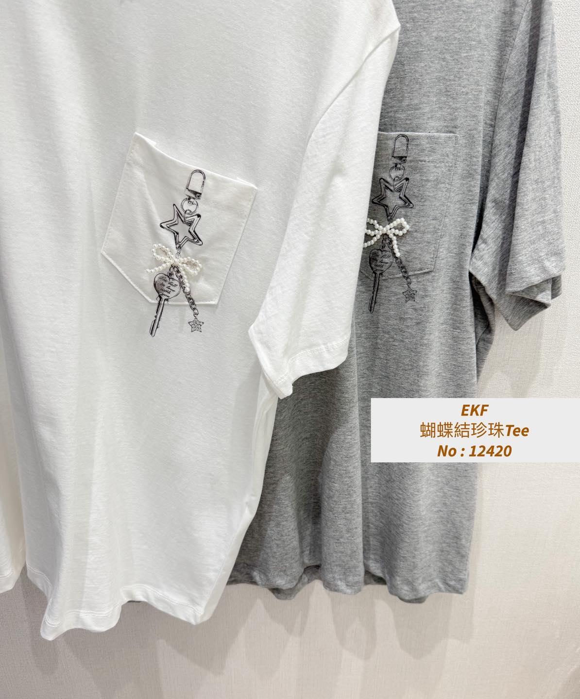 ・❥・蝴蝶結珍珠Tee・❥・ ・❥・星星鎖匙扣口袋Pattern ・❥・彈性棉料 '*•.¸♡ 白色 / 灰色 / 2 Colour ♡¸.•*' ✎ No: 12420 ✎ Size : Chest 42-50" Length 22.5"