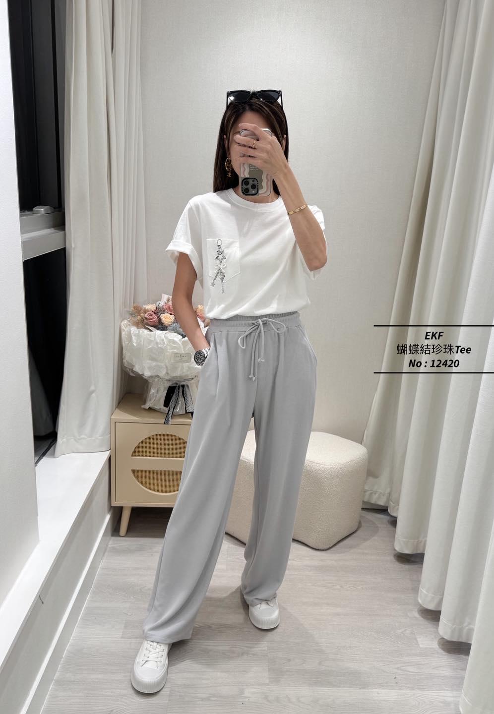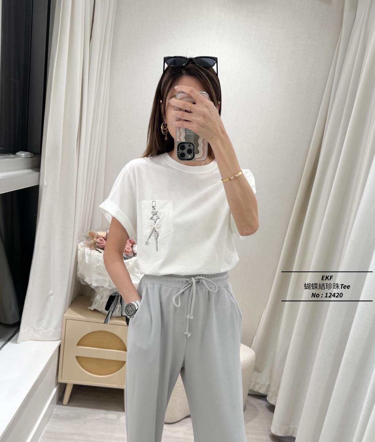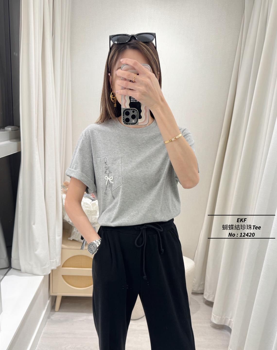 ・❥・蝴蝶結珍珠Tee・❥・ ・❥・星星鎖匙扣口袋Pattern ・❥・彈性棉料 '*•.¸♡ 白色 / 灰色 / 2 Colour ♡¸.•*' ✎ No: 12420 ✎ Size : Chest 42-50" Length 22.5"