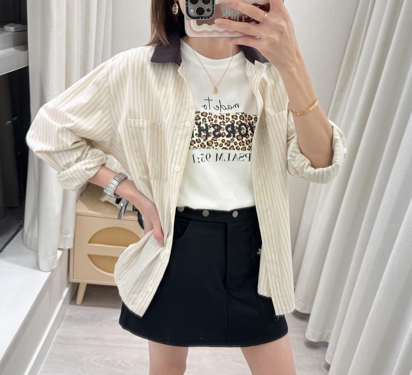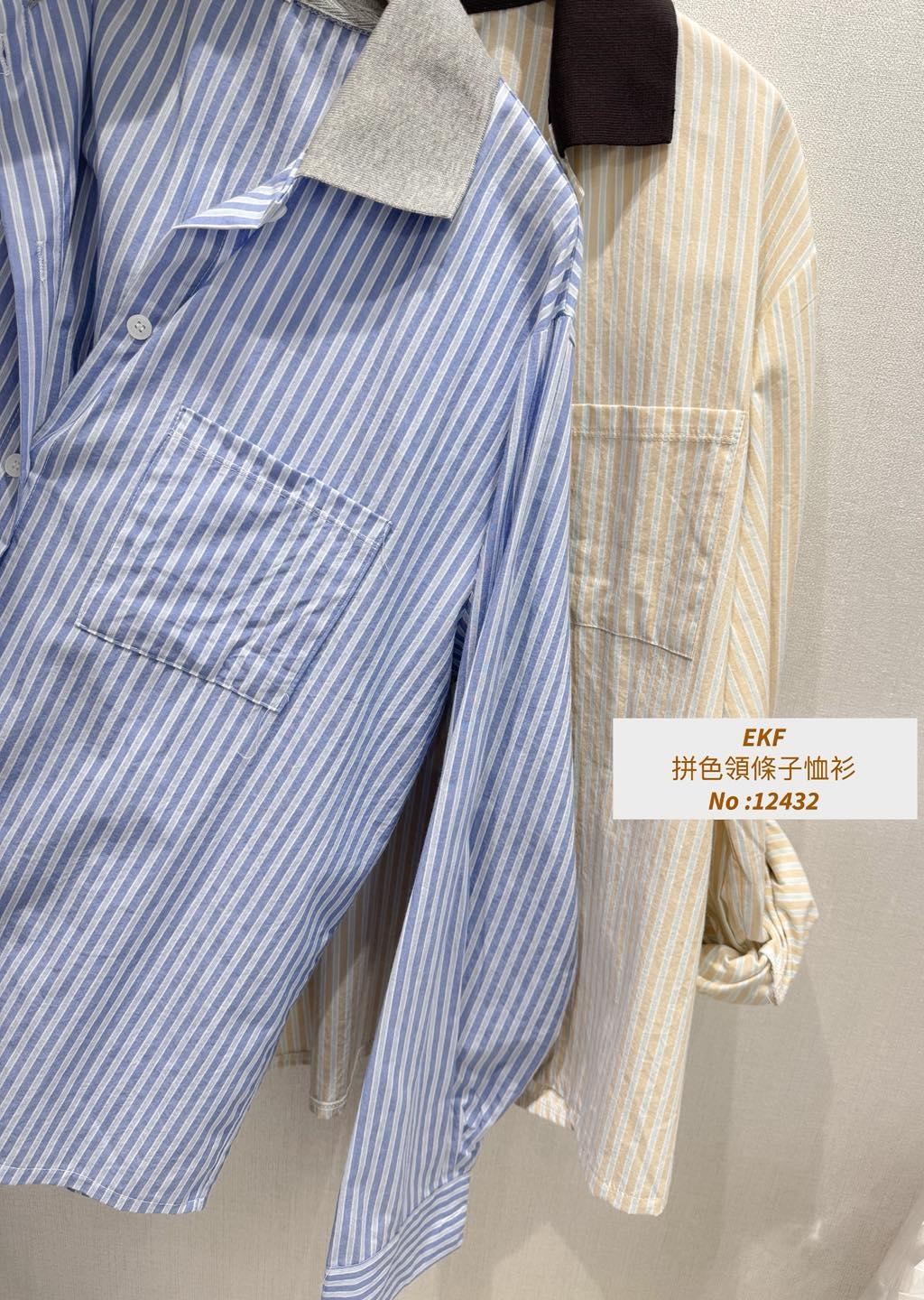 ・❥・拼色領條子恤衫・❥・ ・❥・直紋棉料領位好特別 ・❥・恤衫料 '*•.¸♡ 米色 / 藍色 / 2 Colour ♡¸.•*' ✎ No: 12432 ✎ Size : Chest 44" Length 24.5"