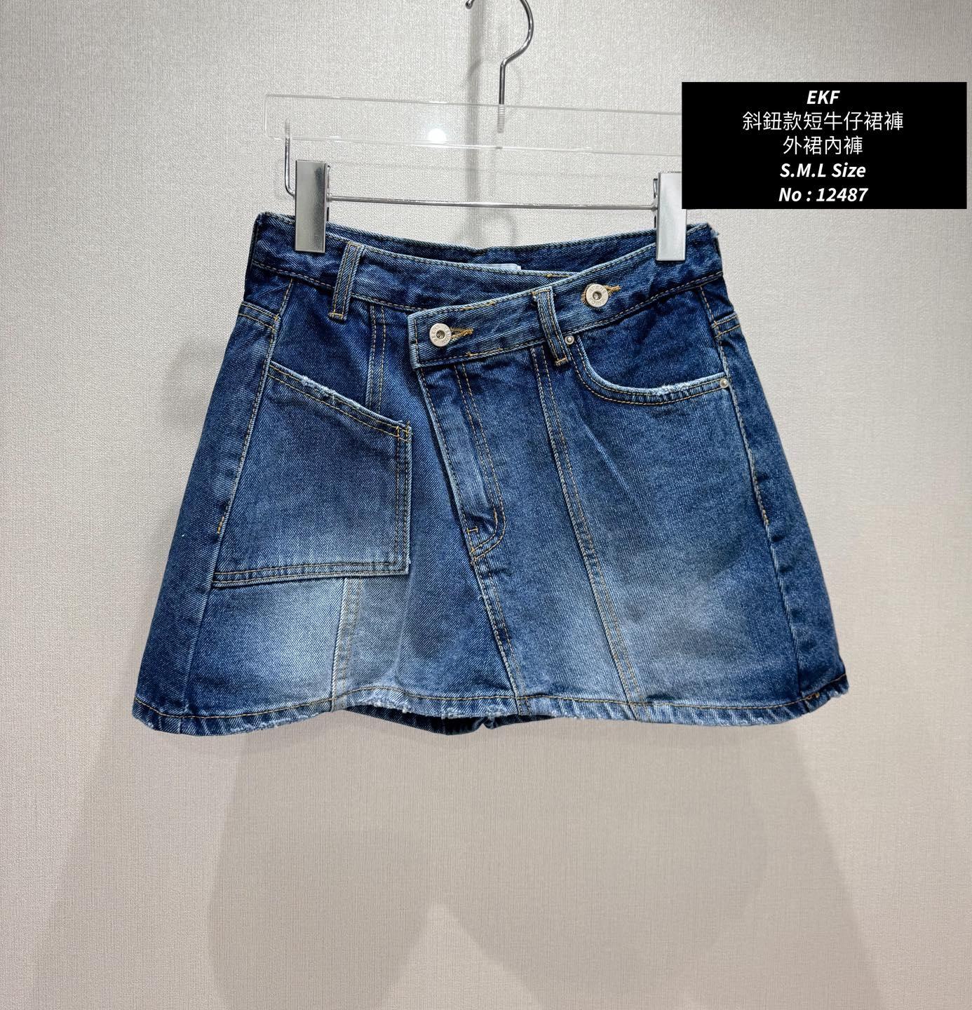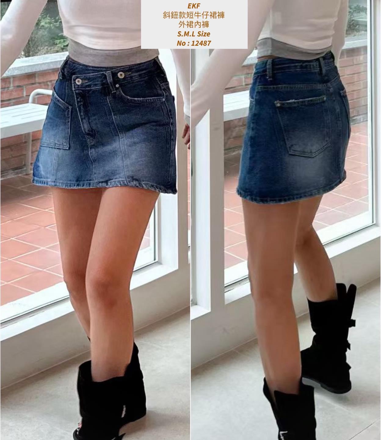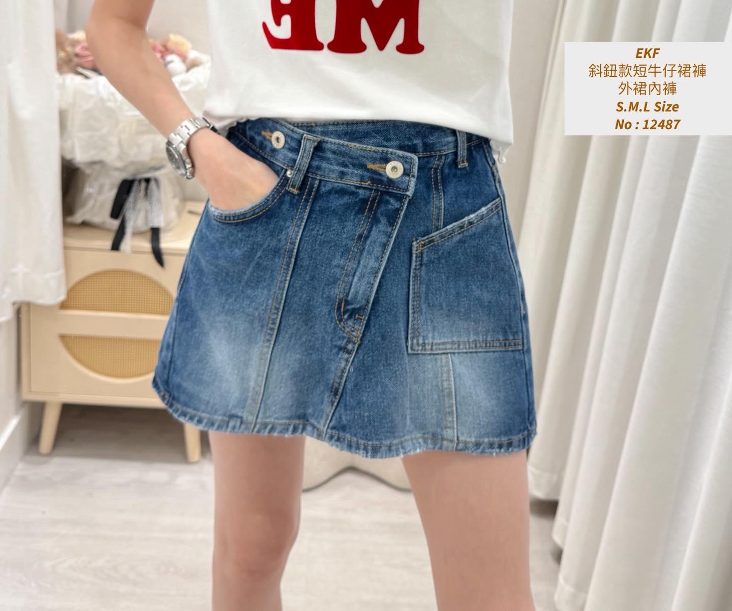 ・❥・斜鈕款牛仔短裙褲・❥・ ・❥・洗水色牛仔料 ・❥・外裙內褲 '*•.¸♡ One Colour ♡¸.•*' ✎ No: 12487 ✎ S.M.L Size : (S) Waist 25-26 Hip 36 Length 14" (M) Waist 27-28 Hip 38 Length 14" (L) Waist 29-30 Hip 39 Length 14.5"