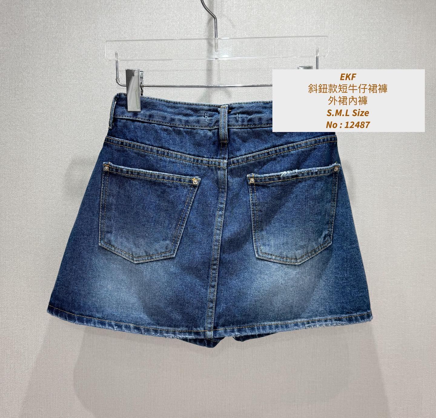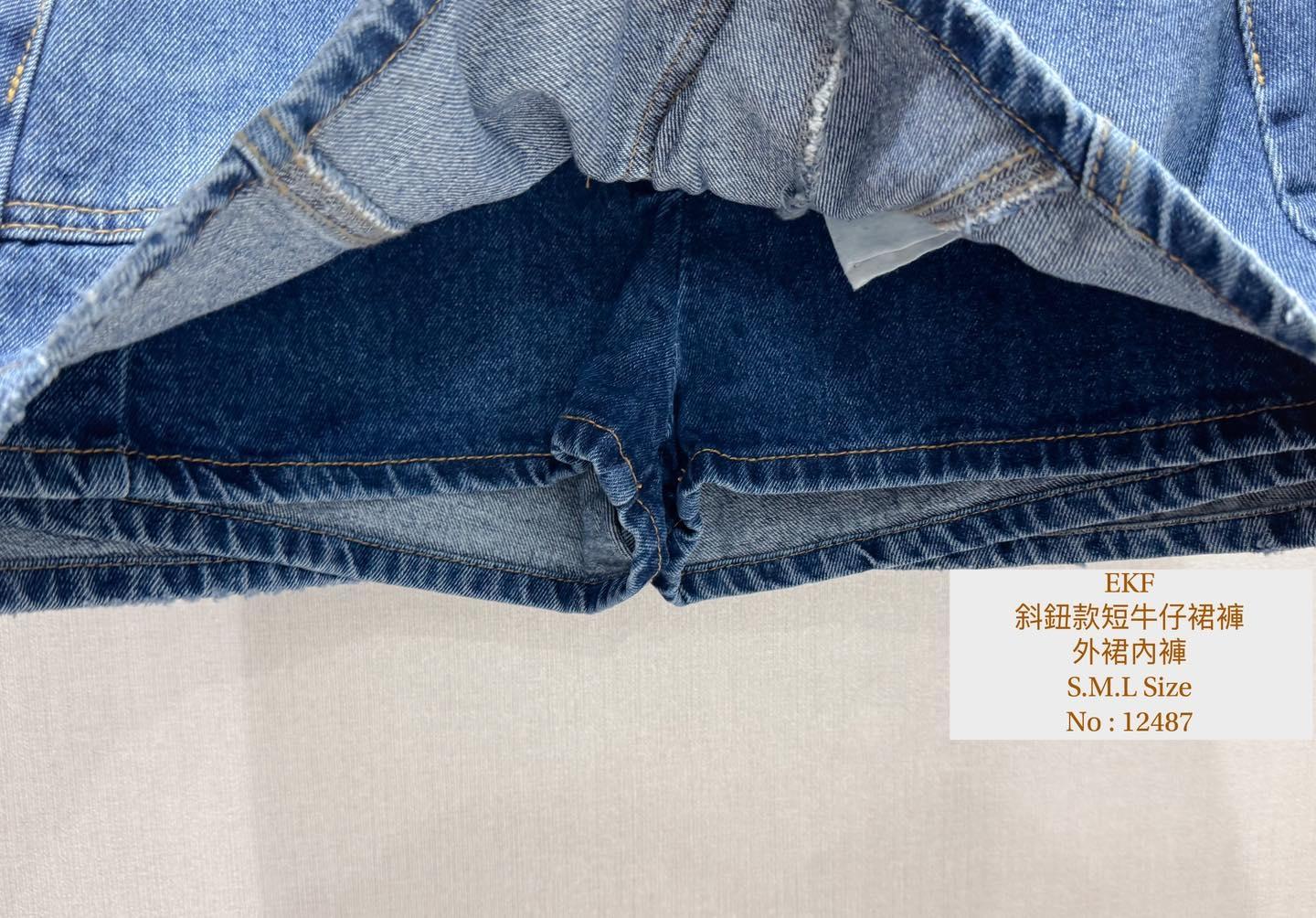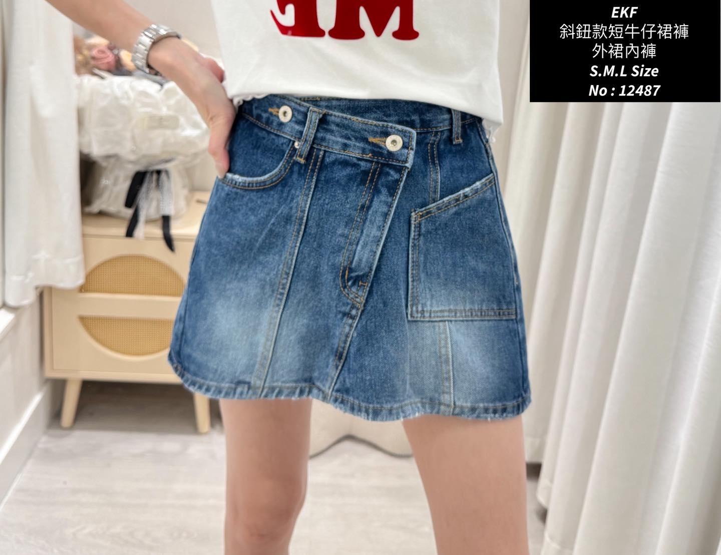 ・❥・斜鈕款牛仔短裙褲・❥・ ・❥・洗水色牛仔料 ・❥・外裙內褲 '*•.¸♡ One Colour ♡¸.•*' ✎ No: 12487 ✎ S.M.L Size : (S) Waist 25-26 Hip 36 Length 14" (M) Waist 27-28 Hip 38 Length 14" (L) Waist 29-30 Hip 39 Length 14.5"