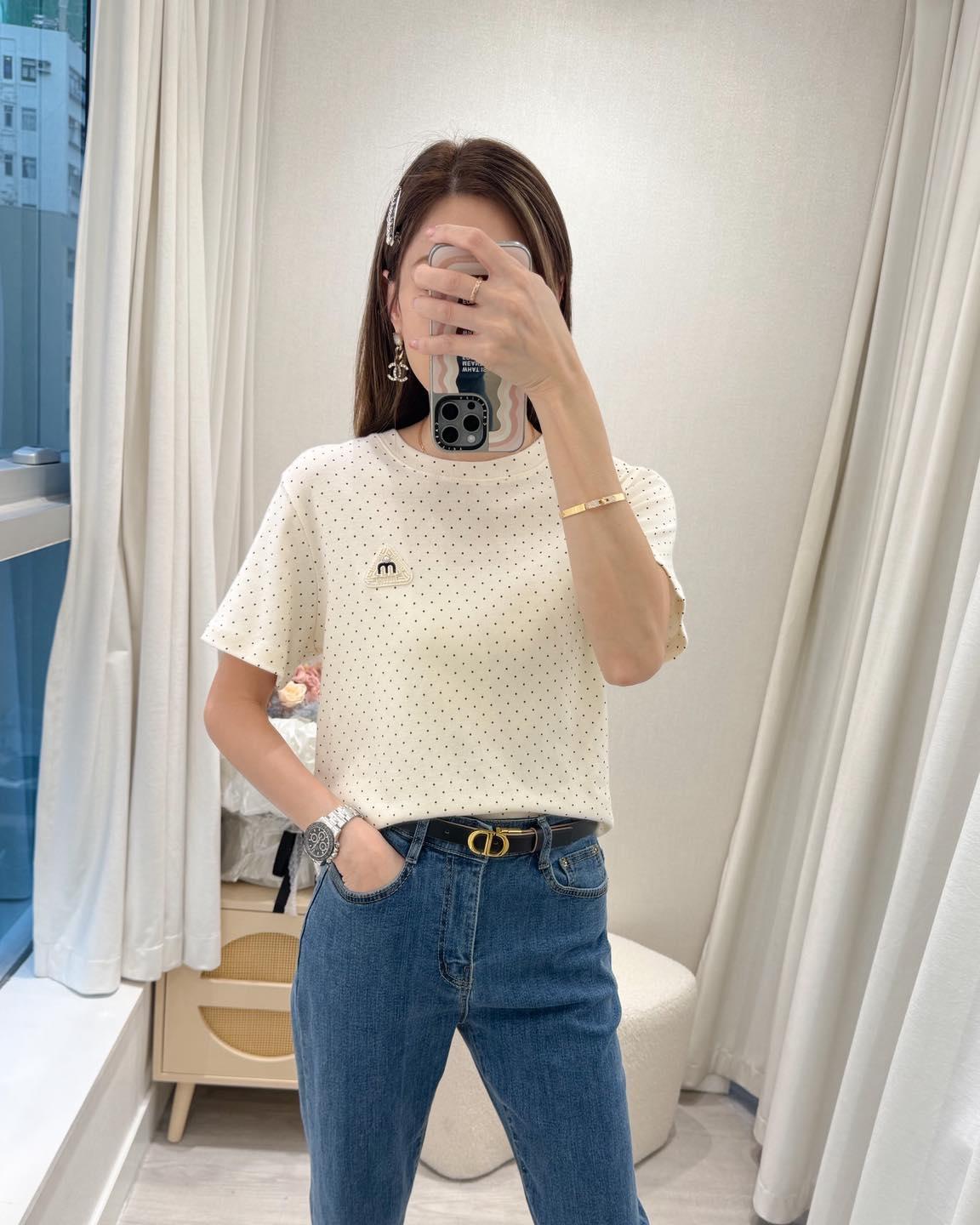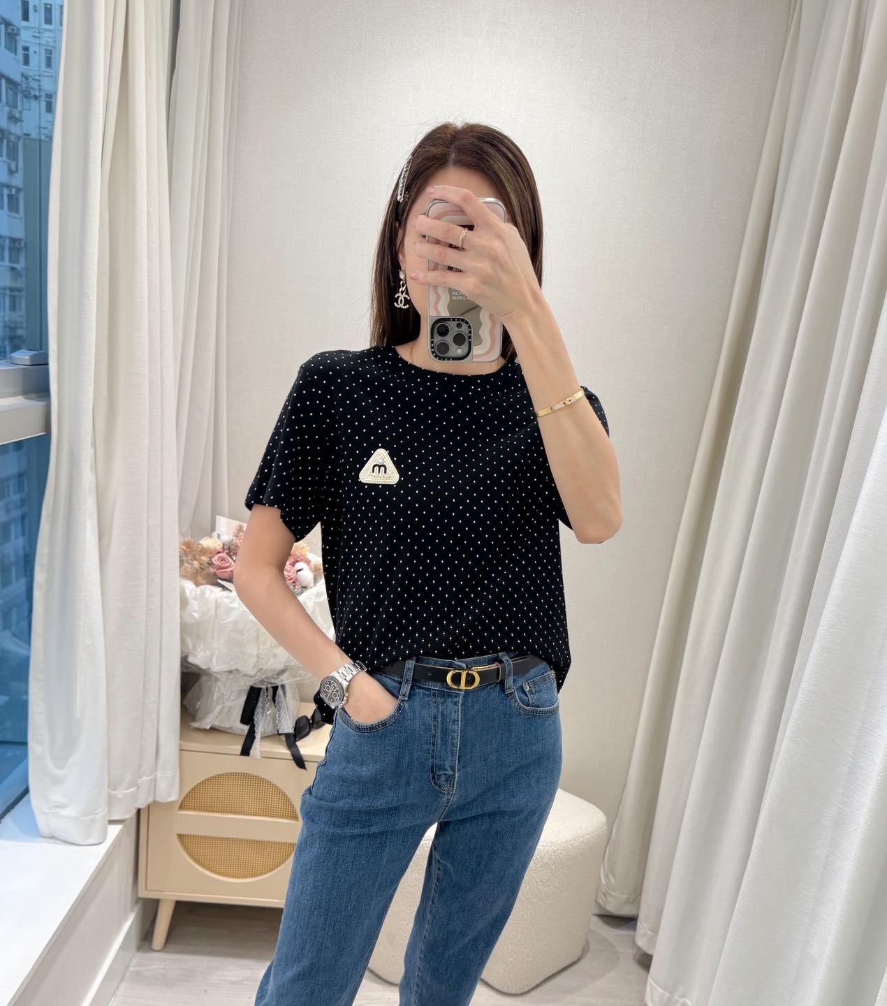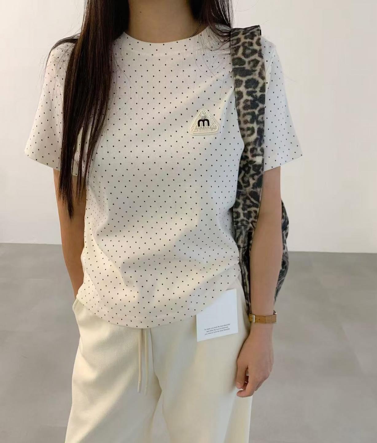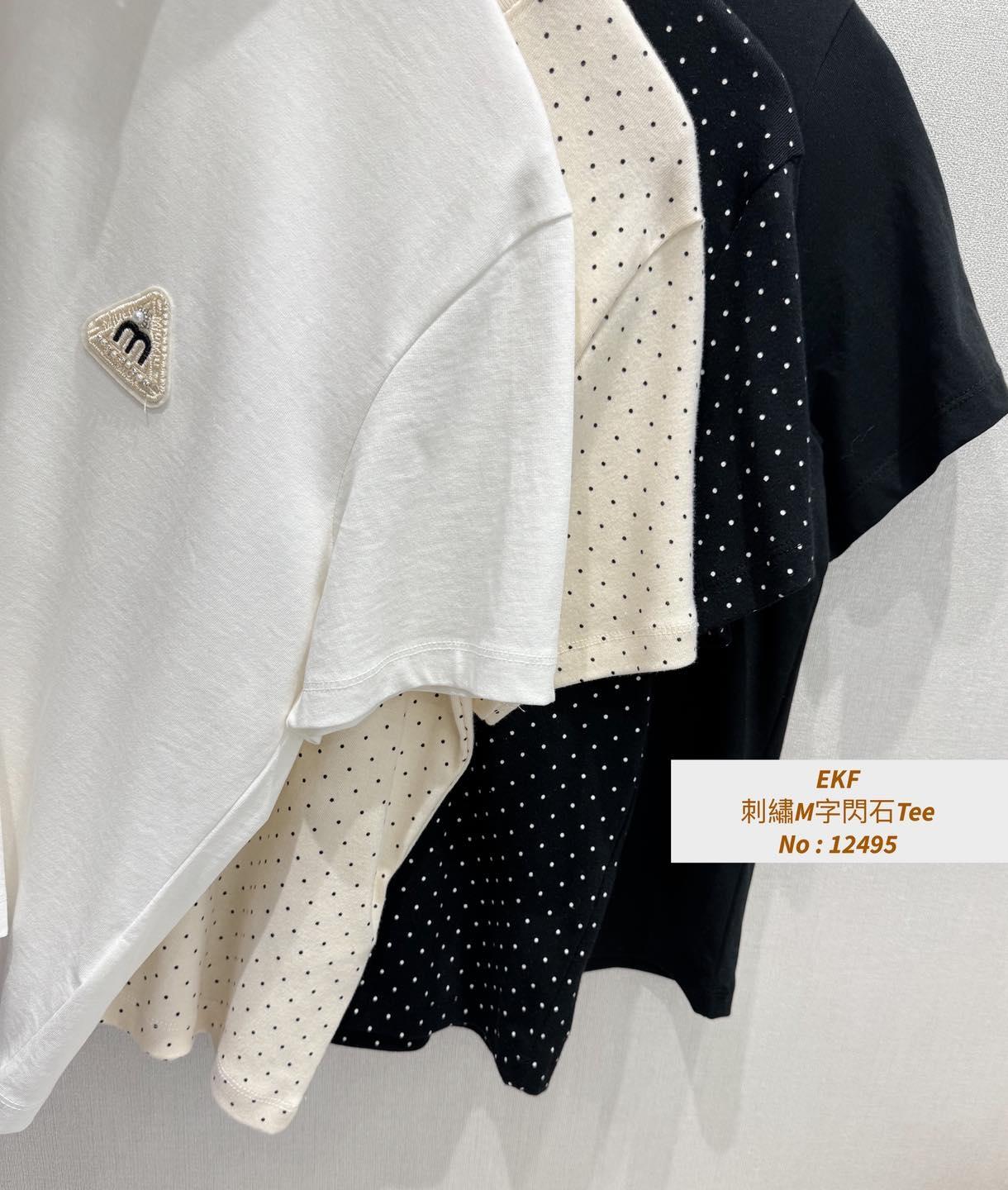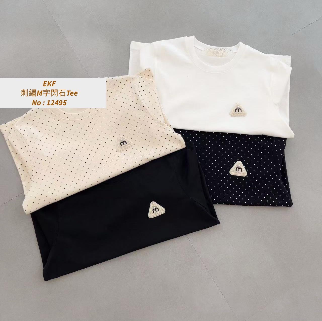 ・❥・刺繡M字閃石Tee・❥・ ・❥・彈性棉料 '*•.¸♡ 白色 / 黑色 / 波點米色 / 波點黑色 4 Colour ♡¸.•*' ✎ No: 12495 ✎ Size : Chest 40-52" Length 22"