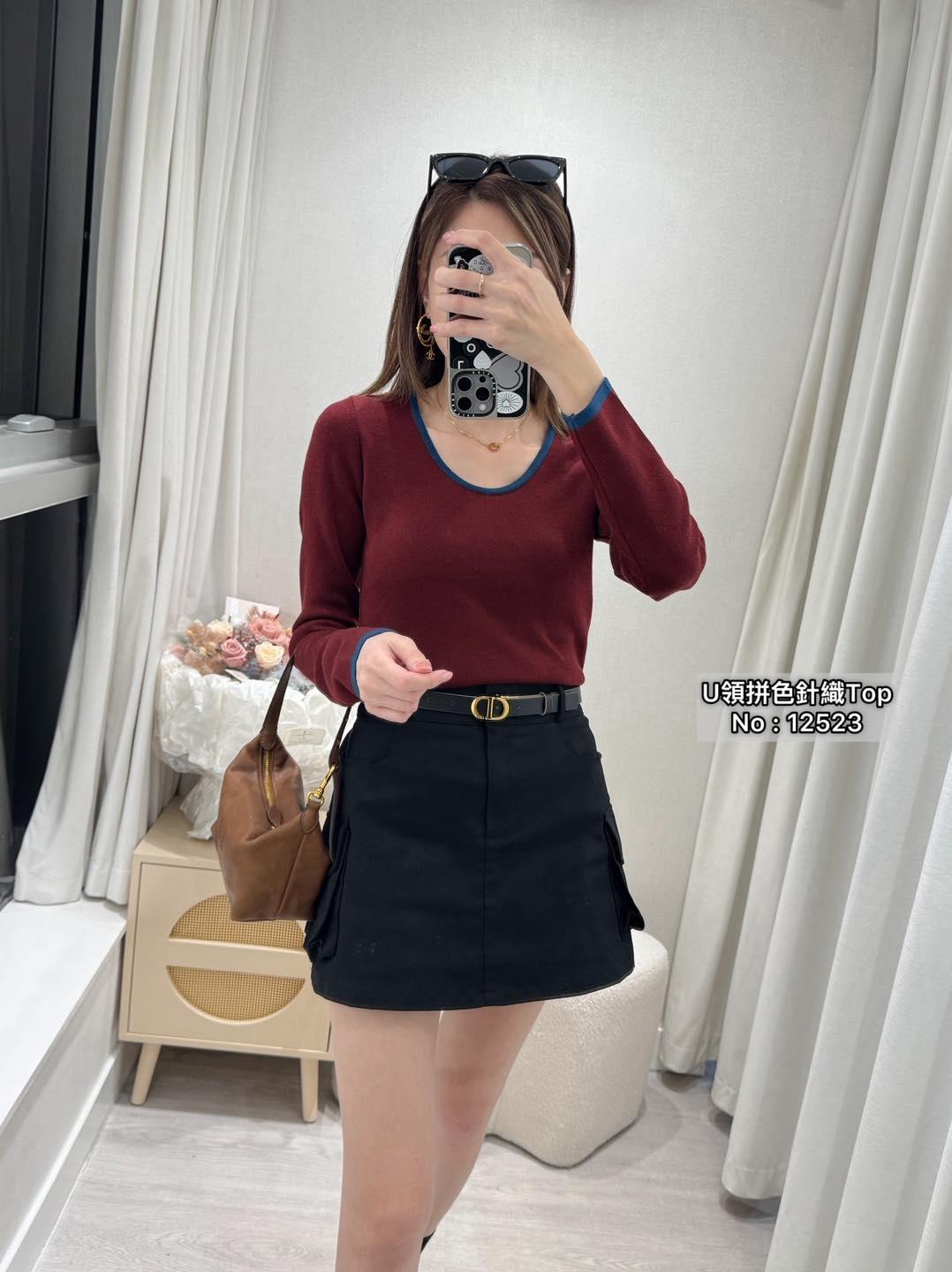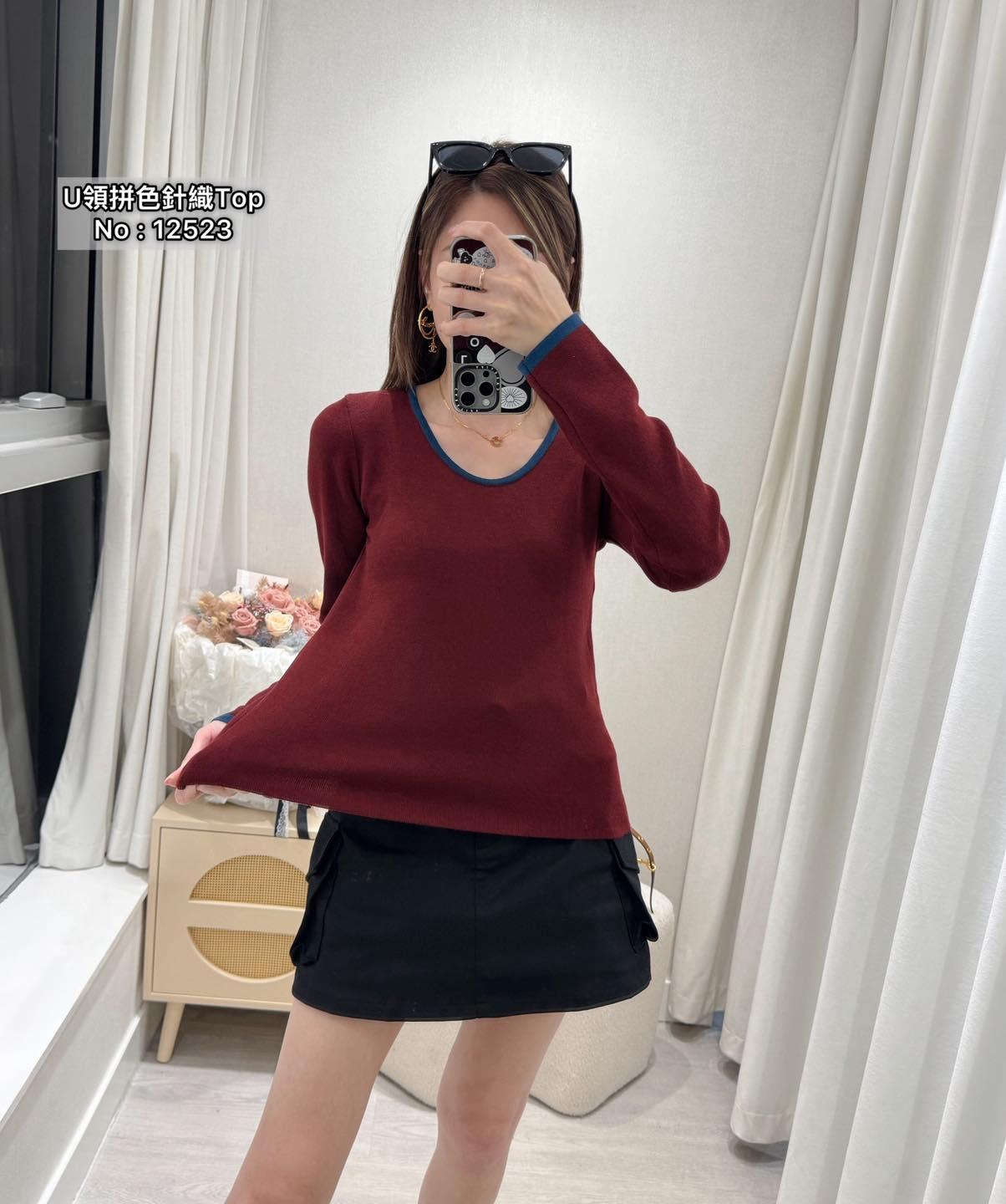 ・❥・U領拼色針織Top・❥・