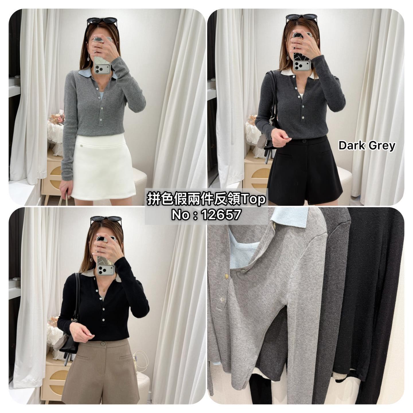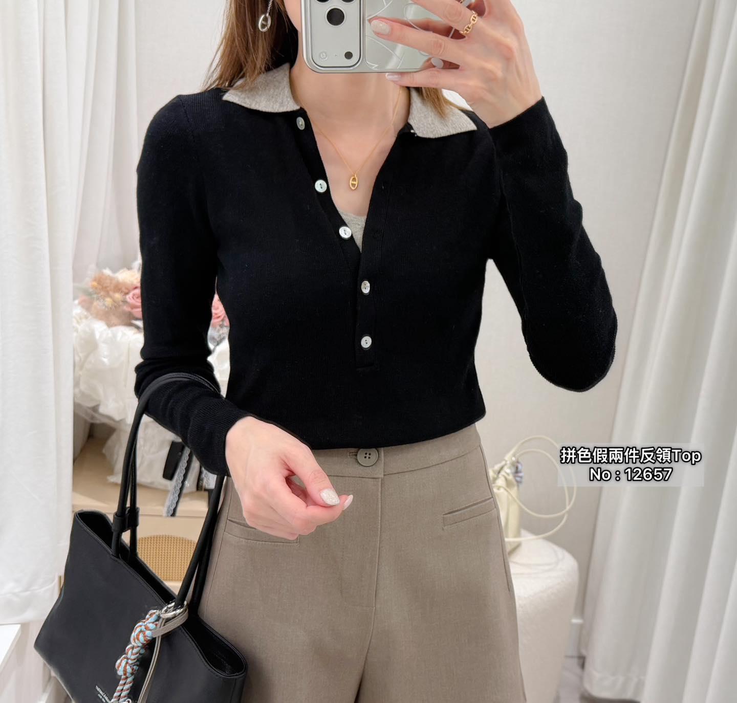 ・❥・拼色假兩件反領Top・❥・