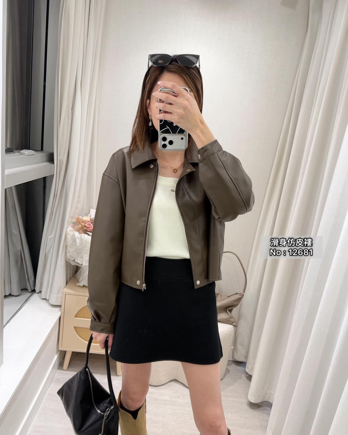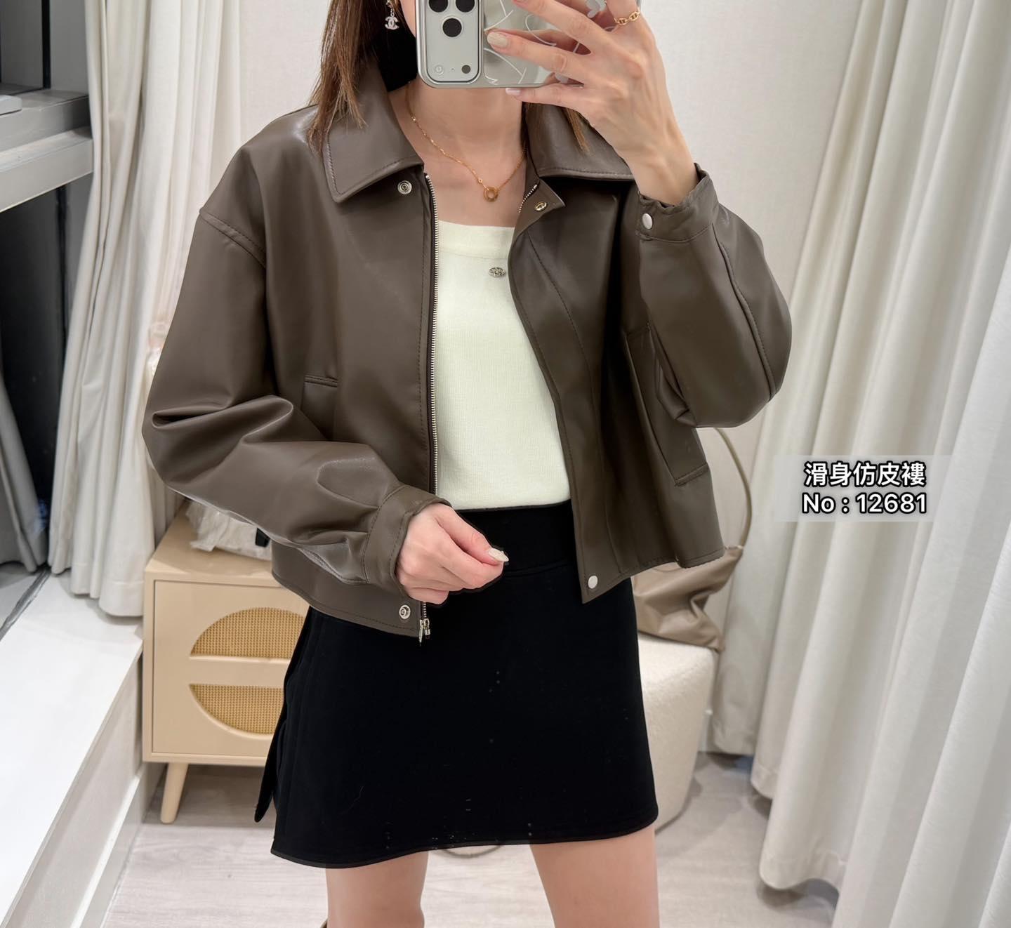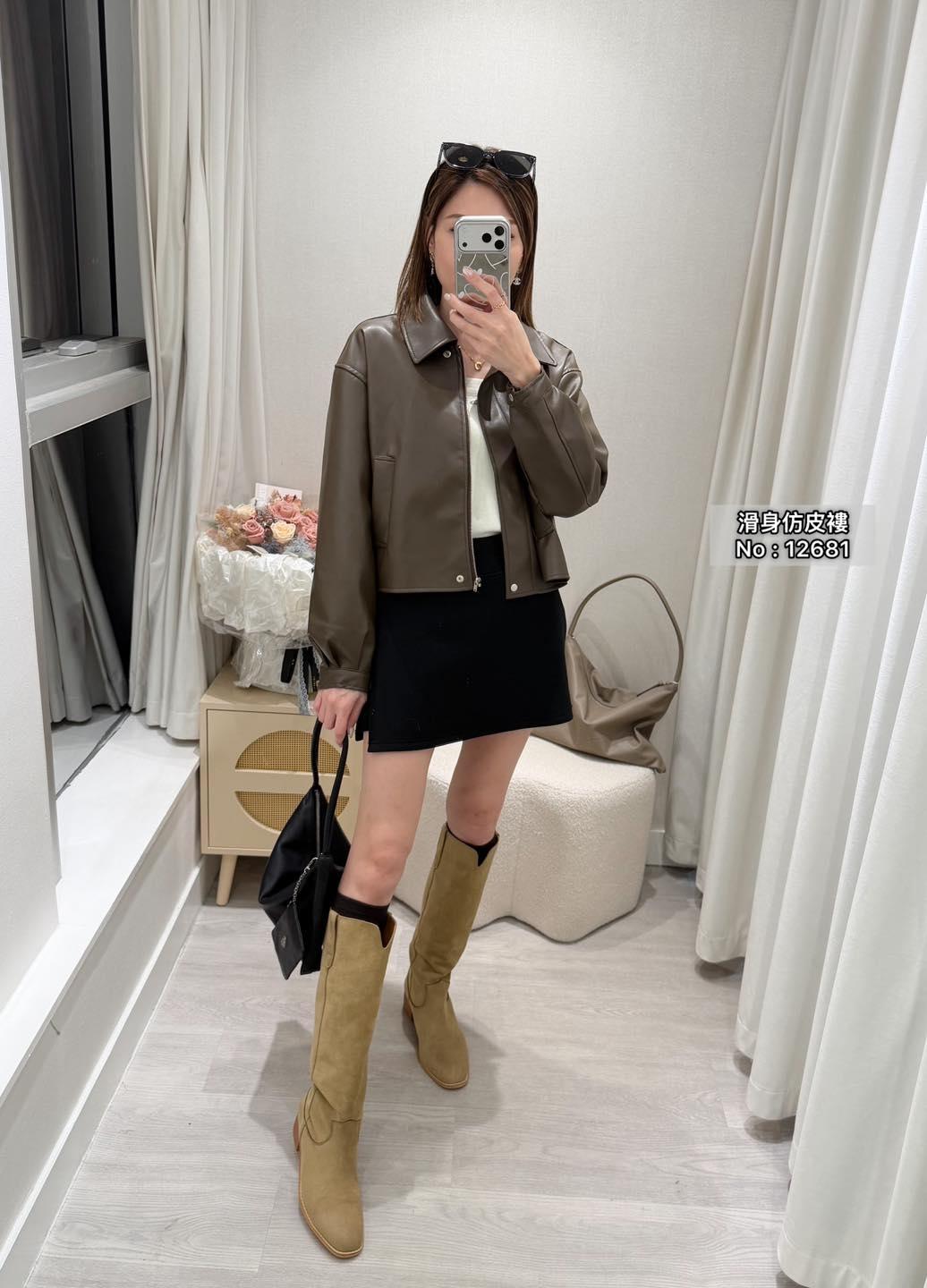 ・❥・拉鍊款滑身仿皮褸・❥・