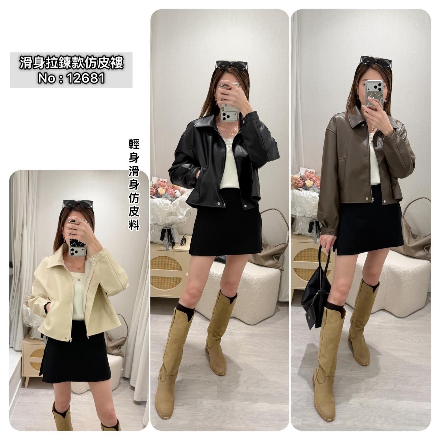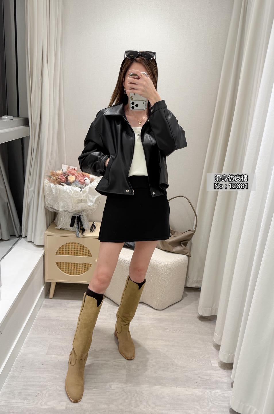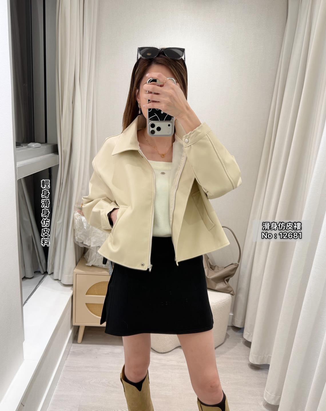 ・❥・拉鍊款滑身仿皮褸・❥・