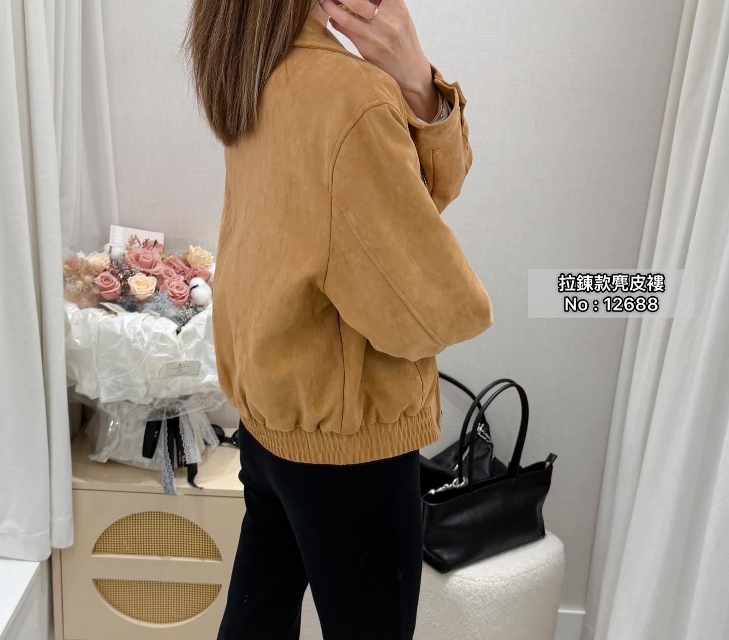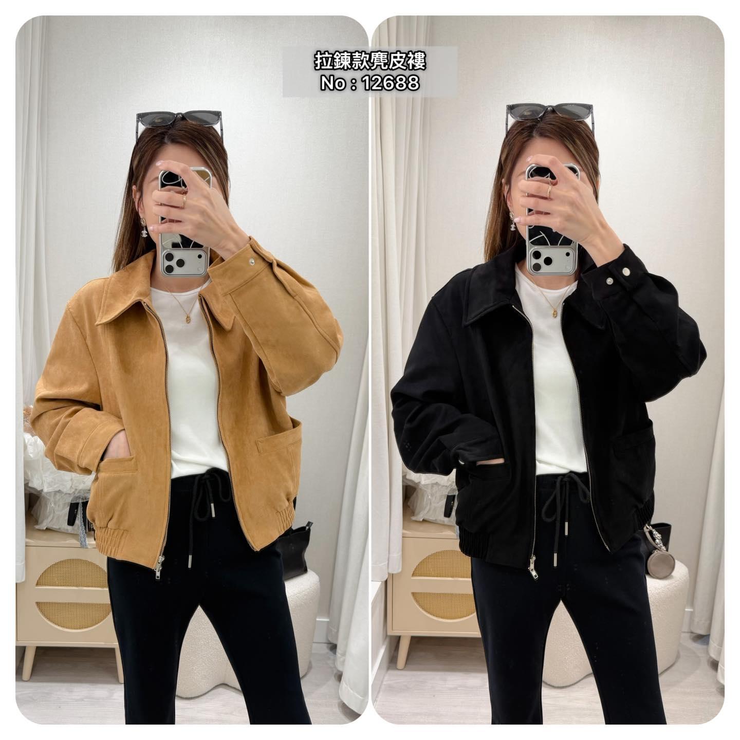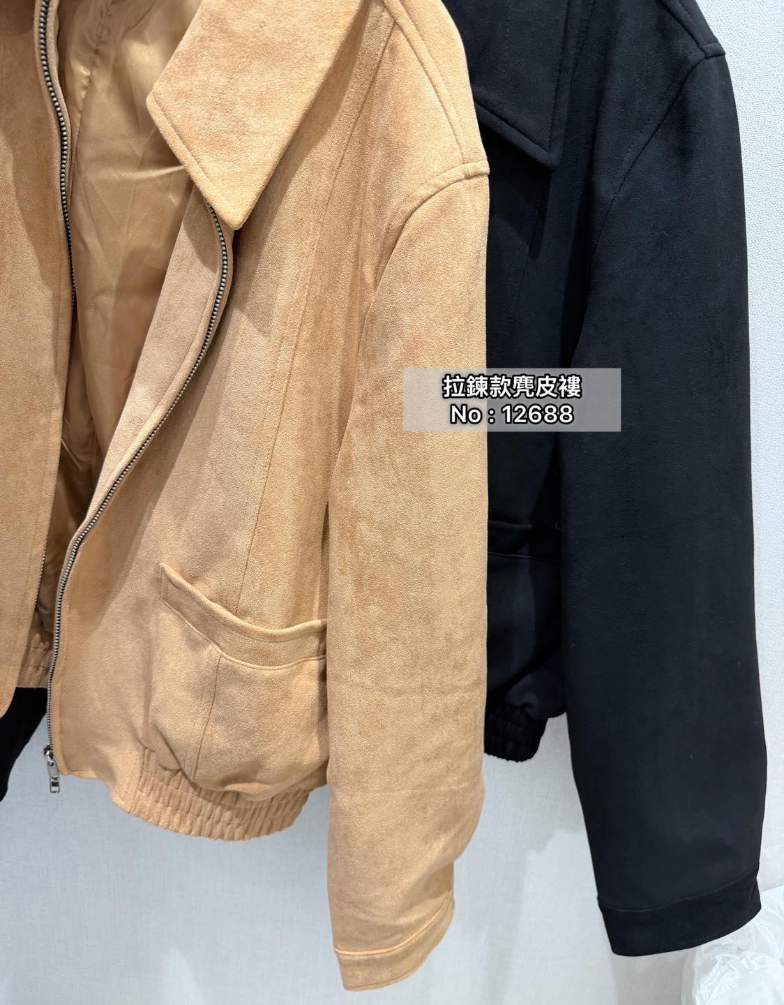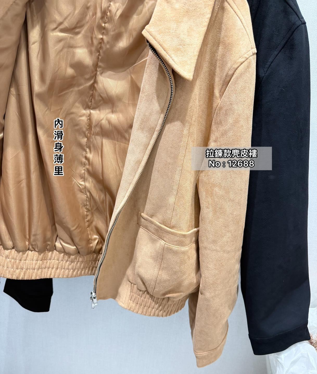 ・❥・拉鍊款麂皮褸・❥・ ・❥・橡筋腰位 ・❥・直袋款 '*•.¸♡ 淺啡/ 黑色 / 2 Colour ♡¸.•*' ✎ No: 12688 ✎ Size : Chest 44 Length 21"