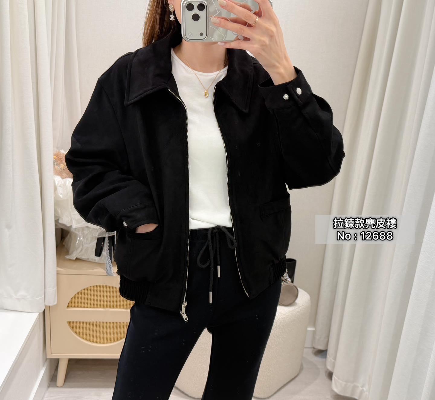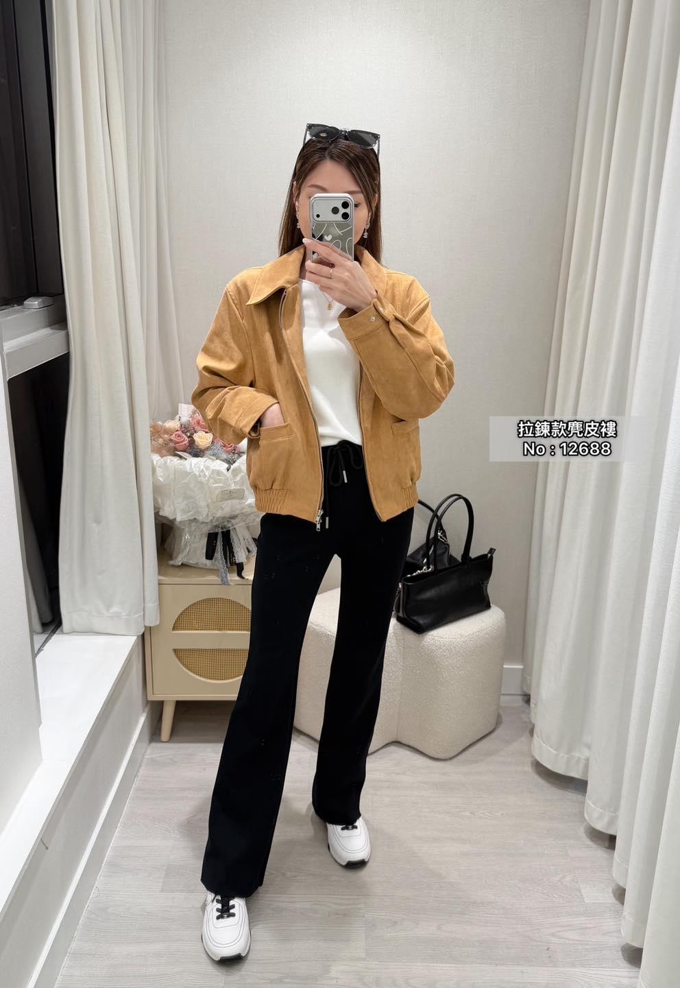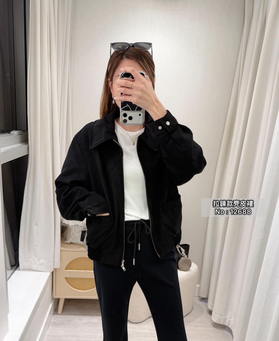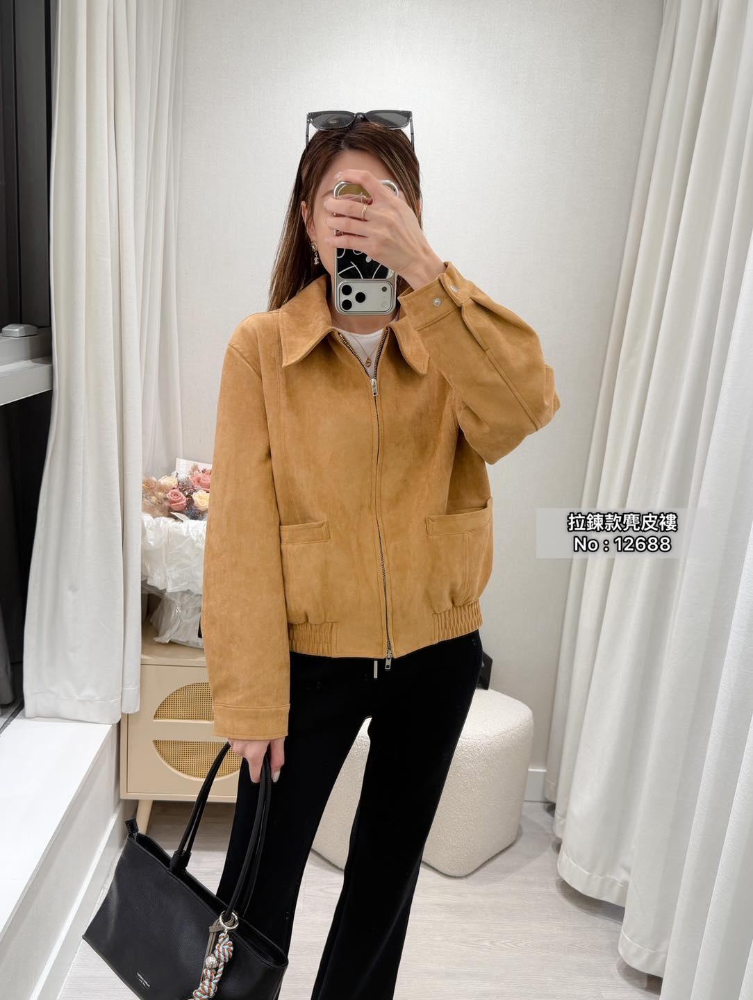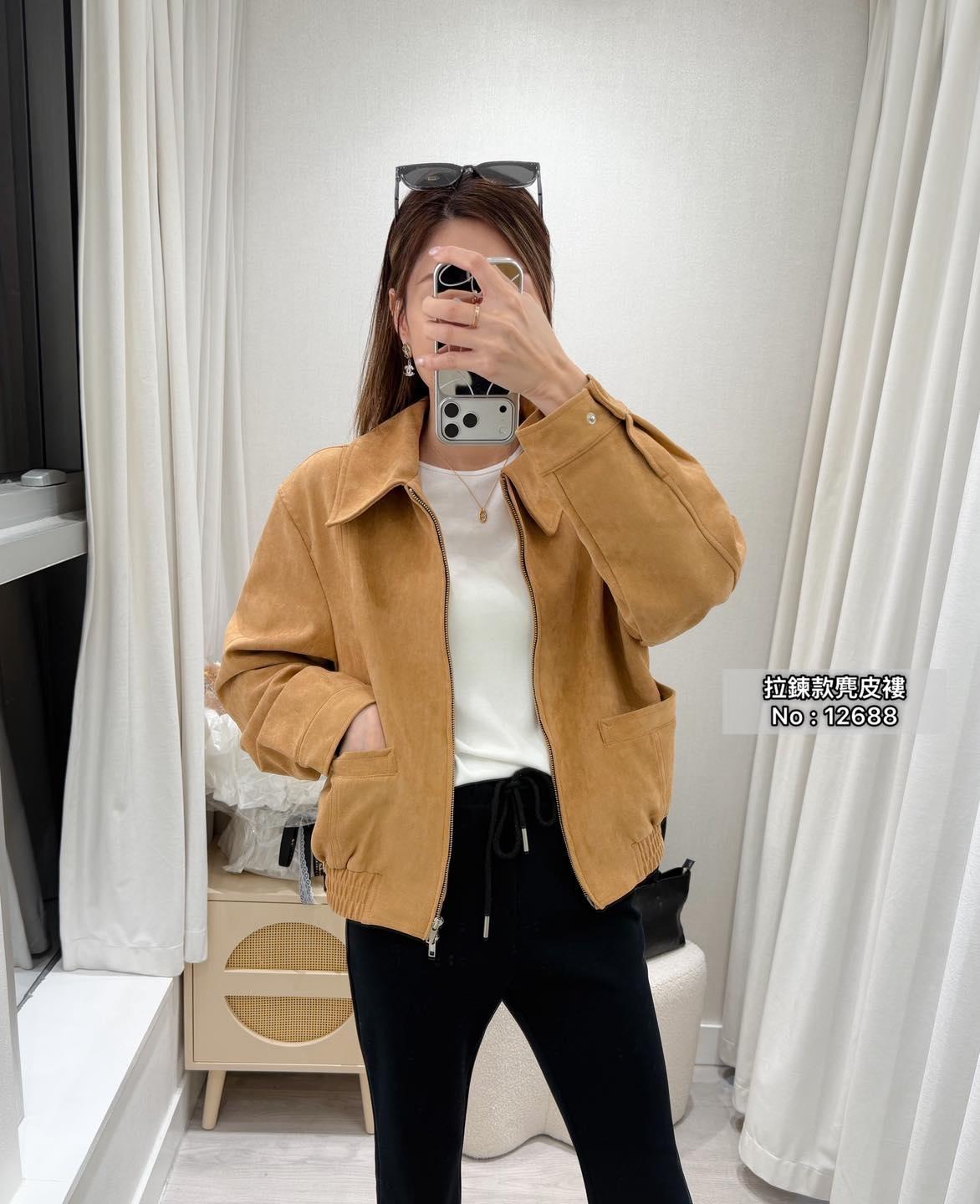 ・❥・拉鍊款麂皮褸・❥・ ・❥・橡筋腰位 ・❥・直袋款 '*•.¸♡ 淺啡/ 黑色 / 2 Colour ♡¸.•*' ✎ No: 12688 ✎ Size : Chest 44 Length 21"