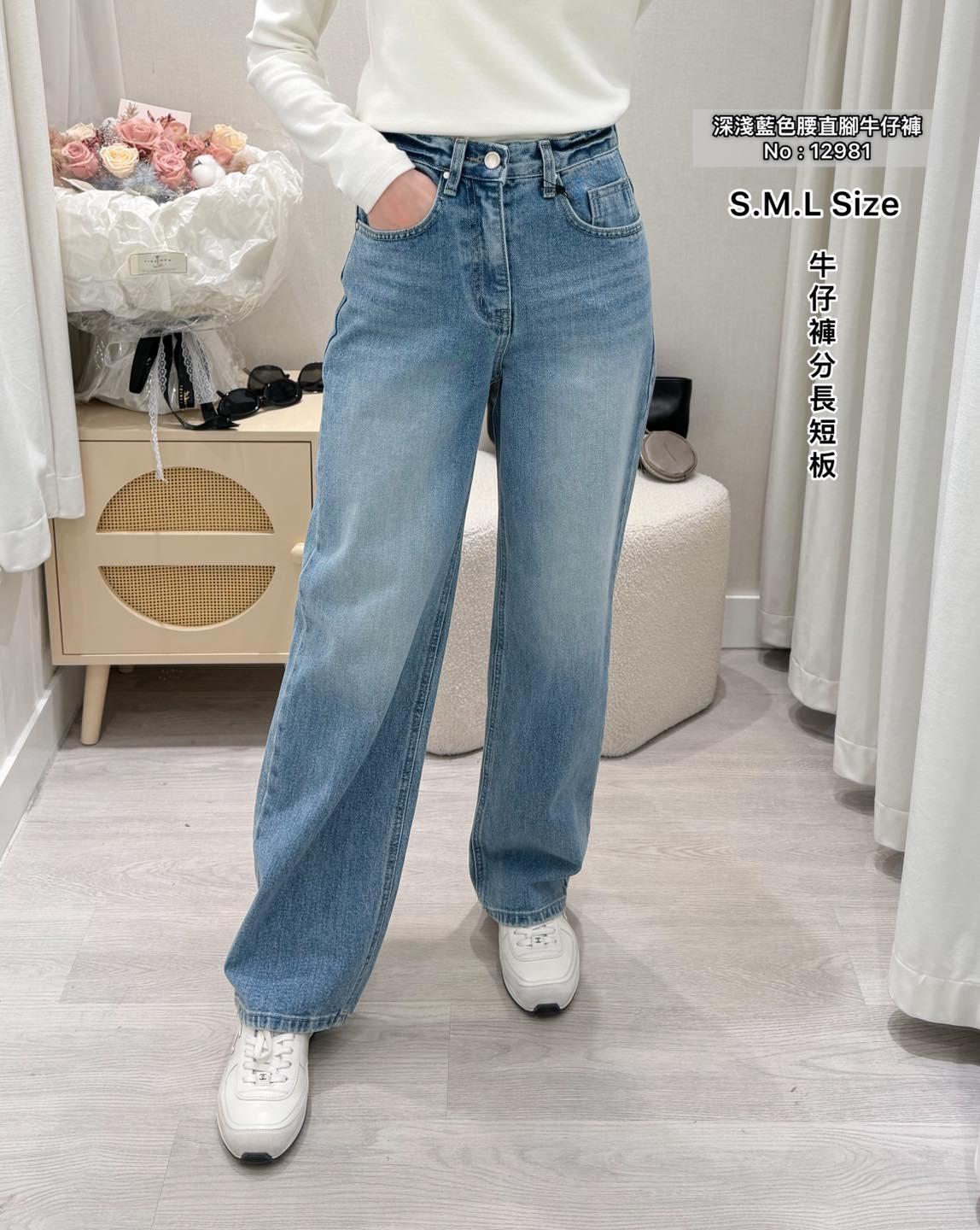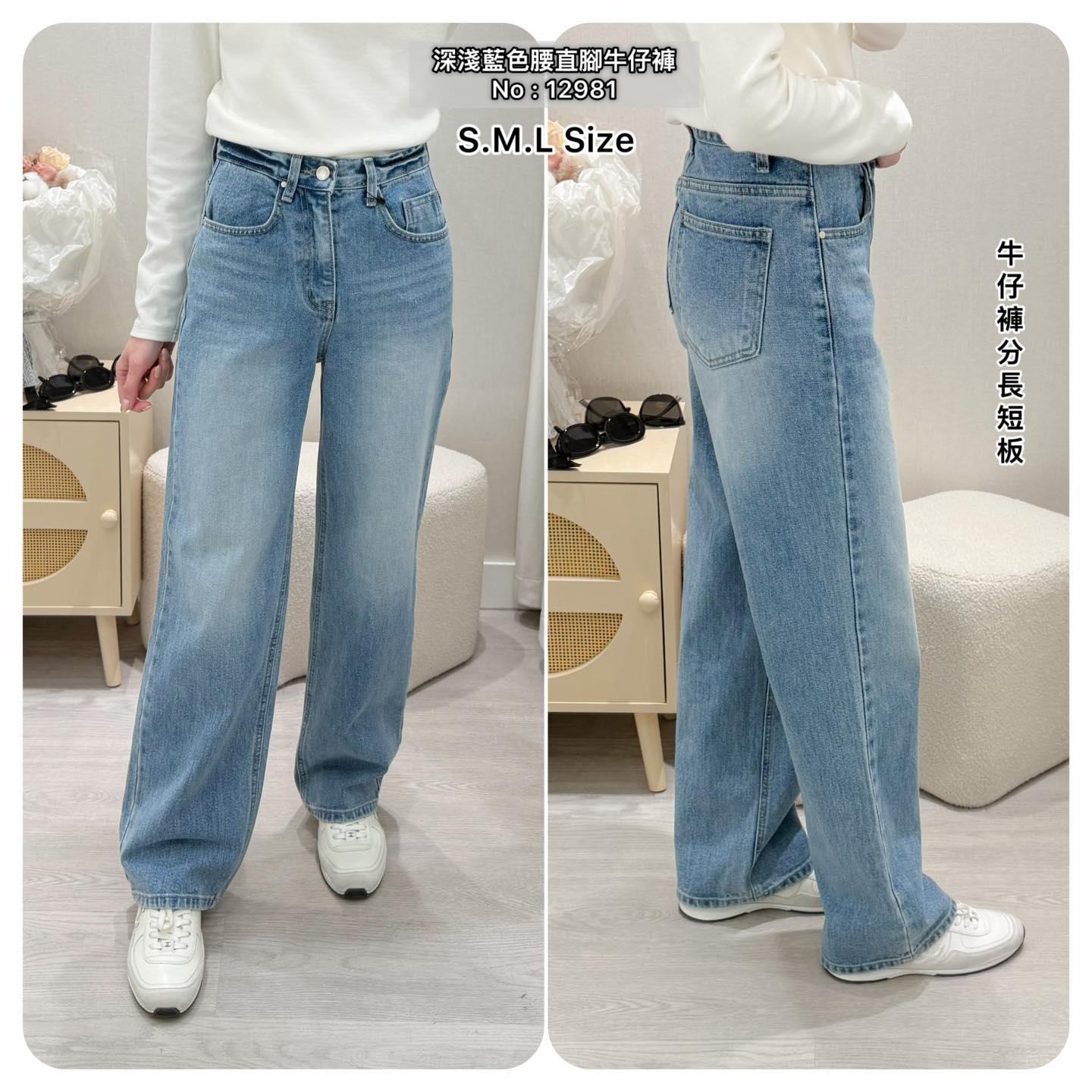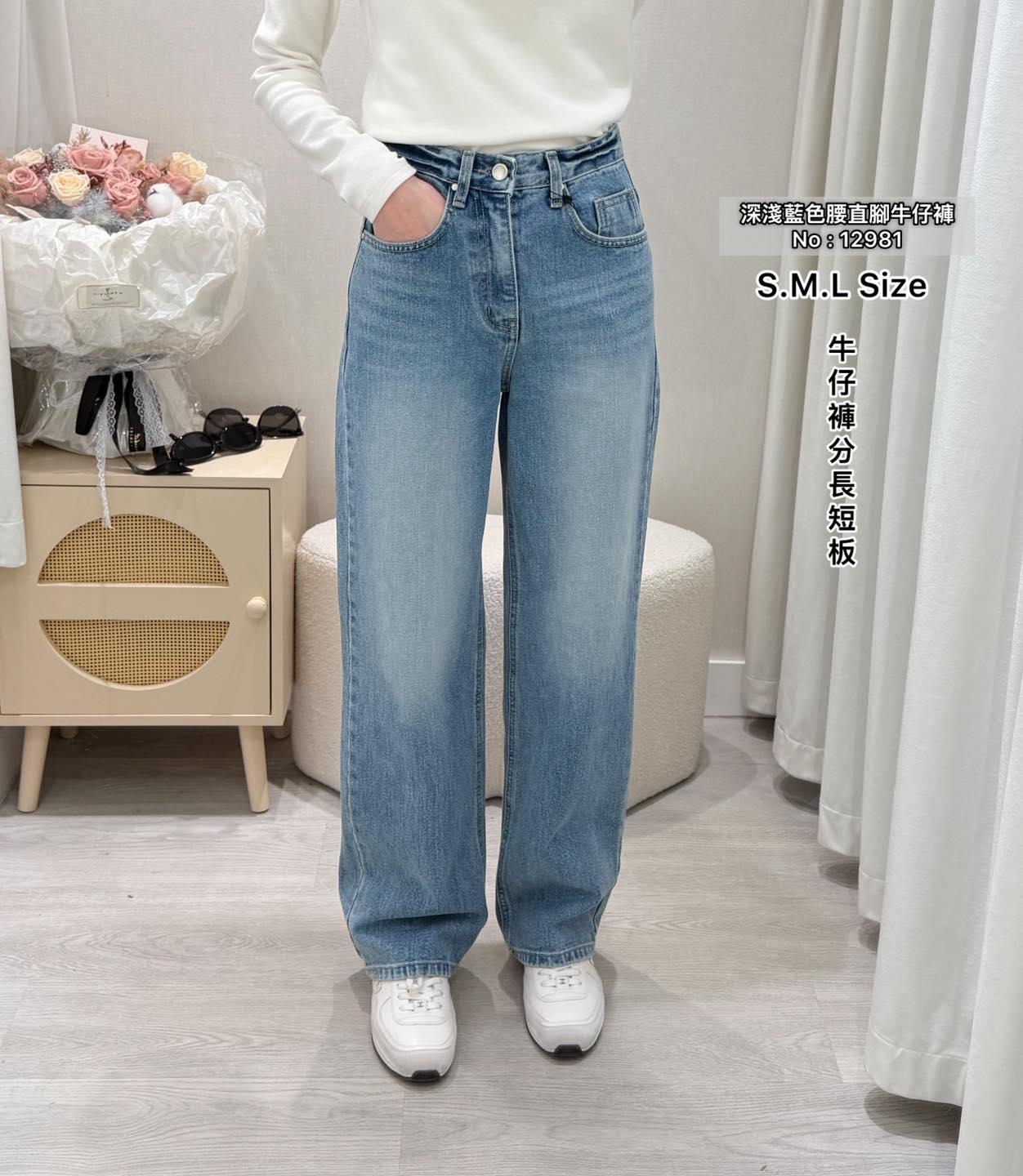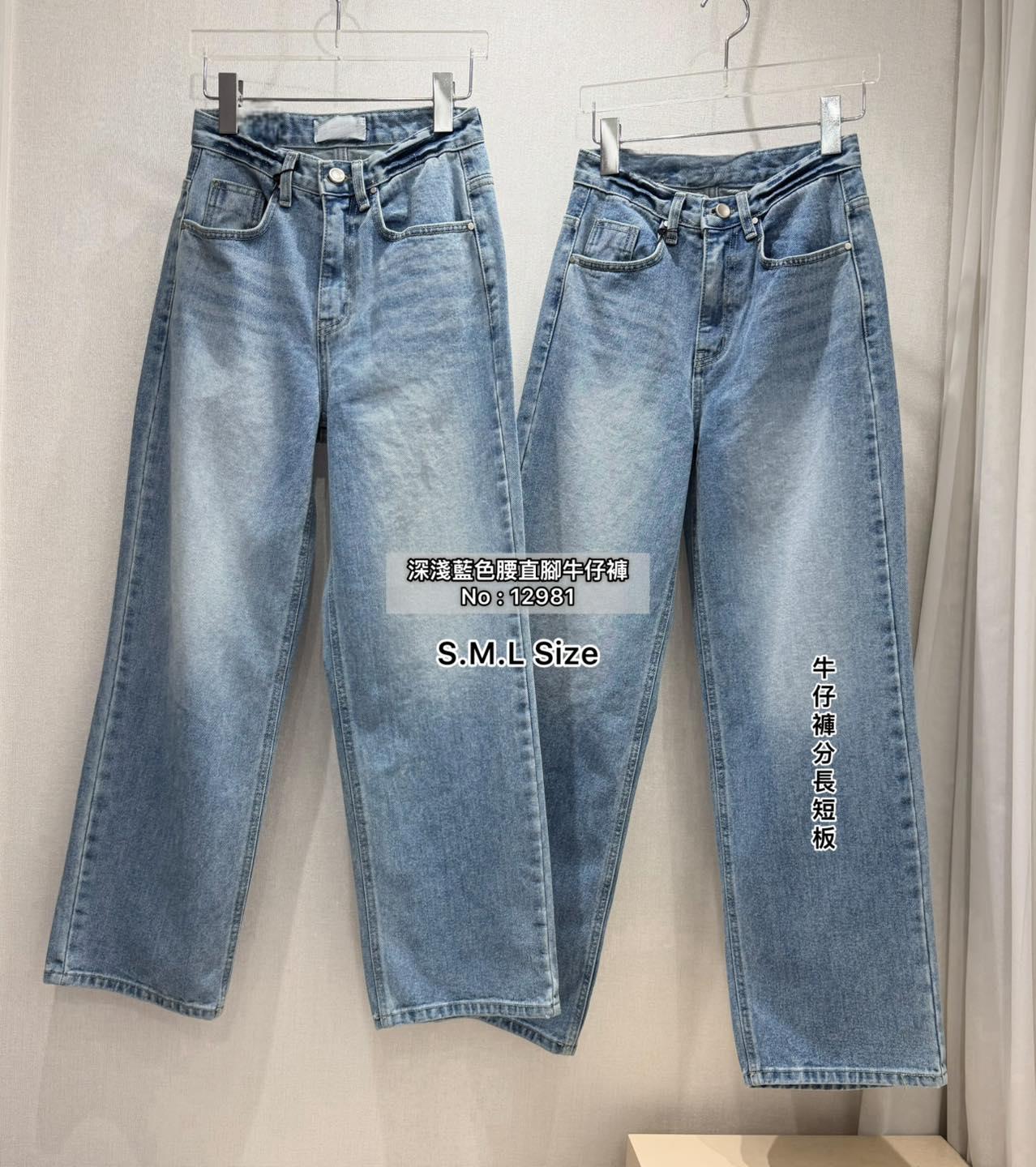 韓國拼色腰直腳牛仔褲