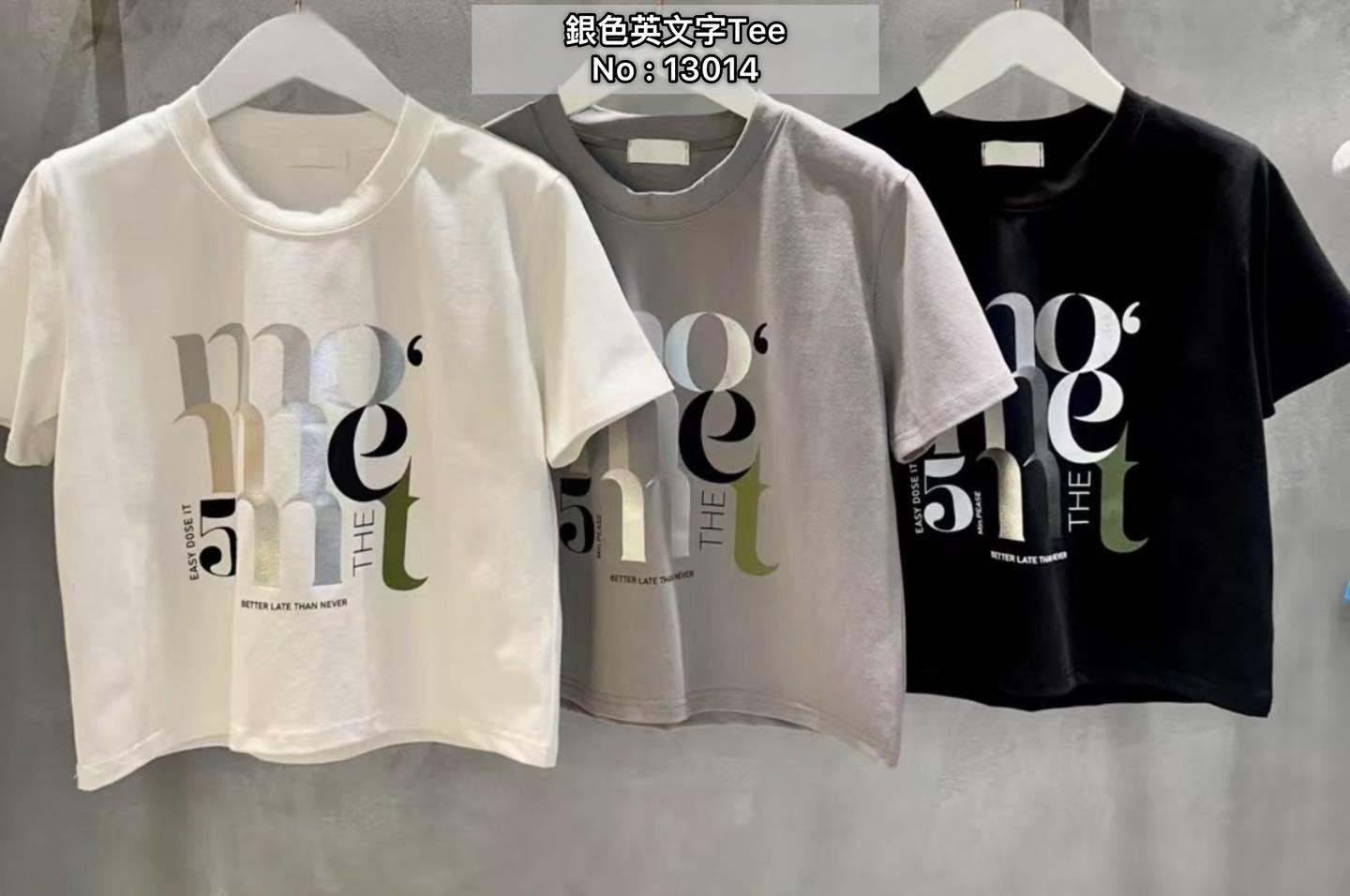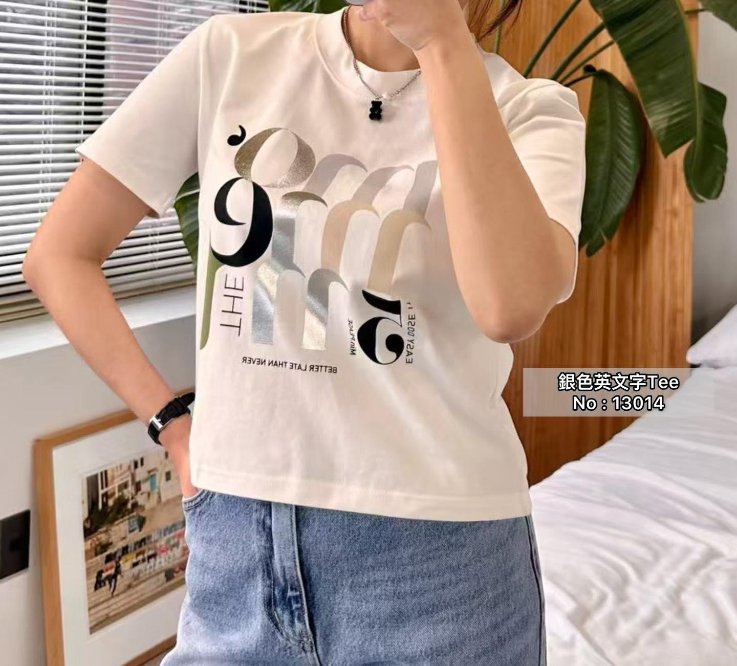 ・❥・銀色英文字Tee・❥・ ・❥・三個色都靚呀又好襯 ・❥・彈性棉料 3色 白色/ 灰色 / 黑色 ✎ No: 13014 ✎ Free Size : Chest 34-44 Length 19"