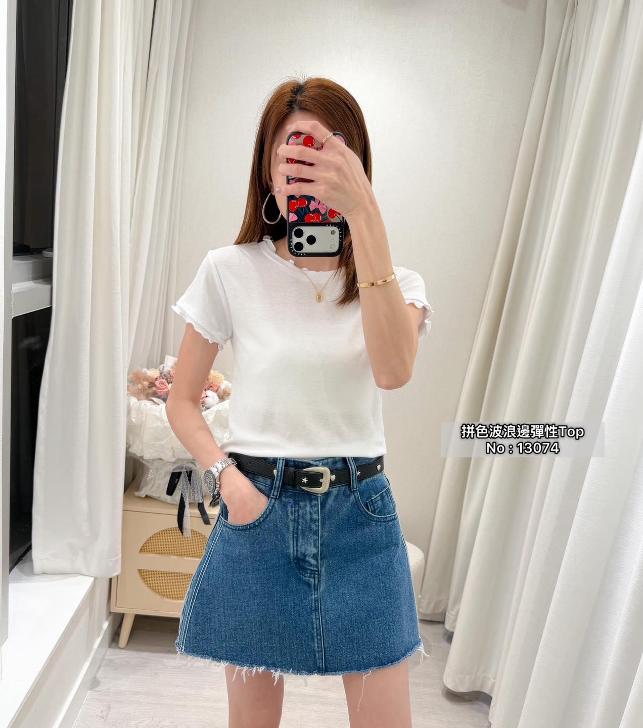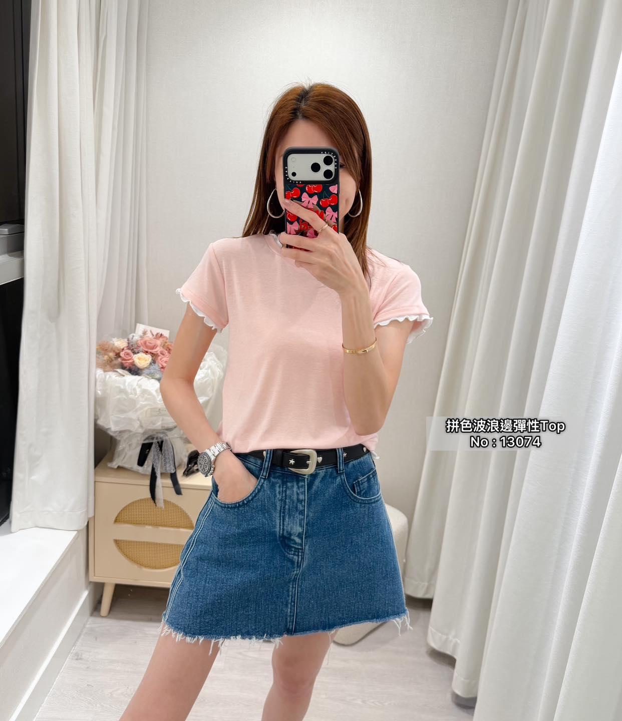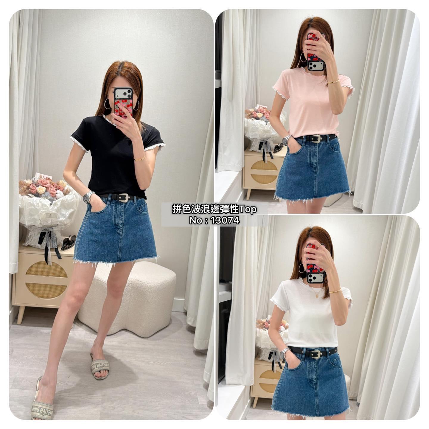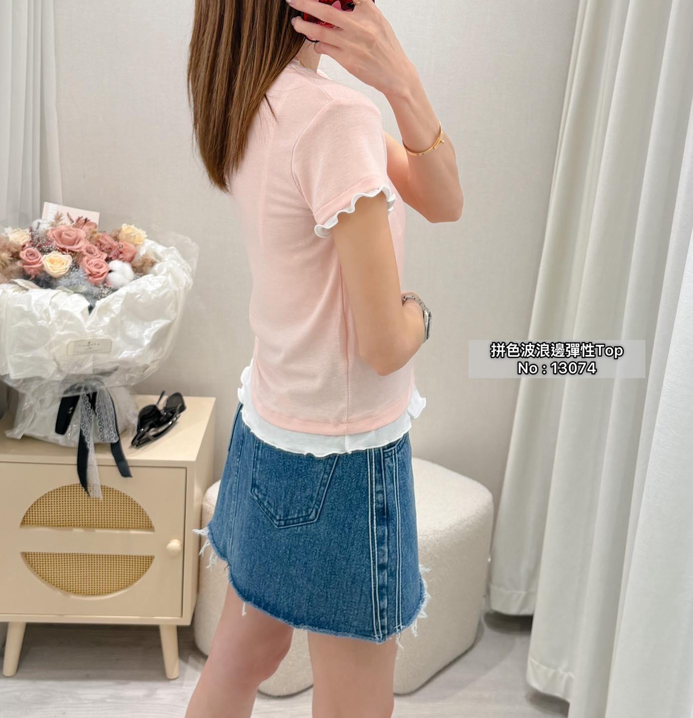 ・❥・拼色波浪邊彈性Top・❥・ ・❥・抵著款 ・❥・彈性薄棉料 3 色 白色 / 粉色 / 黑色 ✎ No: 13074 ✎ Free Size : Chest 34-50 Length 20"