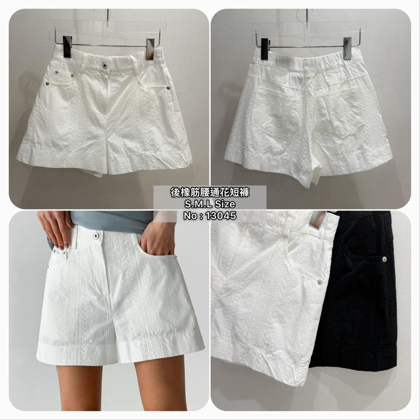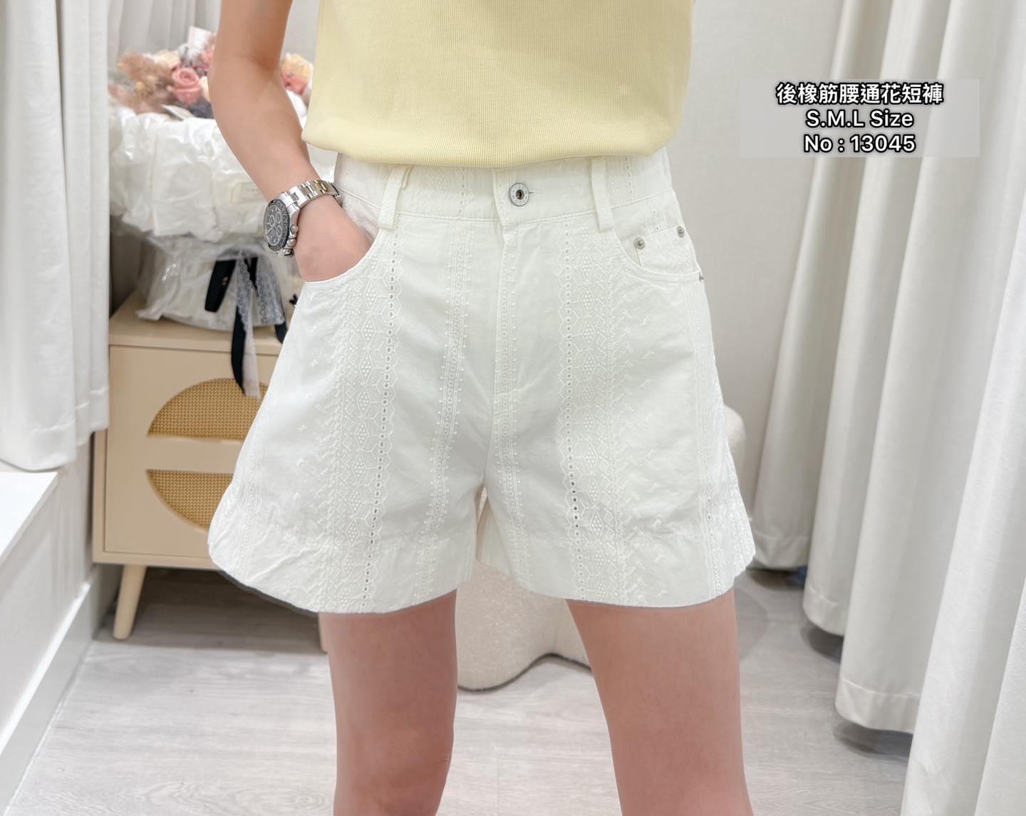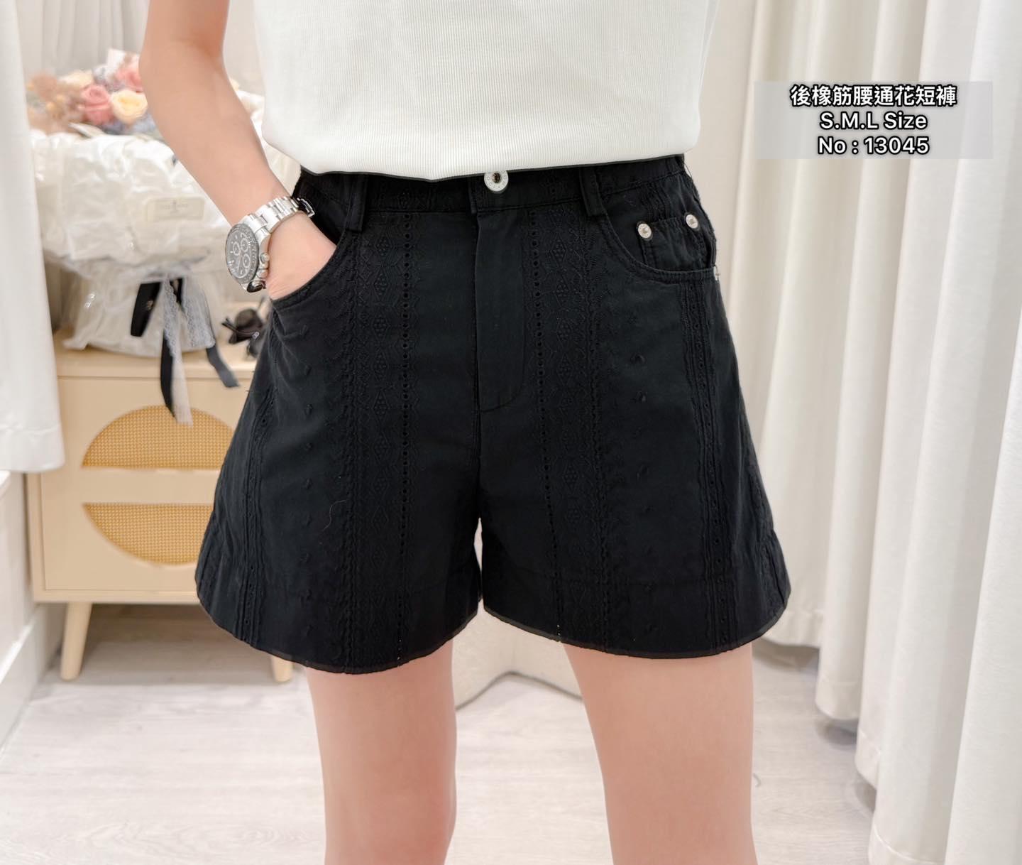 #13045 後橡筋腰通花短褲