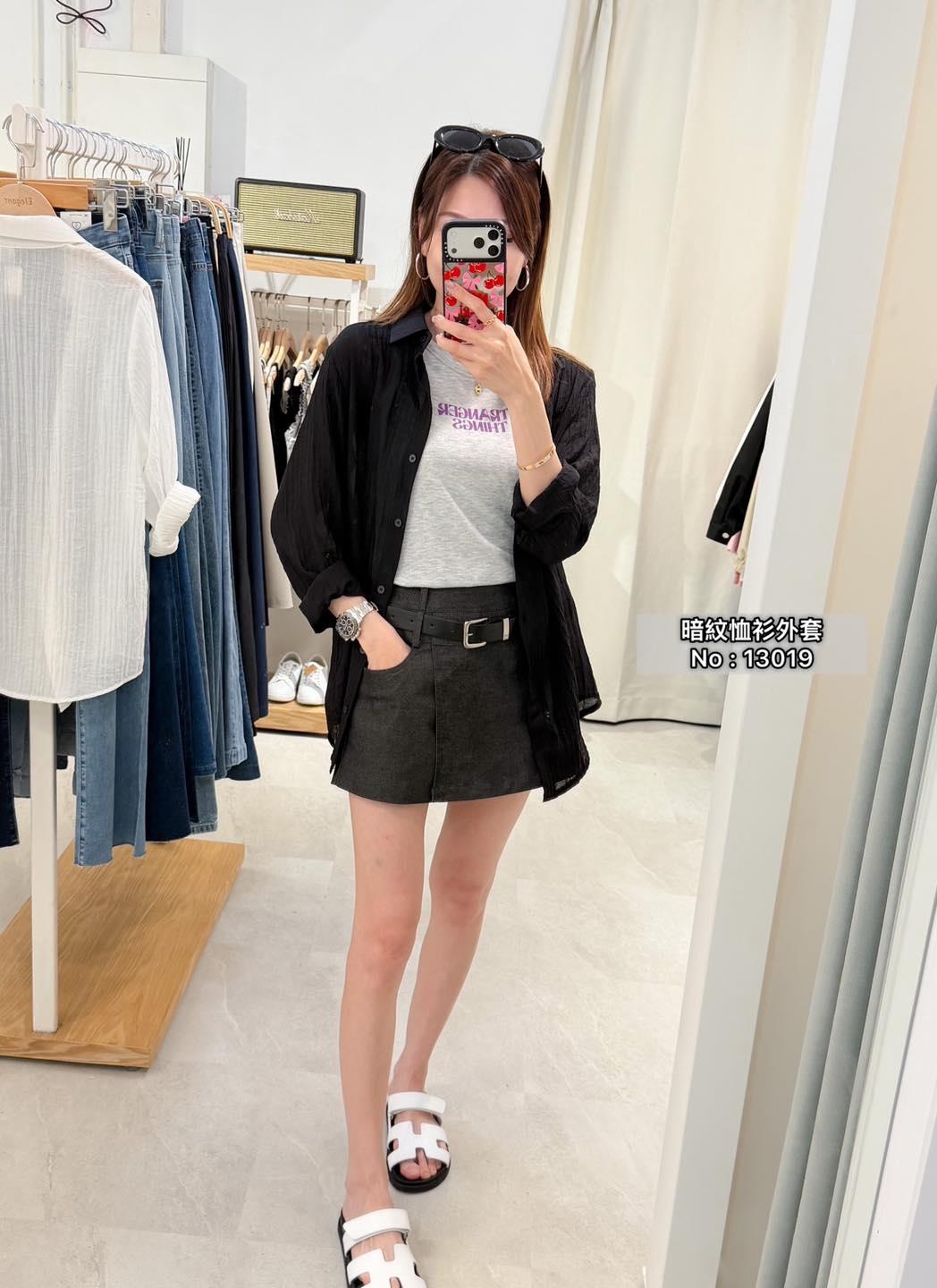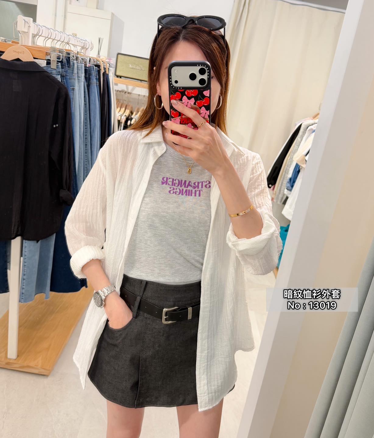 ・❥・暗紋恤衫外套・❥・ ・❥・綁腰著都靚呀 ・❥・滑身暗紋恤料 2 色 白色/黑色 ✎ No: 13019 ✎ Free Size : Chest 38 Length 25"