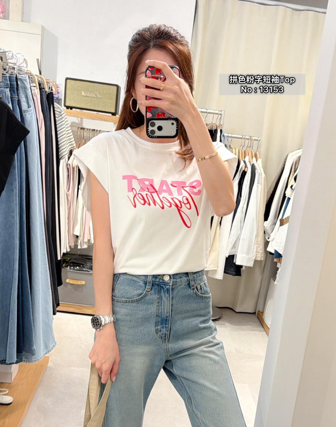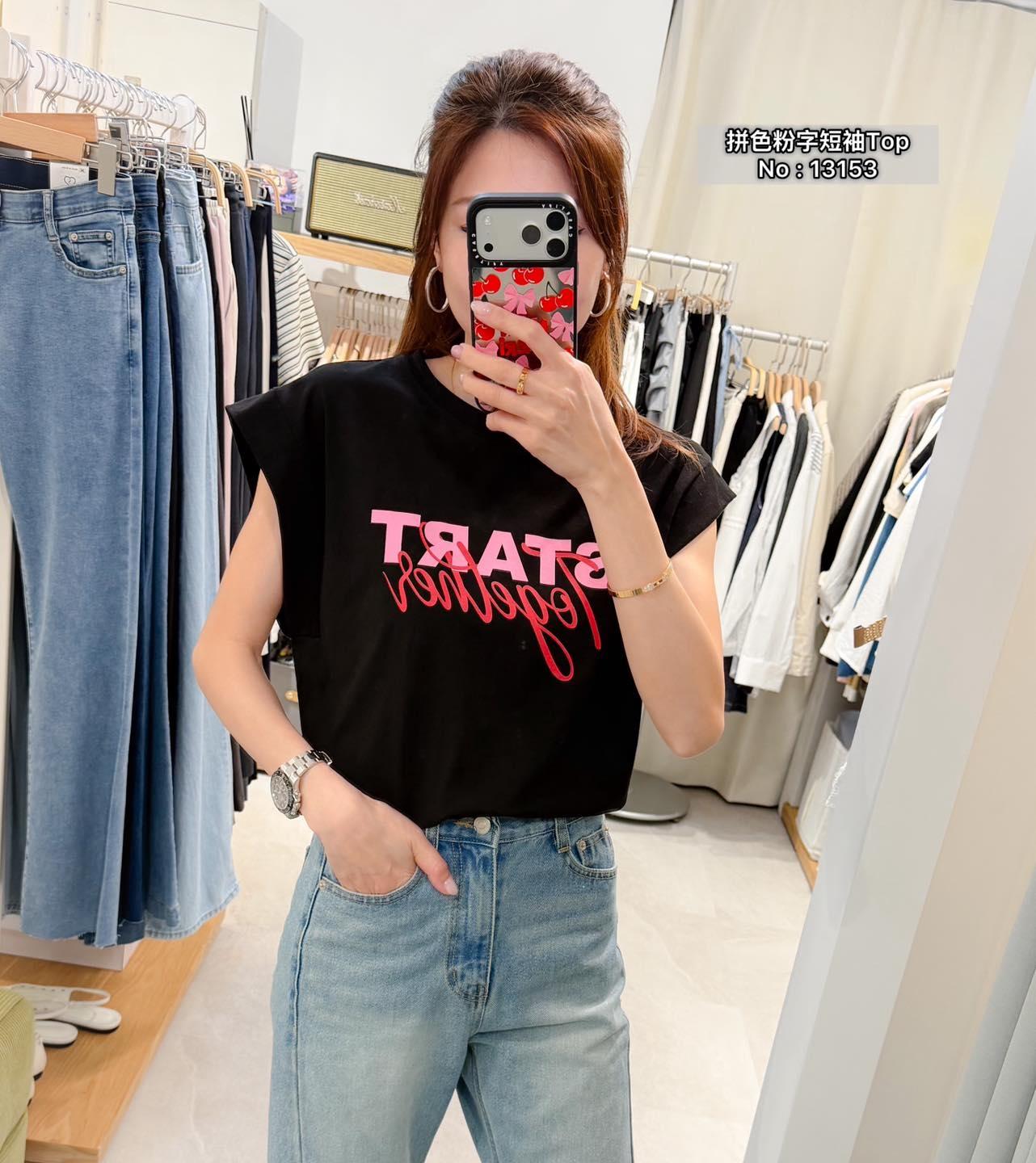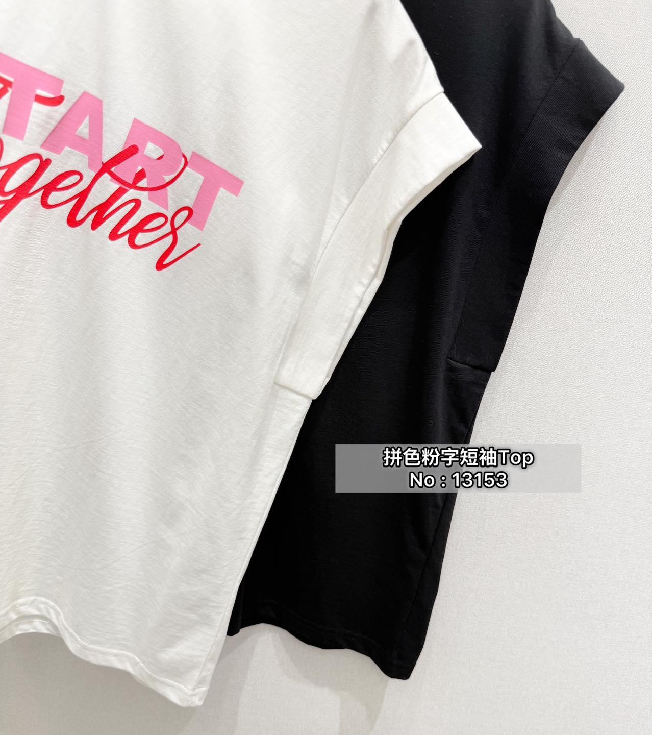 ・❥・拼色粉字短袖Top・❥・ ・❥・彈性棉料 2 色 白色/ 黑色 ✎ No: 13153 ✎ Free Size : Chest 40-46" Length 23"