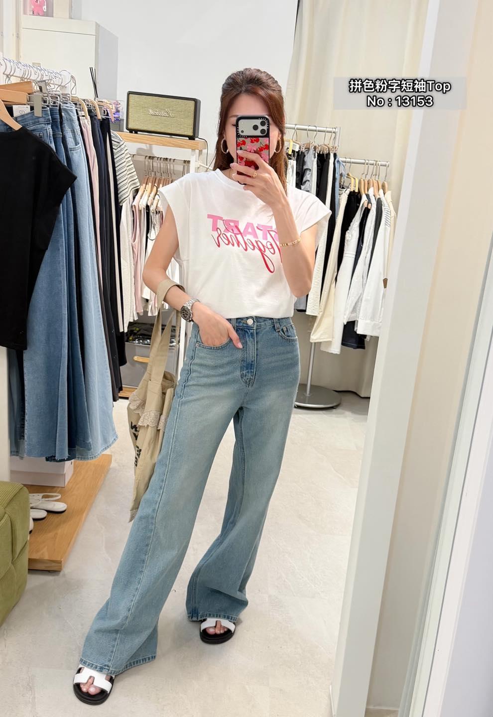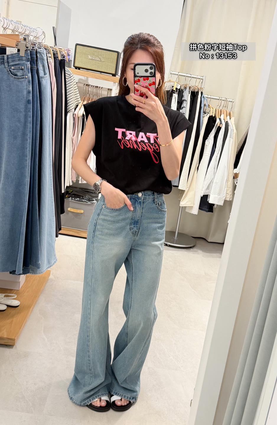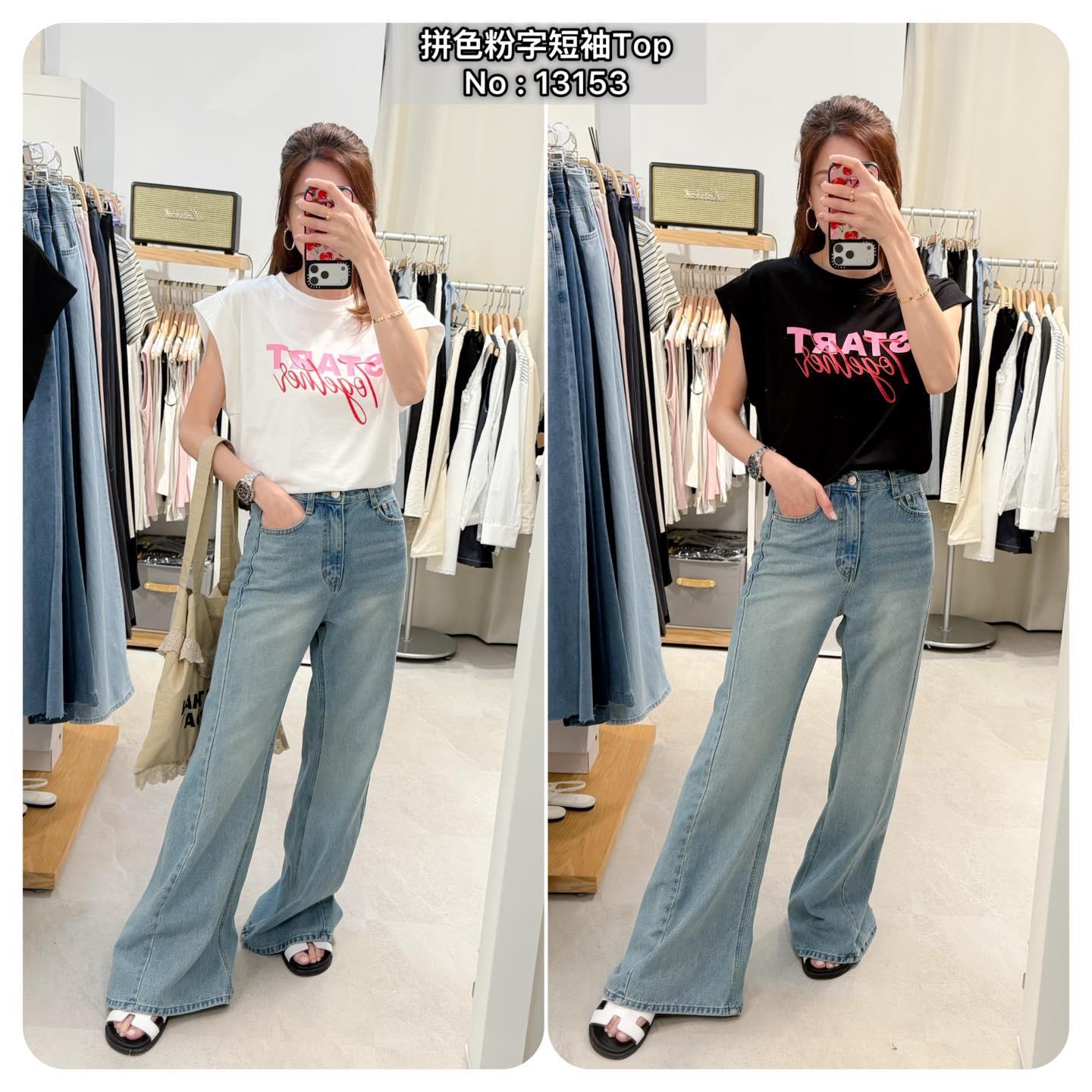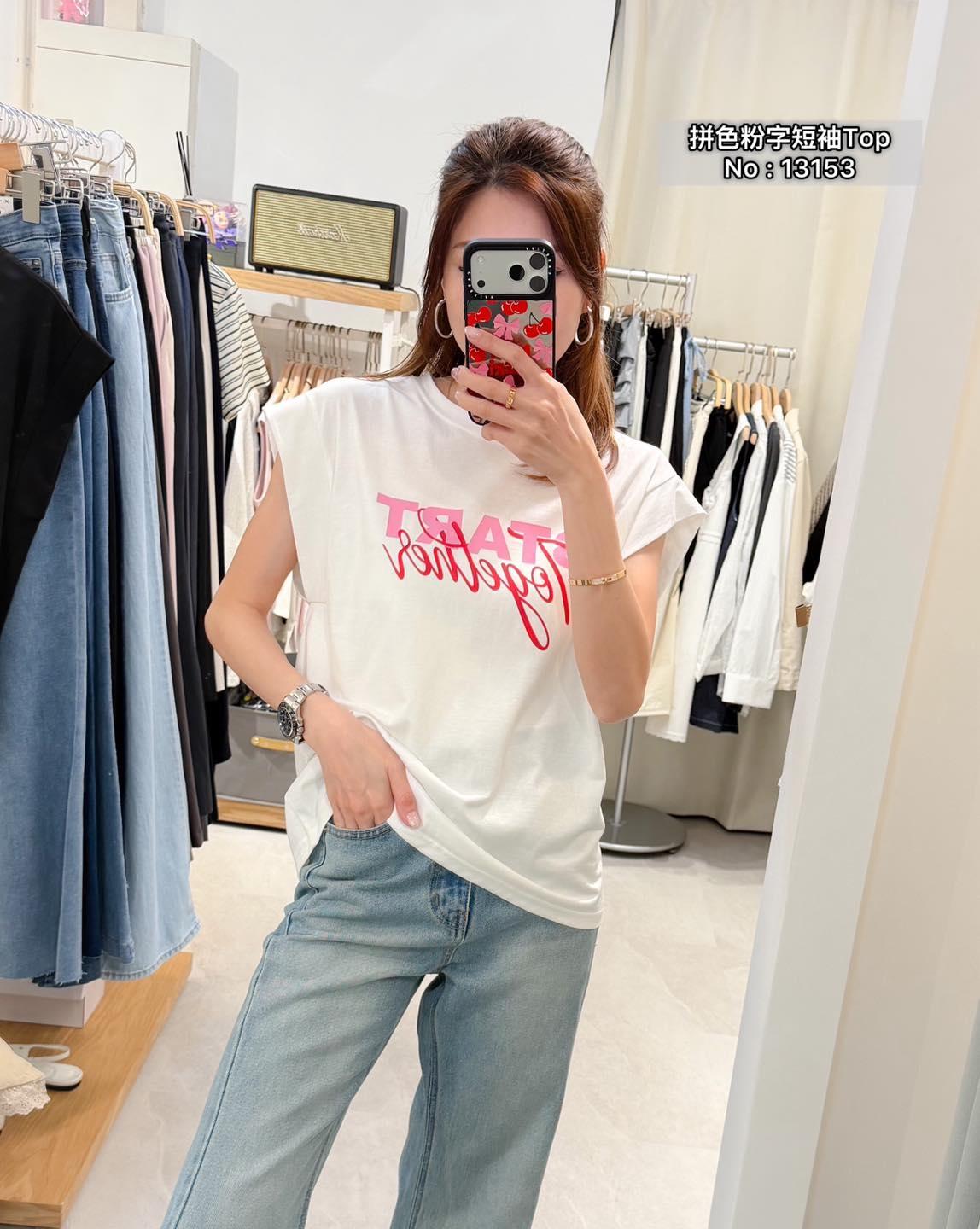 ・❥・拼色粉字短袖Top・❥・ ・❥・彈性棉料 2 色 白色/ 黑色 ✎ No: 13153 ✎ Free Size : Chest 40-46" Length 23"