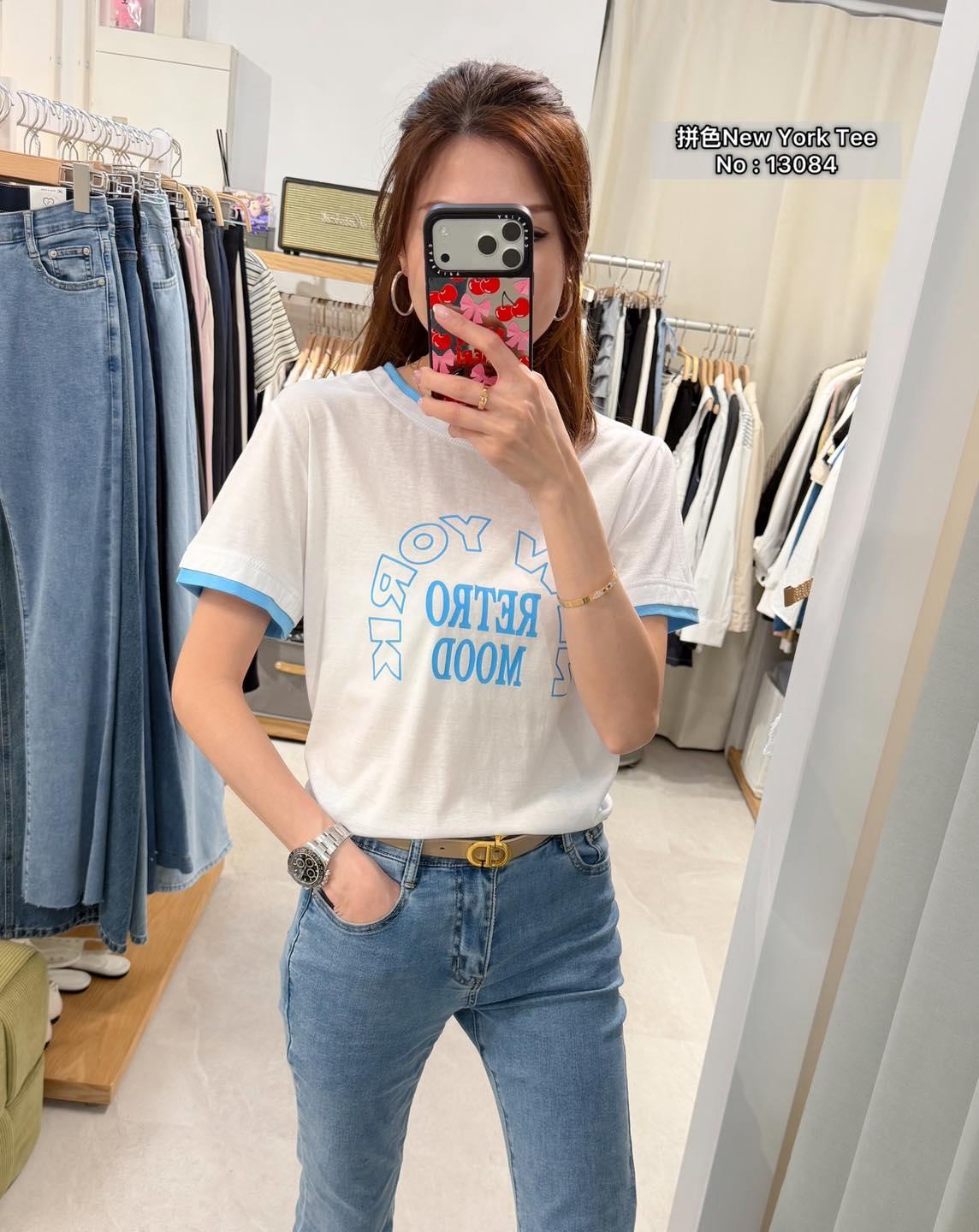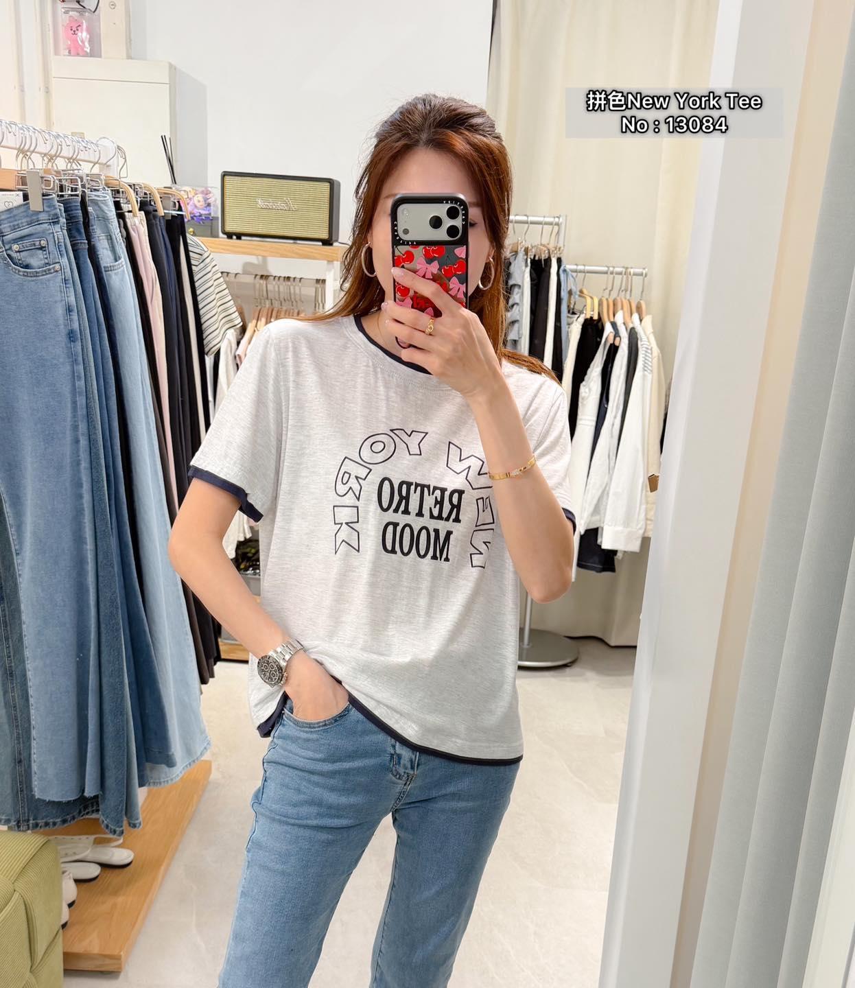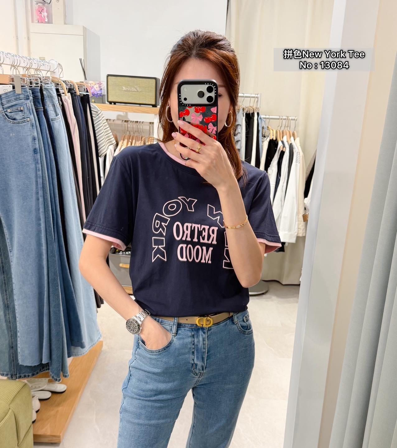 ・❥・拼色New York Tee・❥・ ・❥・彈性棉料 4 色 白色 / 深灰 / 藍色 / 淺花灰 ✎ No: 13084 ✎ Free Size : Chest 40-50 Length 21.5"