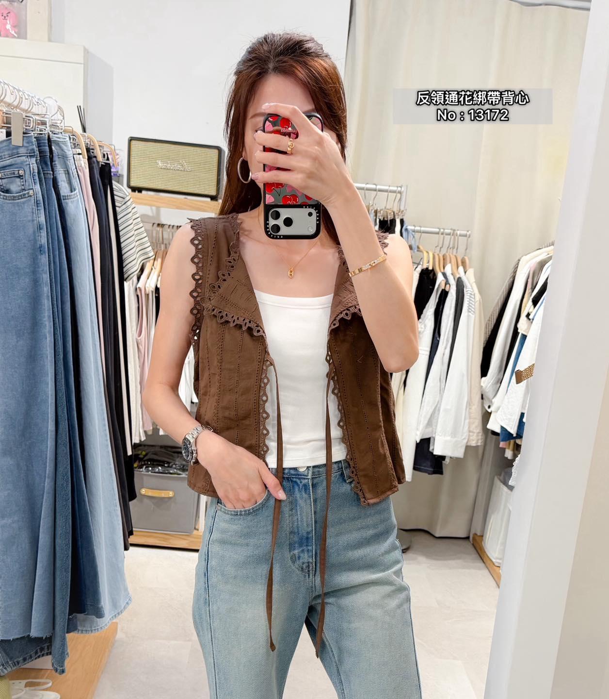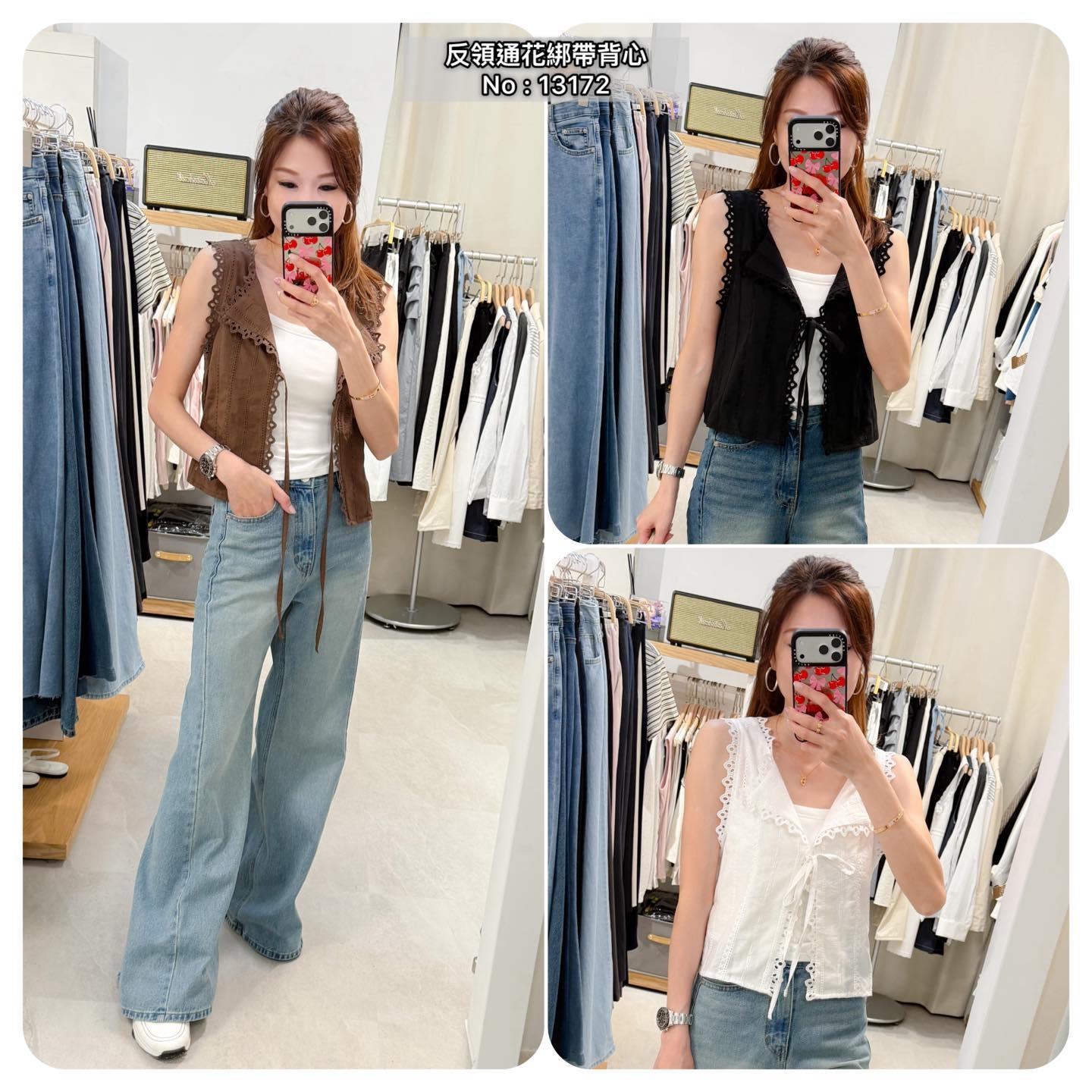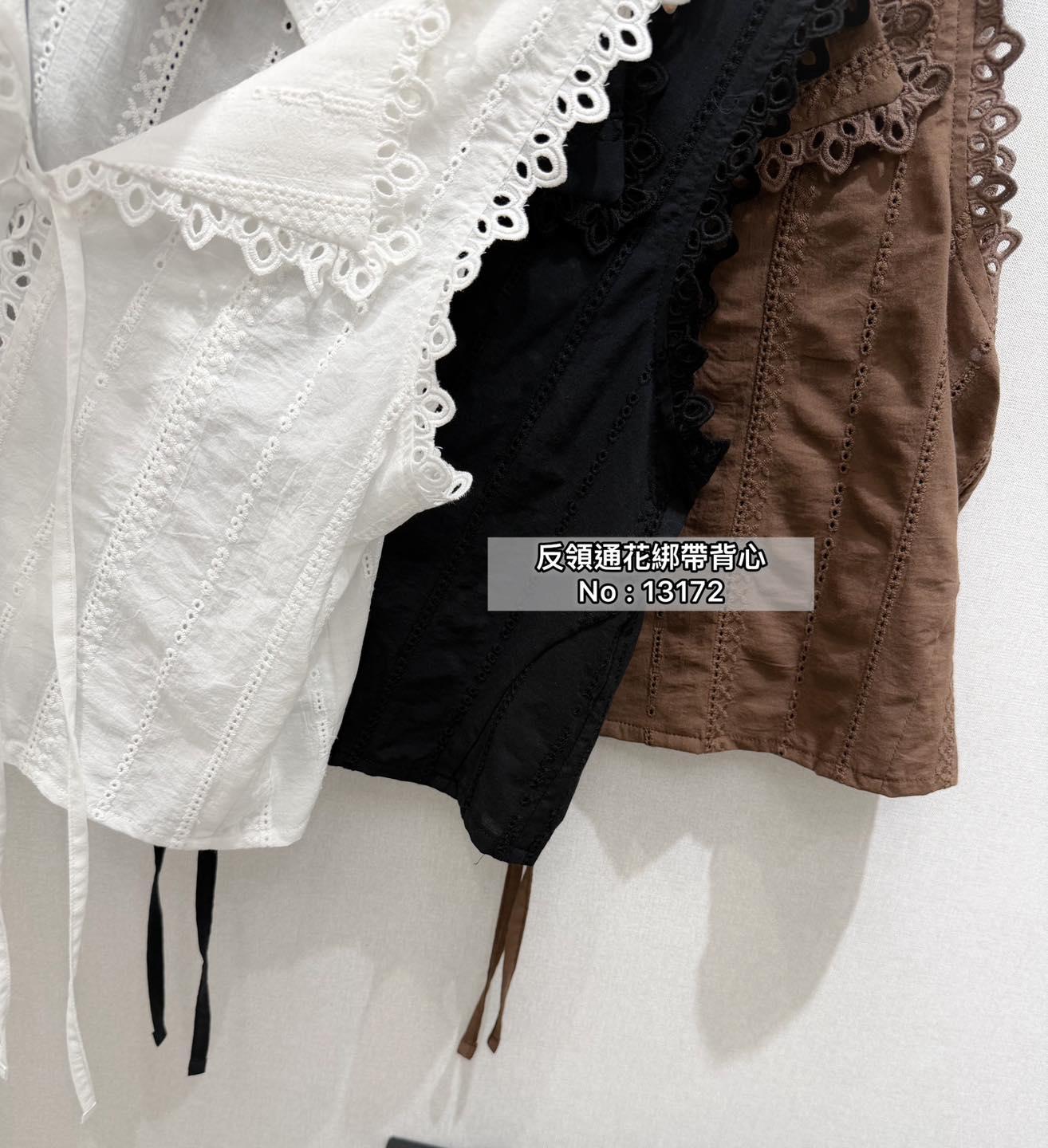 ・❥・反領通花綁帶背心・❥・ ・❥・可外套或Top 兩著款 ・❥・薄身通花料 3 色 白色/ 啡色 / 黑色 ✎ No: 13172 ✎ Free Size : Chest 36 Length 17"