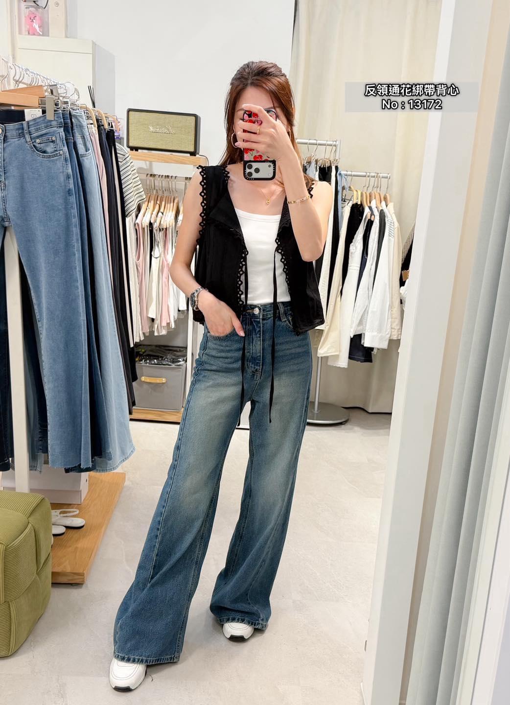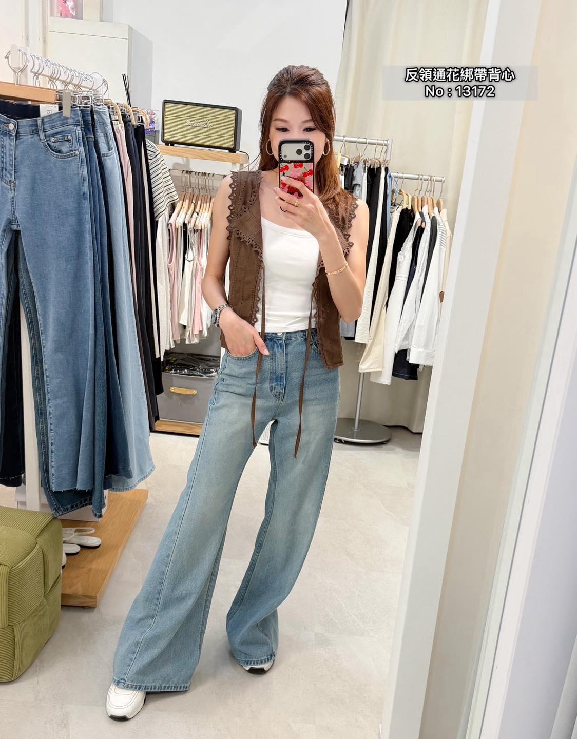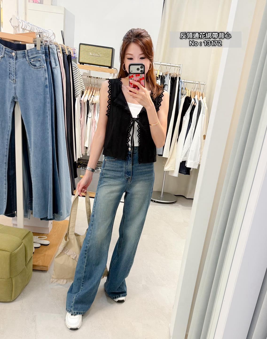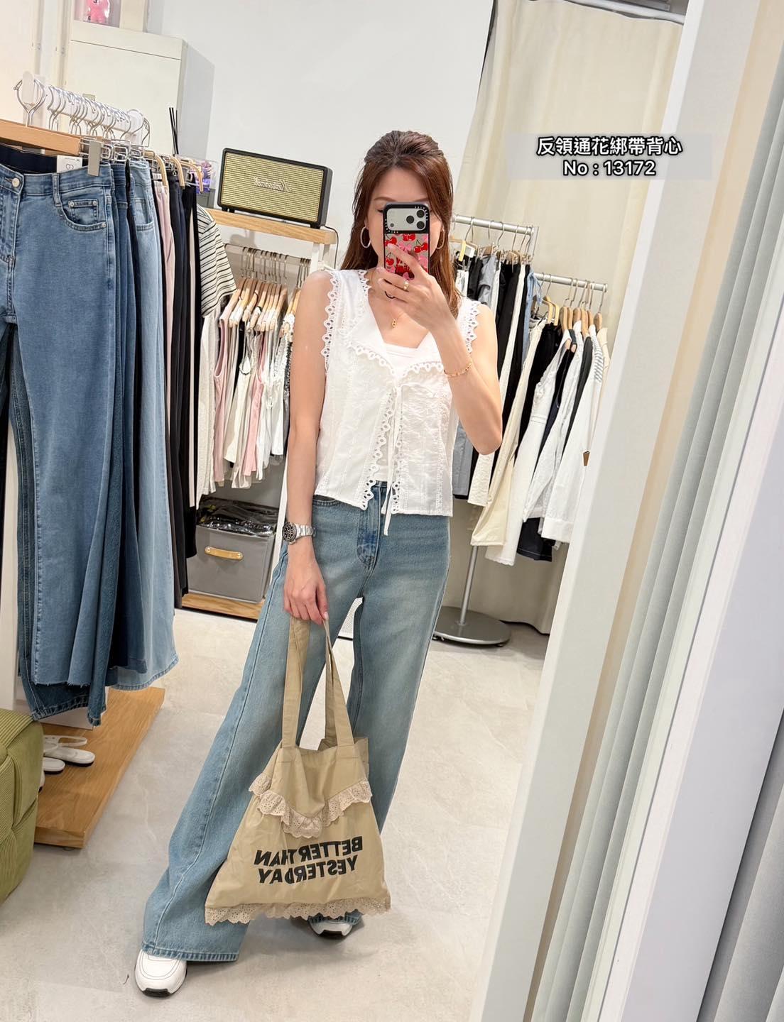 ・❥・反領通花綁帶背心・❥・ ・❥・可外套或Top 兩著款 ・❥・薄身通花料 3 色 白色/ 啡色 / 黑色 ✎ No: 13172 ✎ Free Size : Chest 36 Length 17"