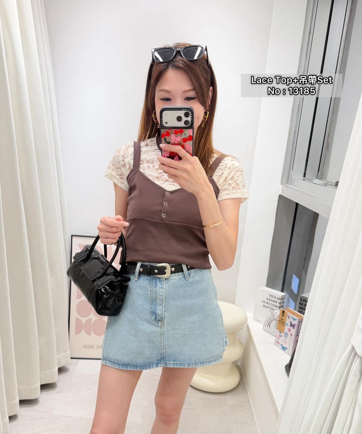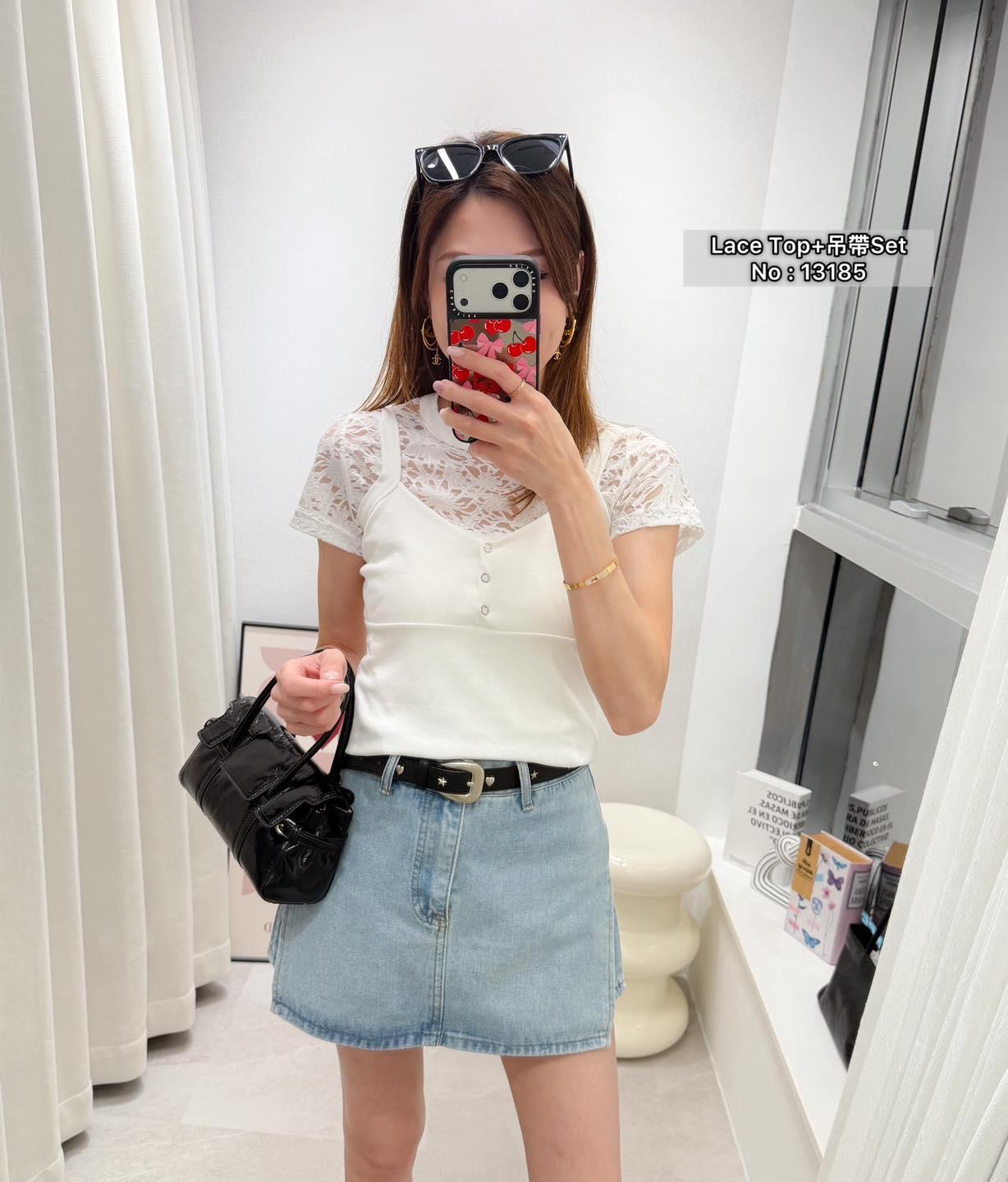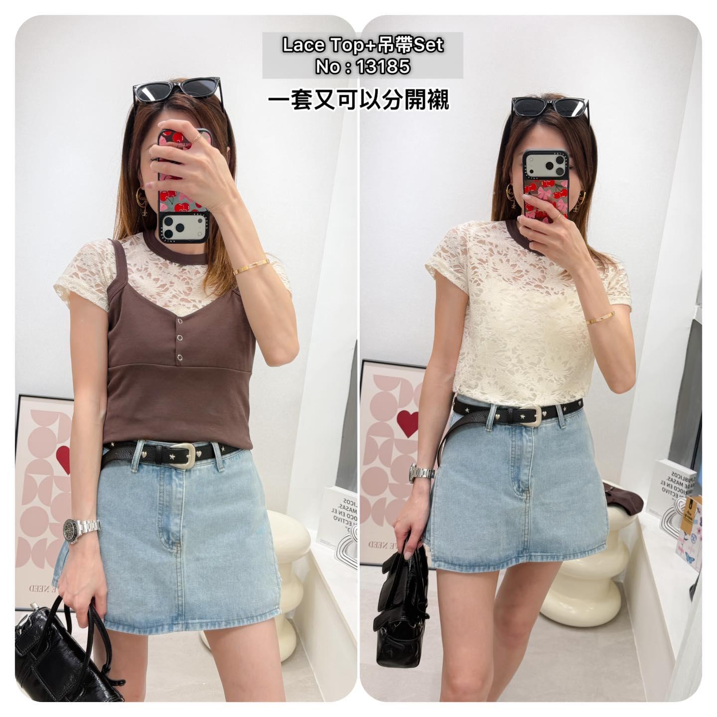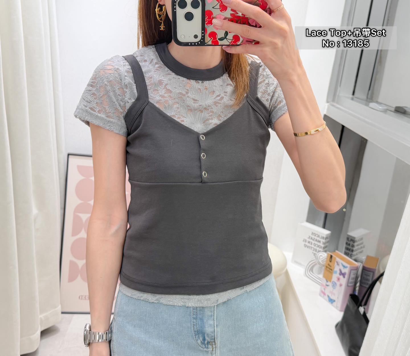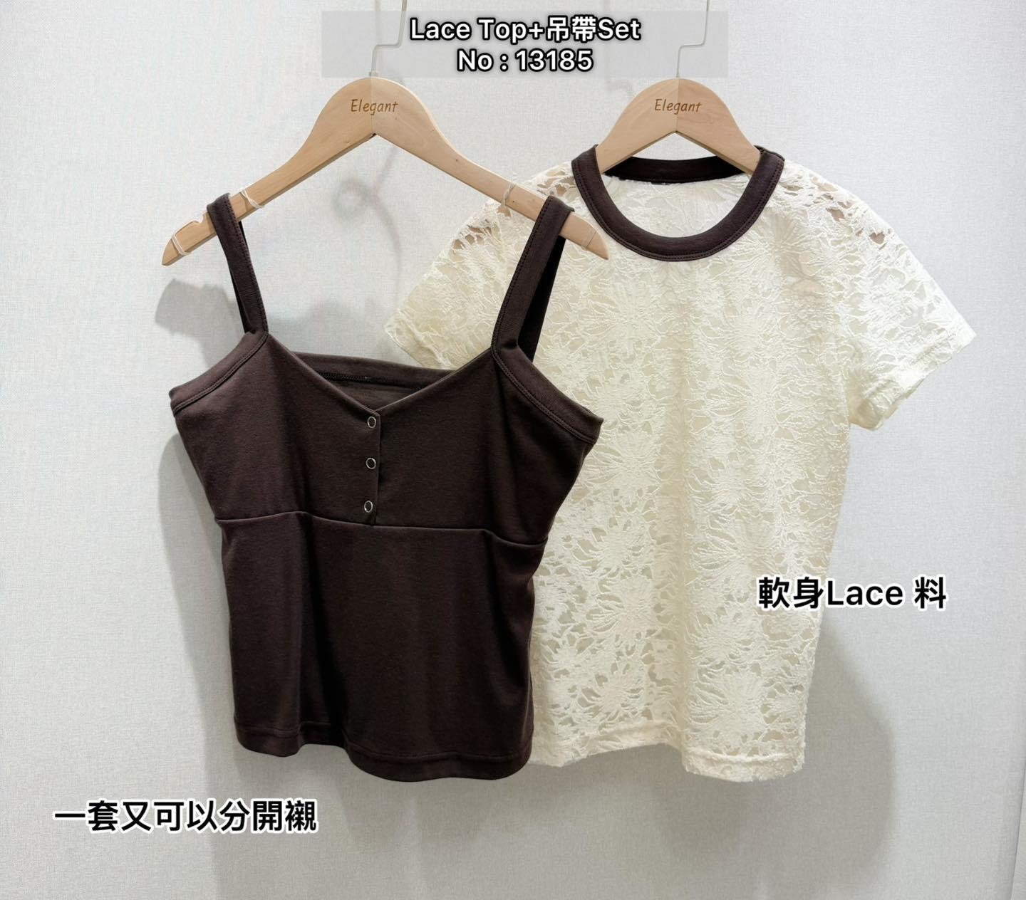 ・❥・軟身Lace 料拼彈性棉料吊帶Top