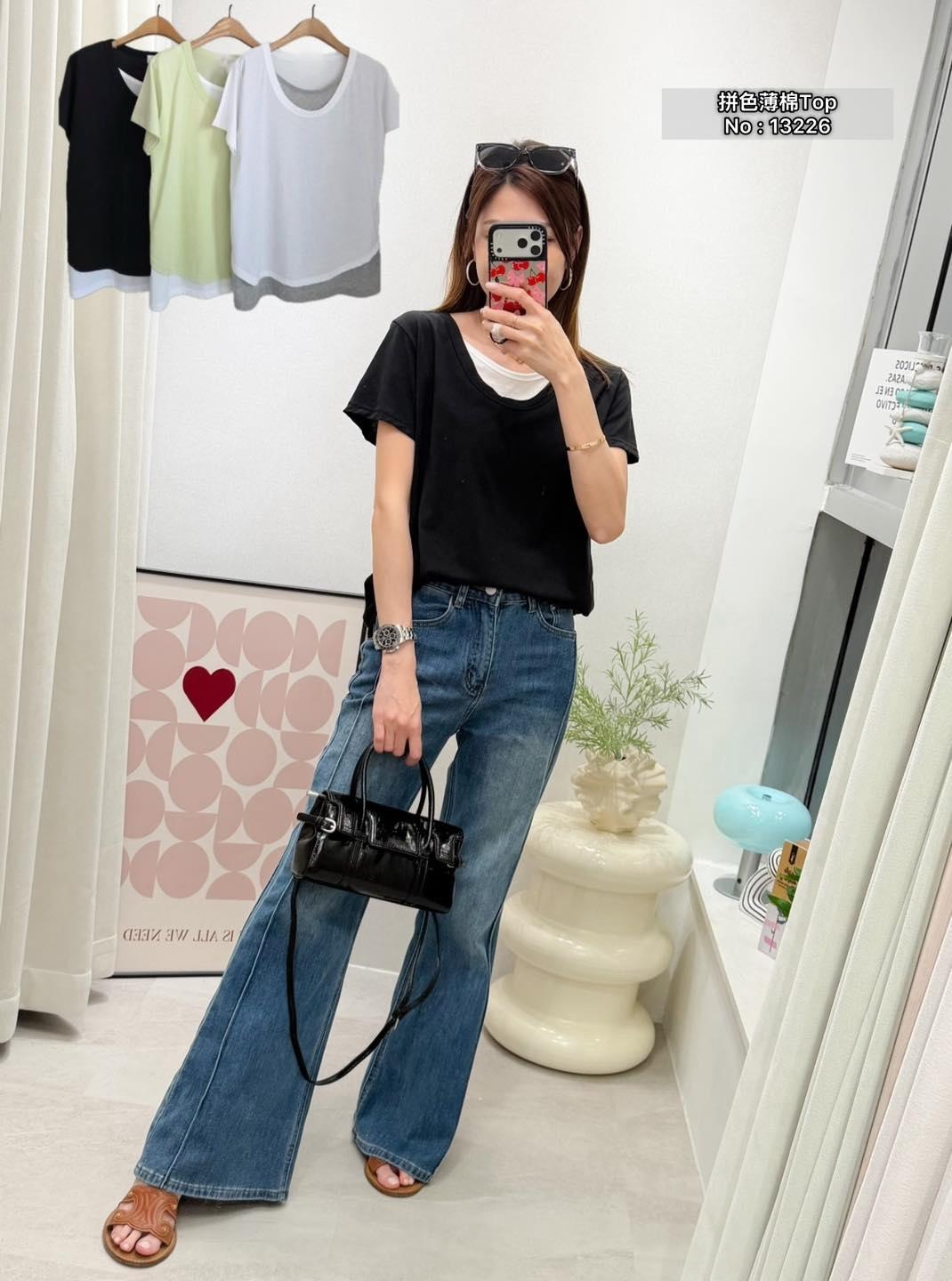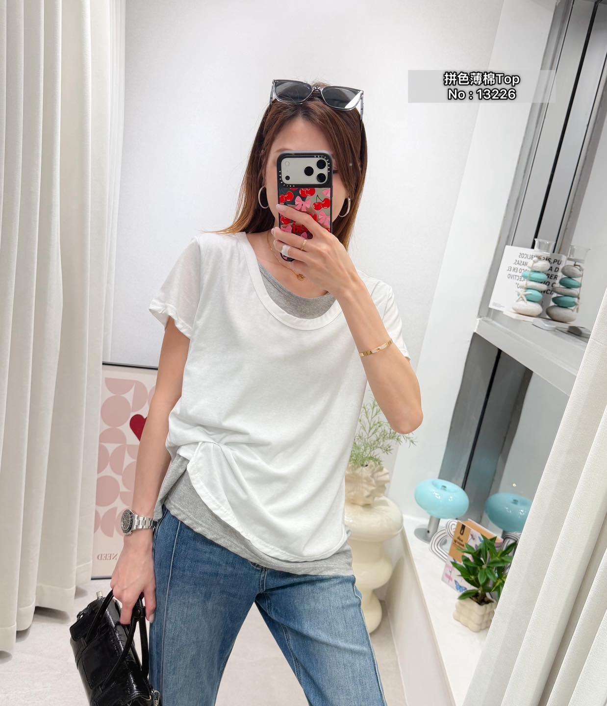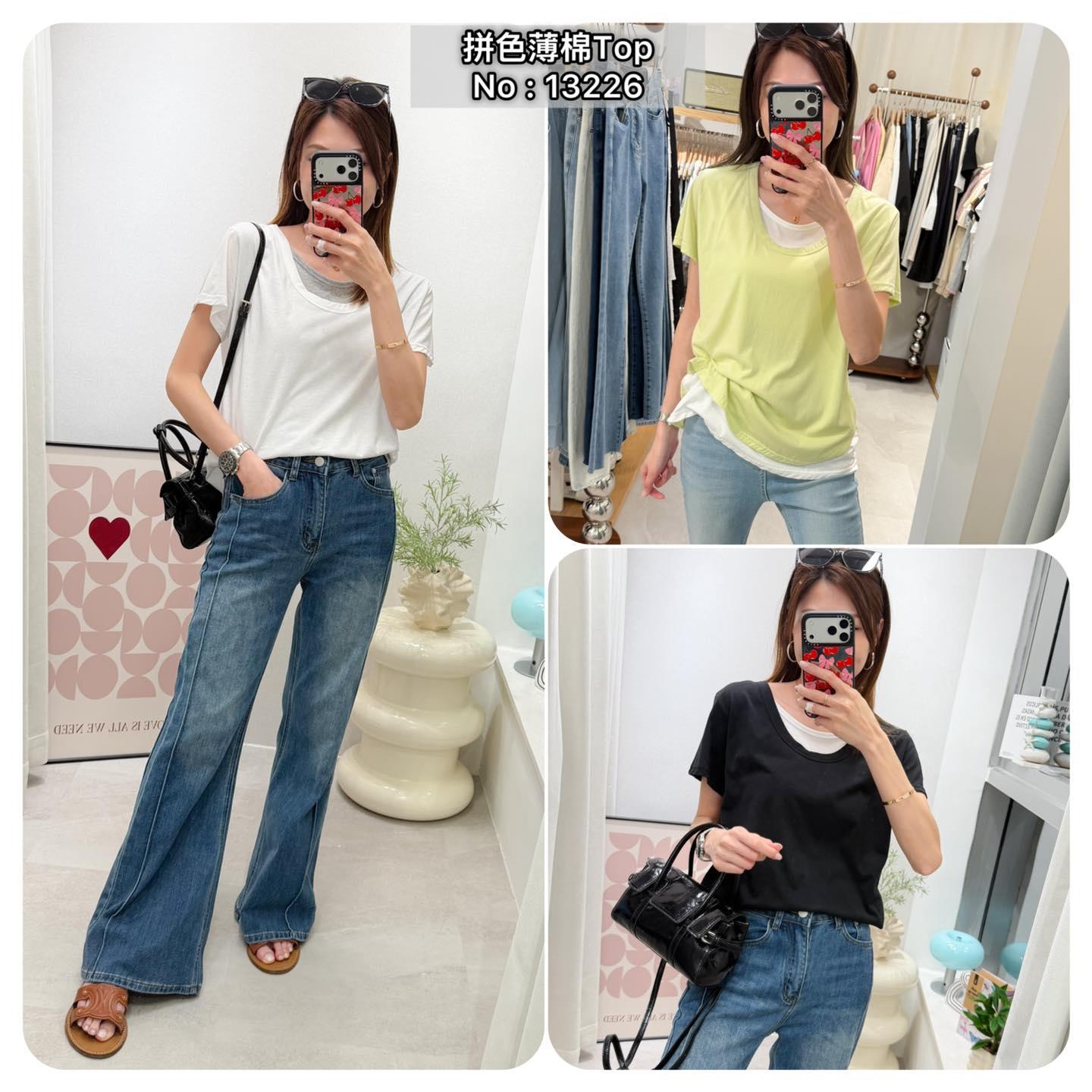 ・❥・拼色薄棉Top・❥・ ・❥・假兩件拼色款 ・❥・彈性薄棉料 2 色 白色 / 黃色 / 黑色 ✎ No: 13226 ✎ Free Size : Chest 38-48 Length 24"