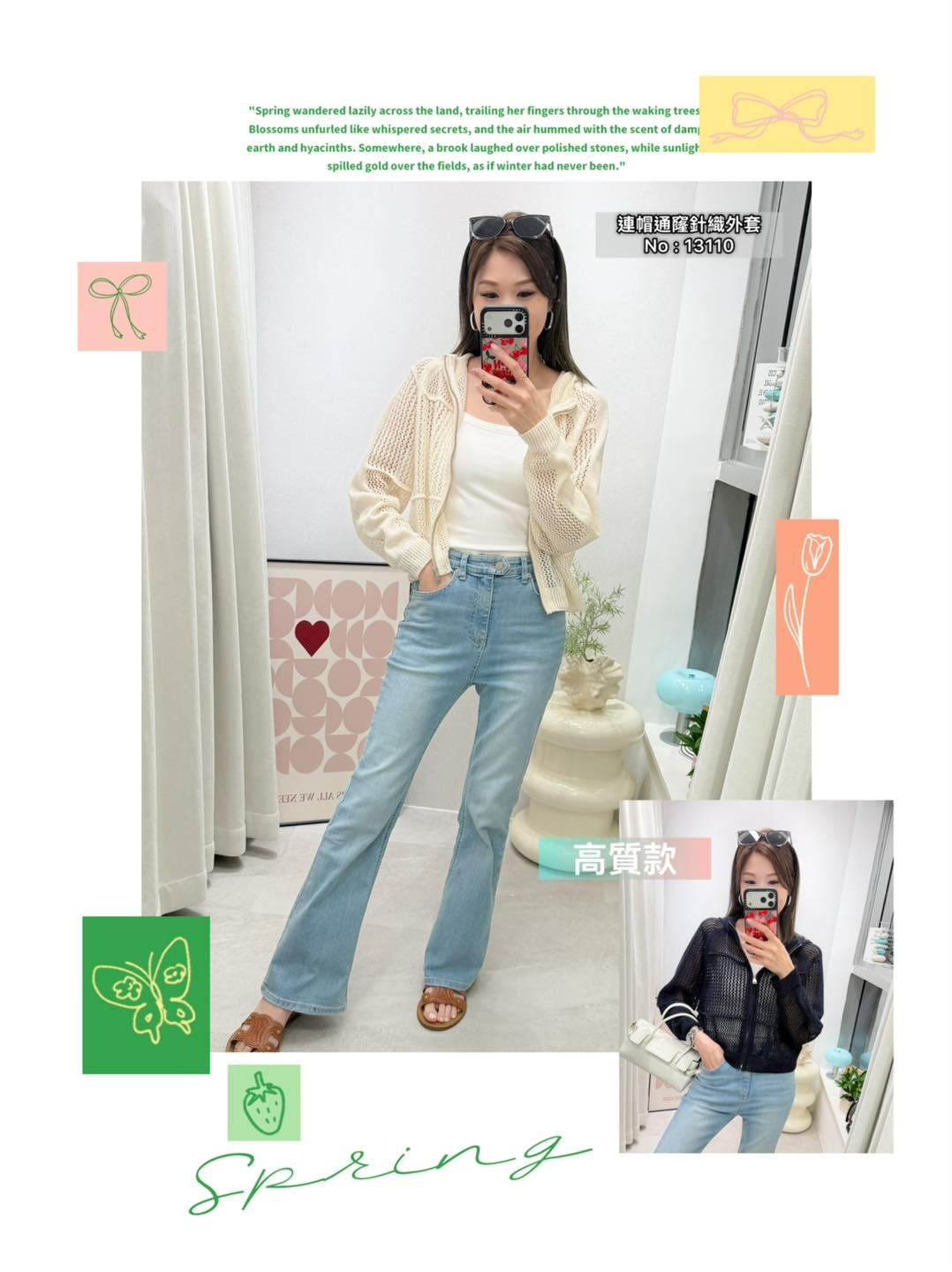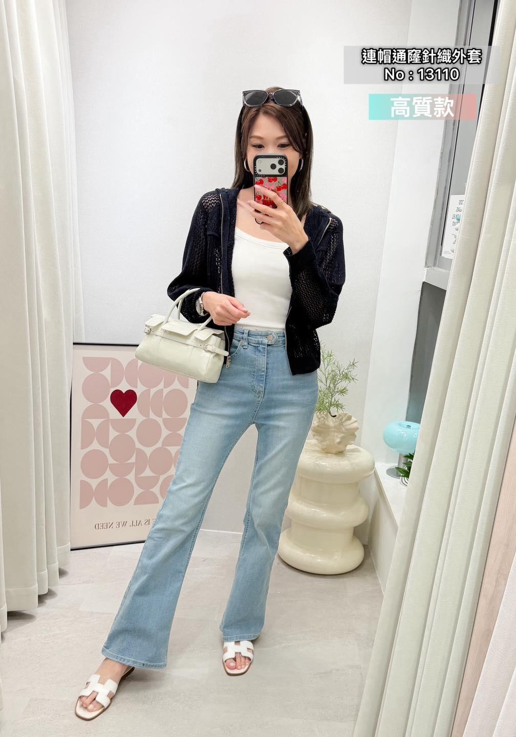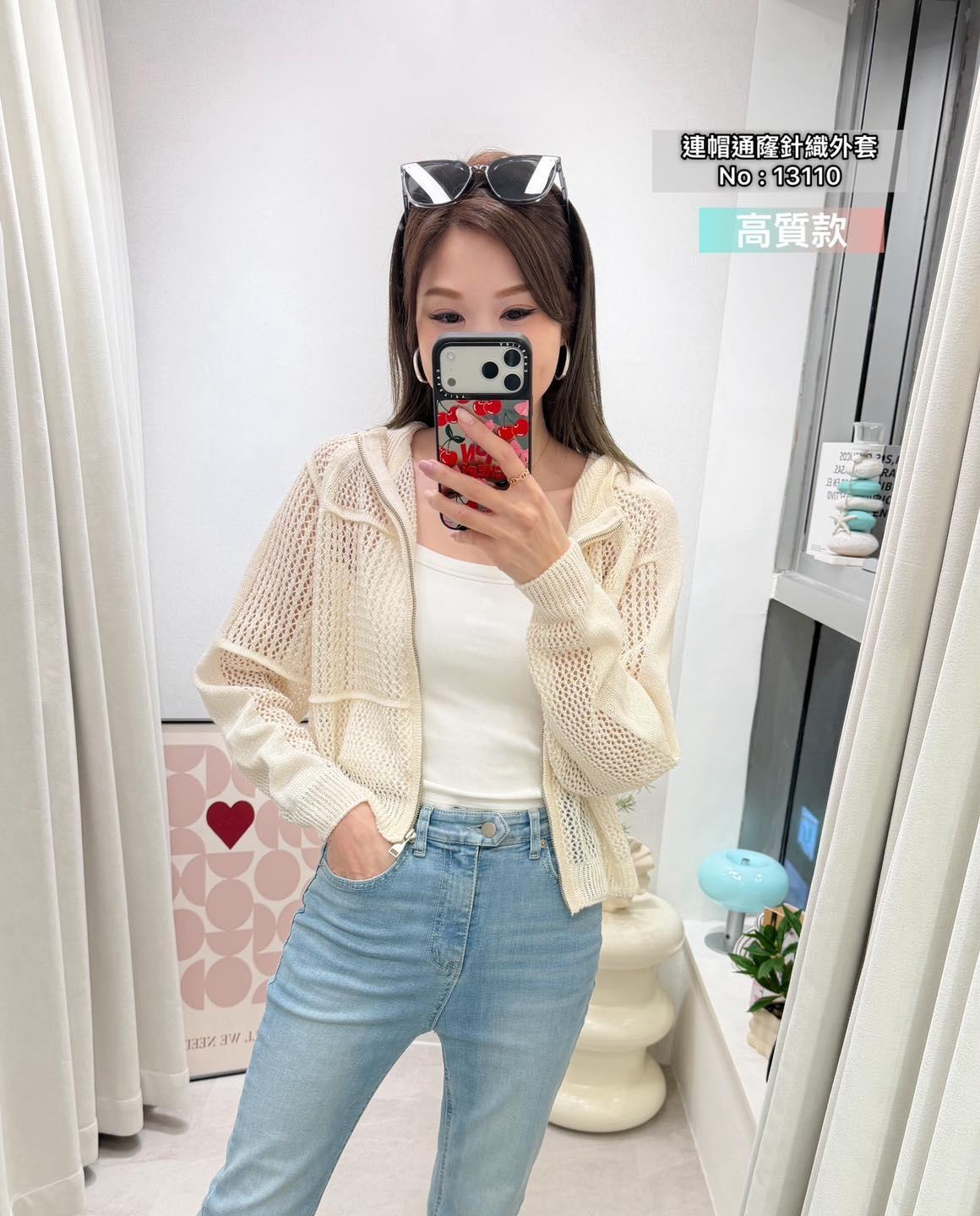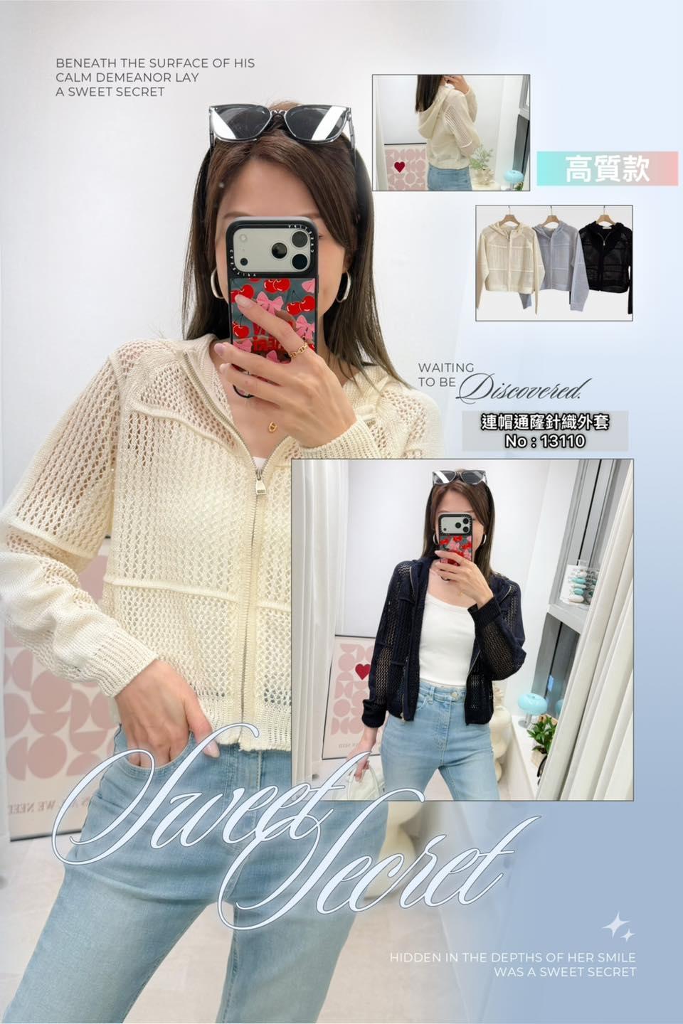 ・❥・連帽通窿針織外套・❥・ ・❥・韓國大牌子高質款 ・❥・彈性軟針織料 2 色 米白 / 深藍 ✎ No: 13110 ✎ Free Size : Chest 42-52 Length 19.5"