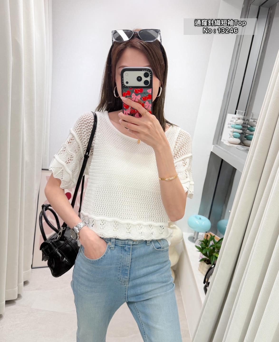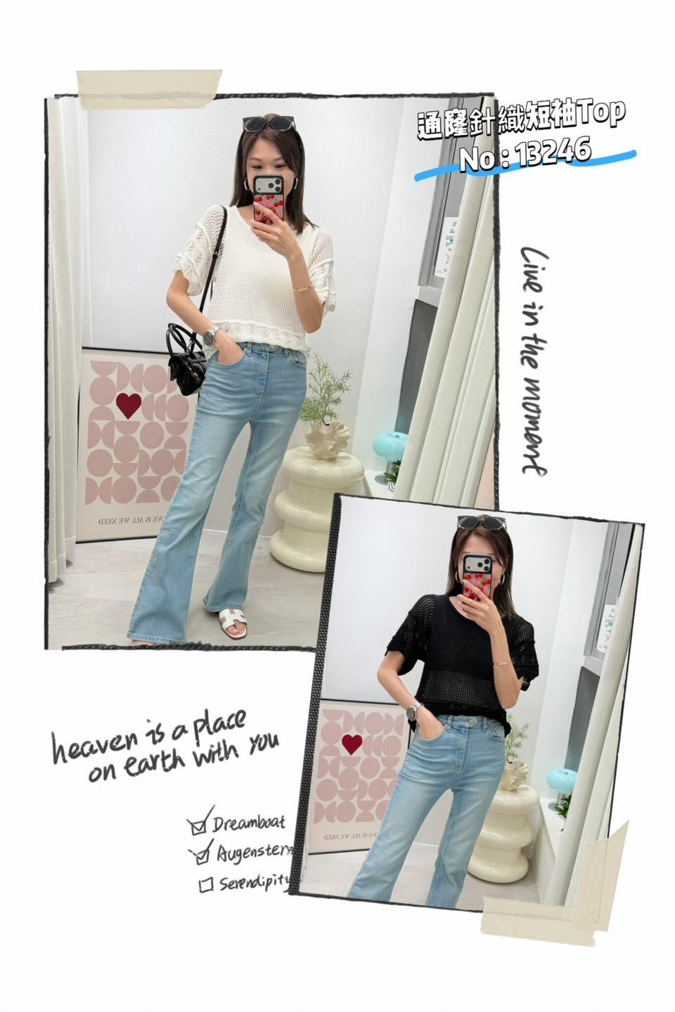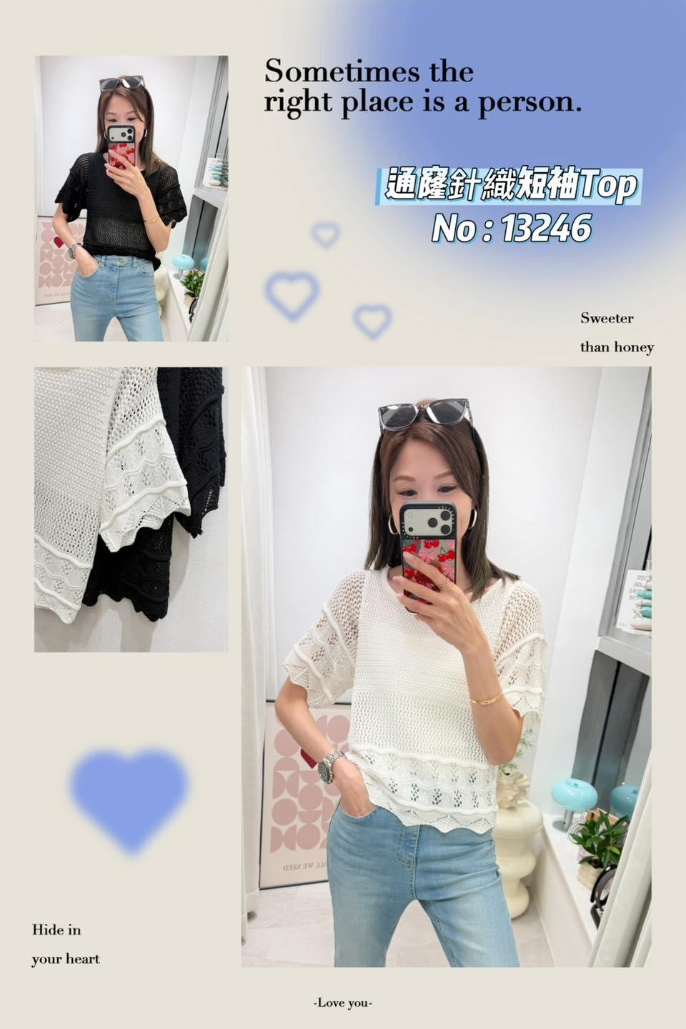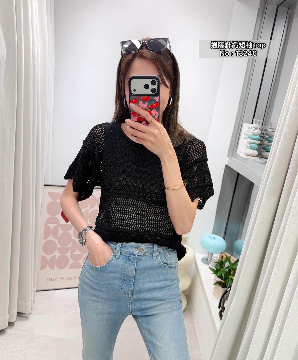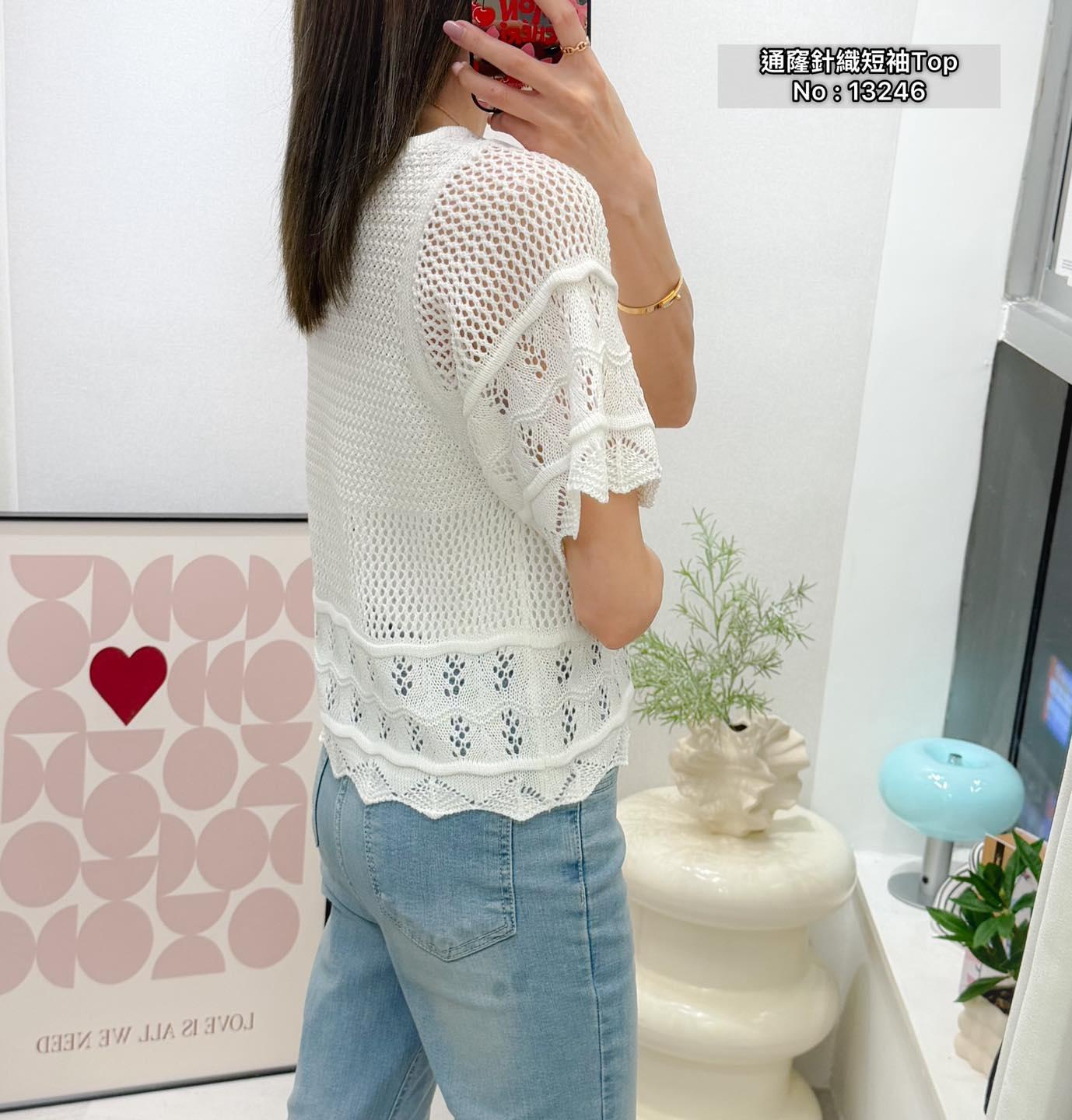 ・❥・通窿針織短袖Top・❥・ ・❥・抵著款 ・❥・彈性軟針織線料 2 色 白色 / 黑色 ✎ No: 13246 ✎ Free Size : Chest 34-44" Length 20"