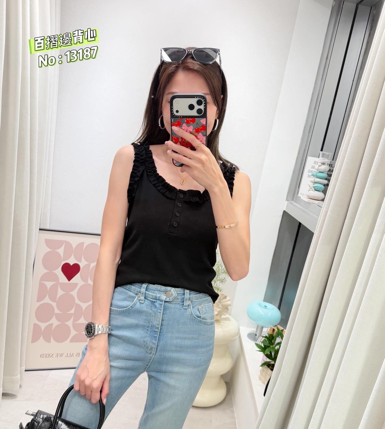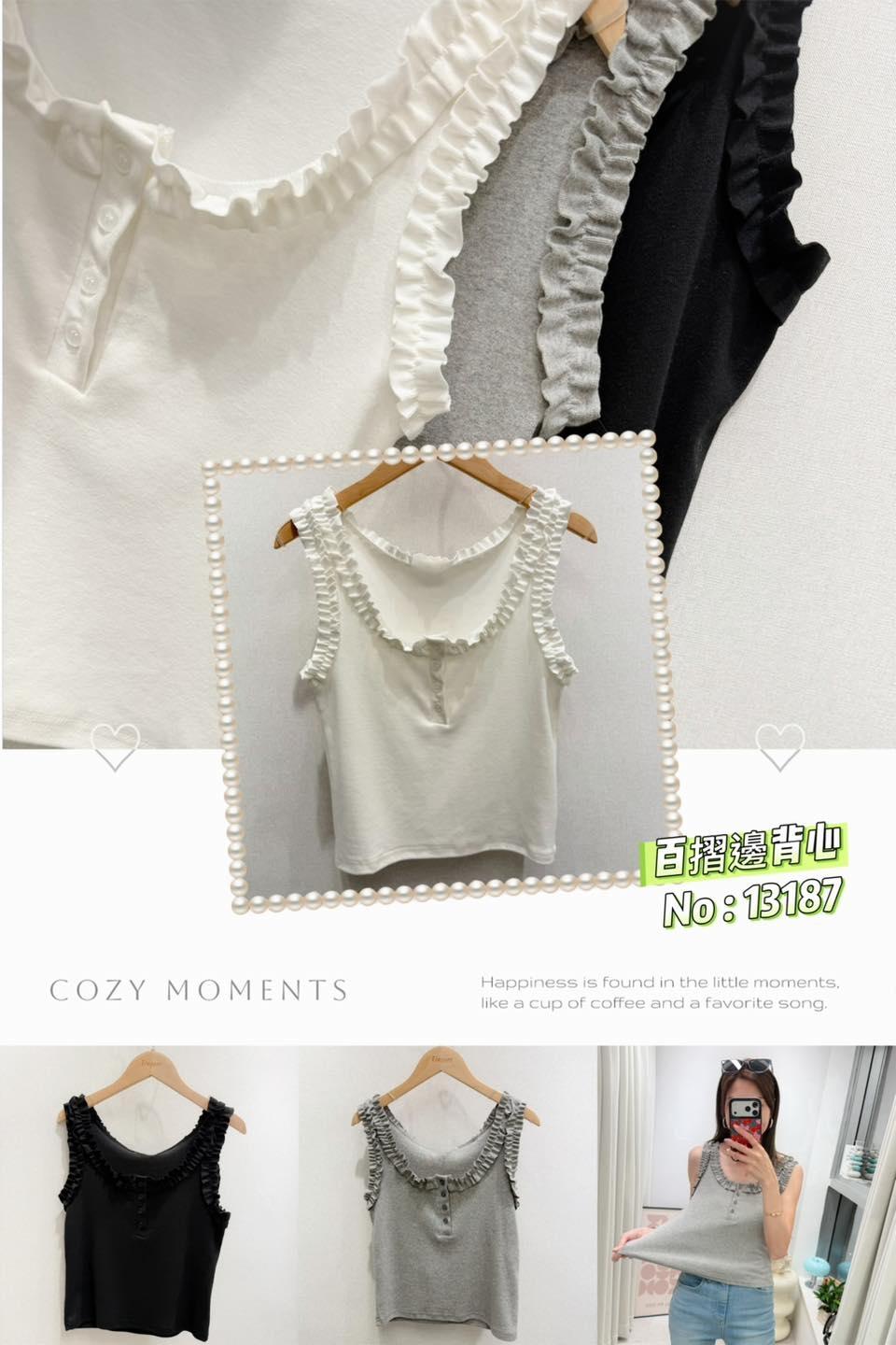 ・❥・百摺邊背心・❥・ ・❥・單著都靚呀 ・❥・彈性棉料 3 色 白色 / 灰色/ 黑色 ✎ No: 13187 ✎ Free Size : Chest 32-42" Length 18"