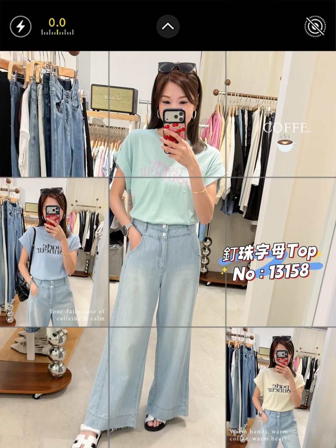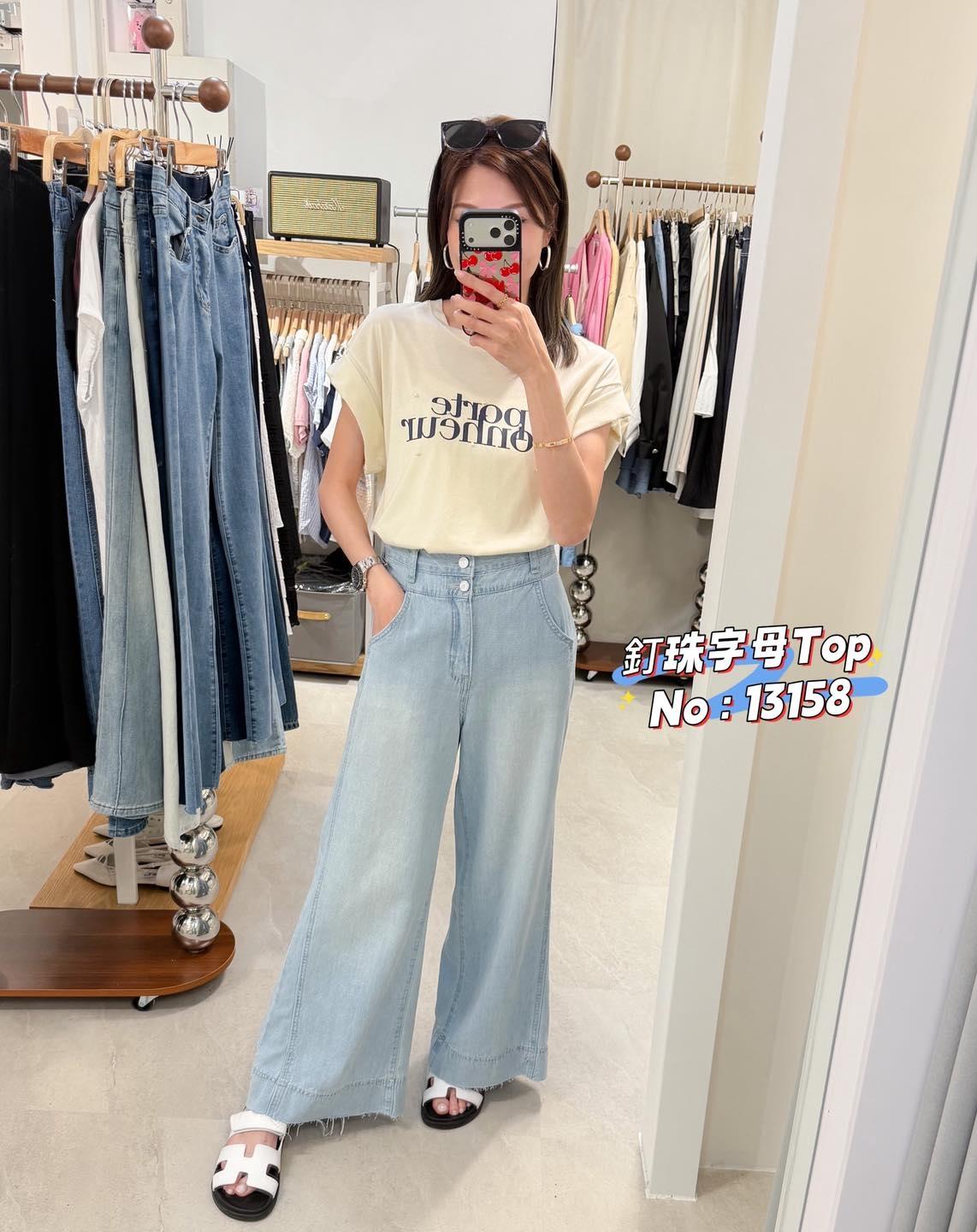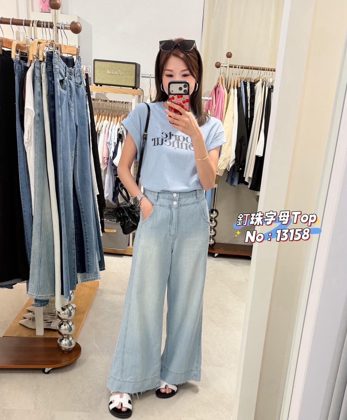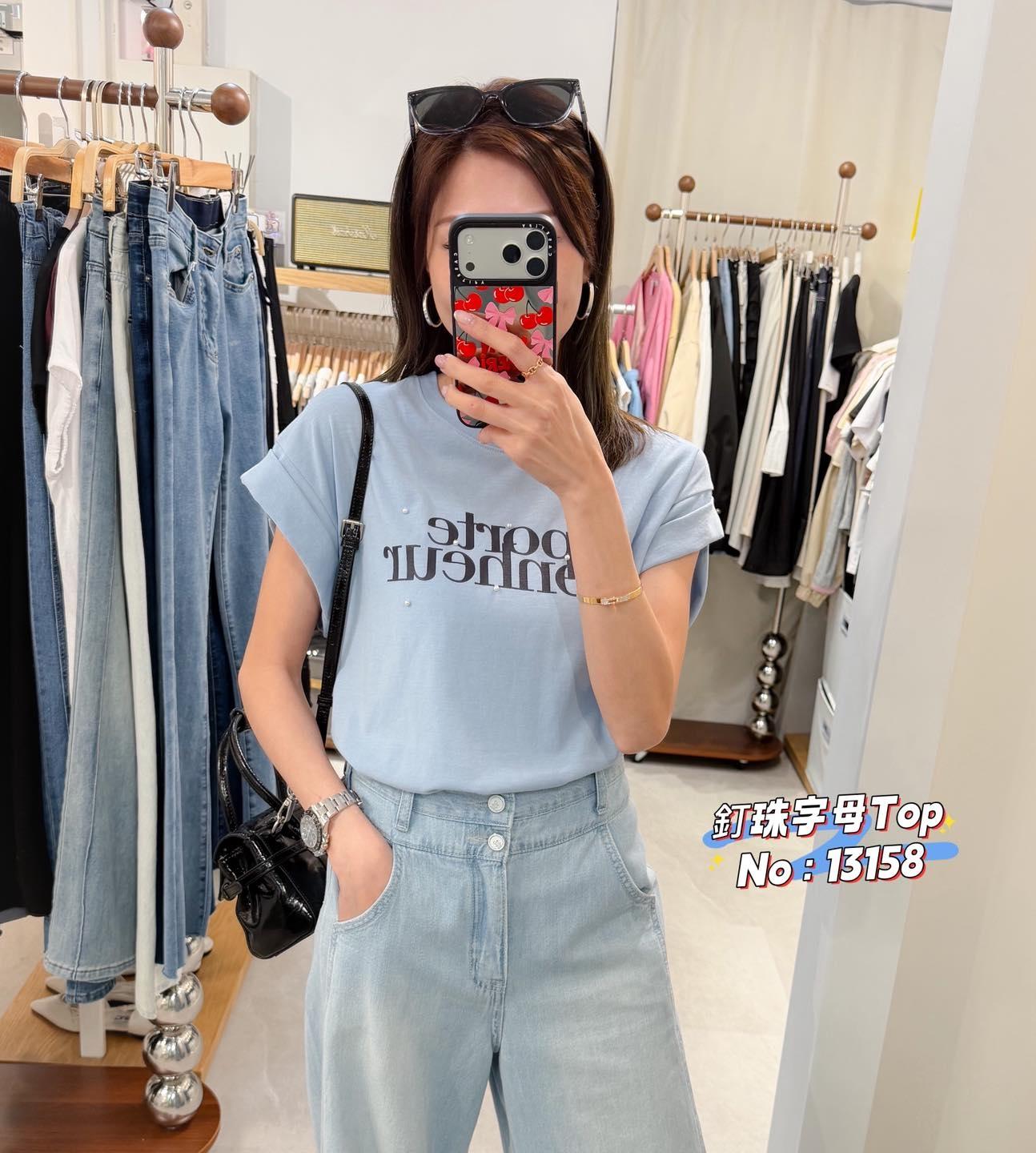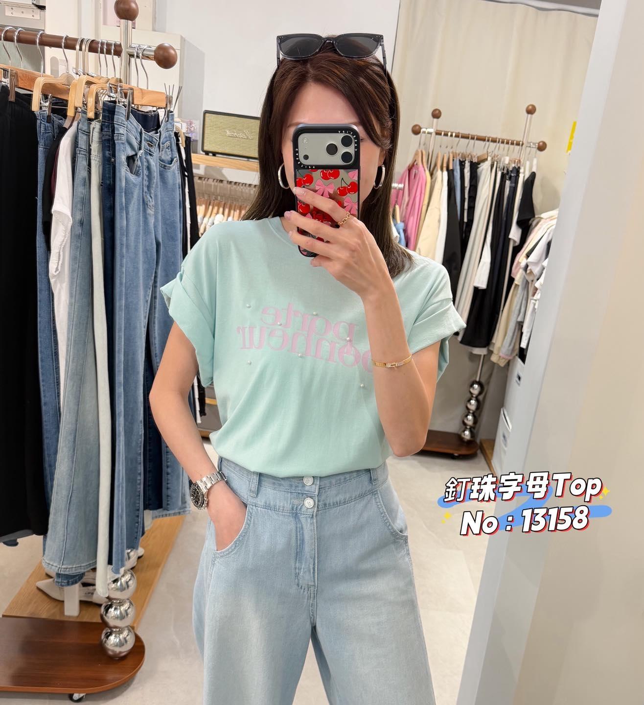 ・❥・釘珠字母 Top・❥・ ・❥・3 個色都靚呀 ・❥・彈性薄棉料 3 色 米色/ 湖水綠 / 藍色 ✎ No: 13158 ✎ Free Size : Chest 40-50 Length 25"