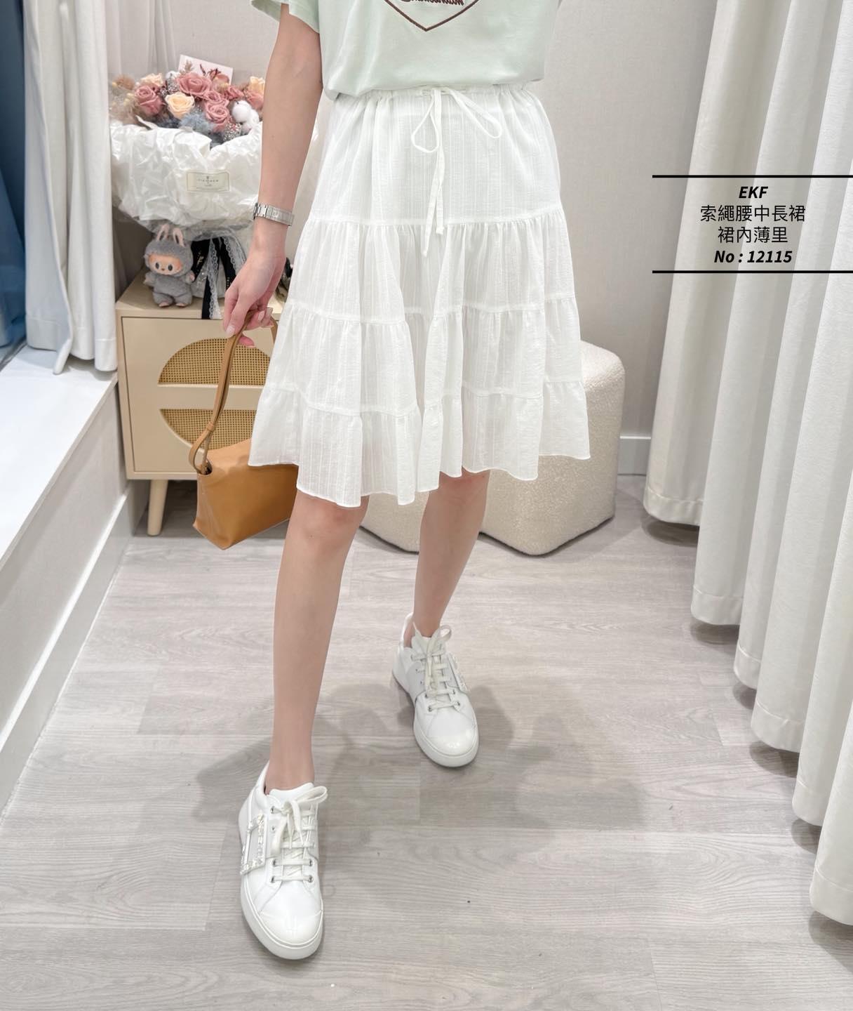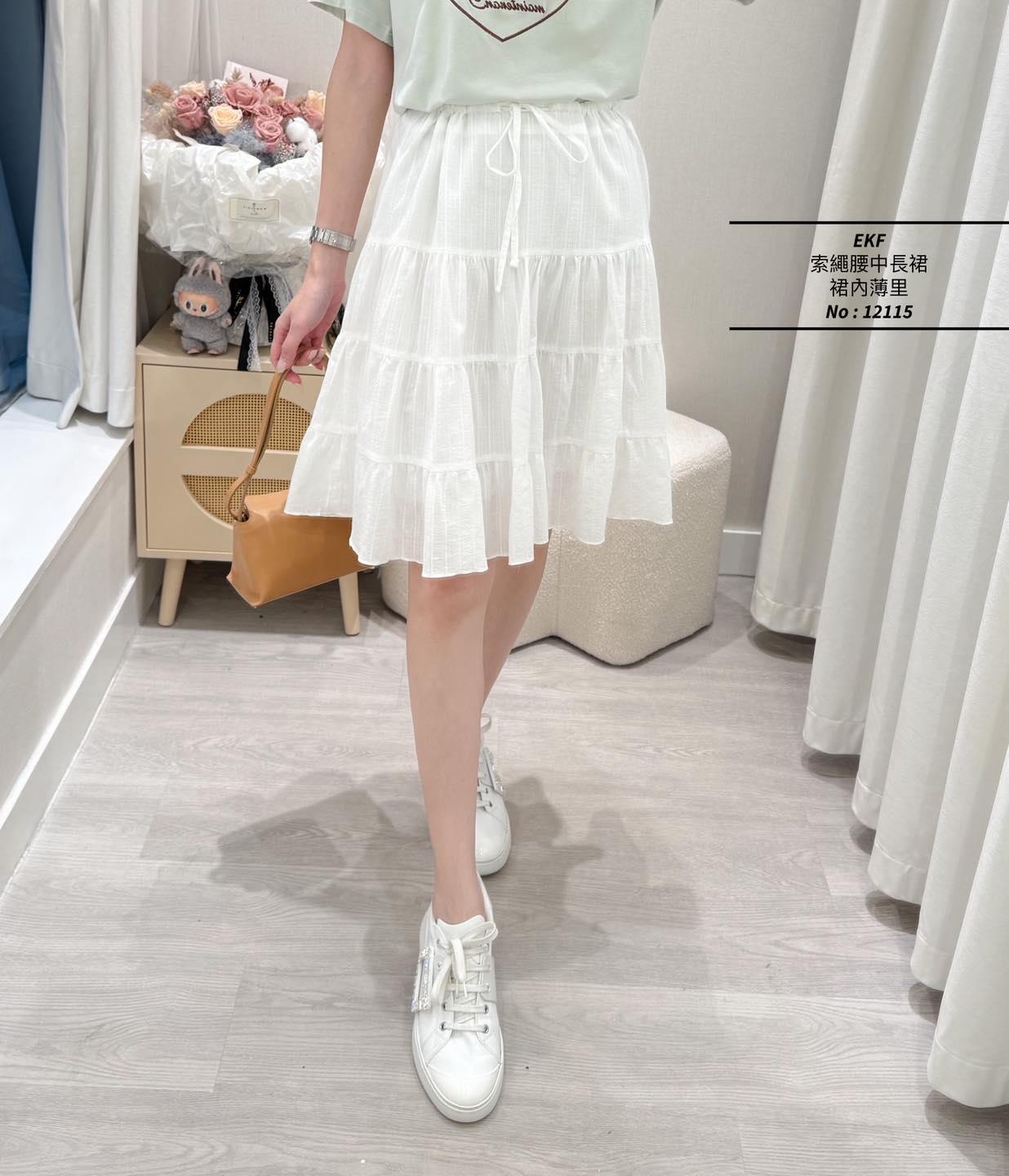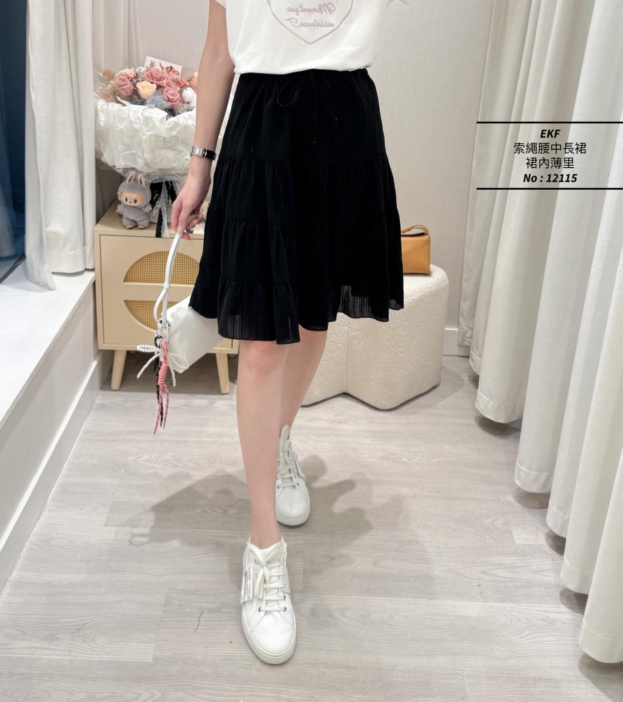 ・❥・索繩腰中長裙・❥・ ・❥・裙內薄里 ・❥・薄身棉麻料 '*•.¸♡ 白色 / 黑色 / 2 Colour ♡¸.•*' ✎ No: 12115 ✎ Size : Chest 34"(索繩腰位自行較鬆緊好方便) Length 21"