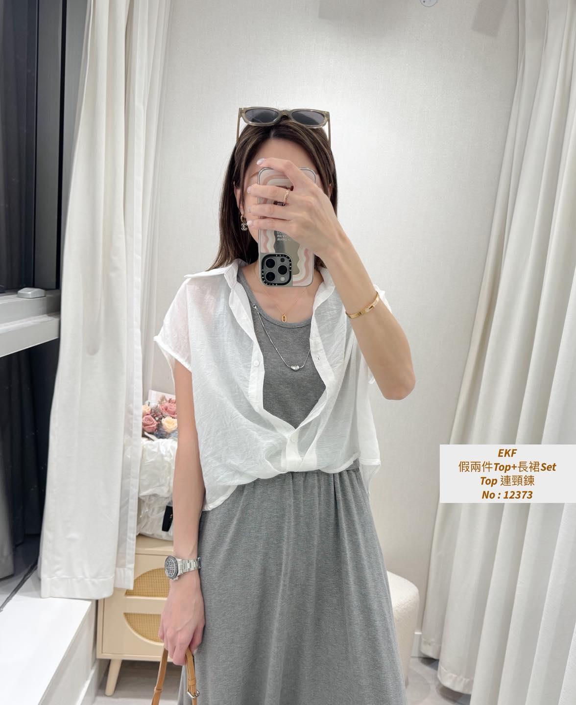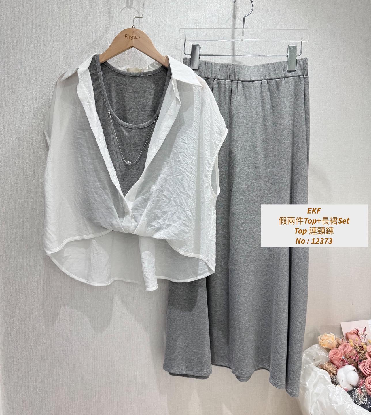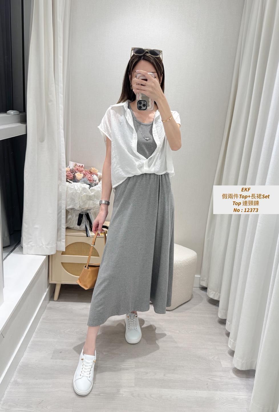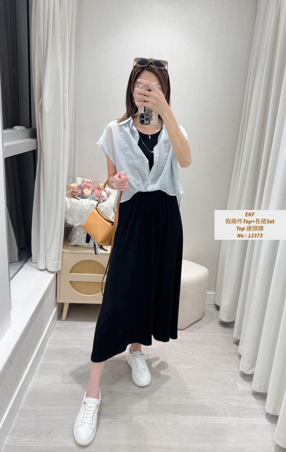 ・❥・假兩件Top+長裙Set ・❥・ ・❥・Top 連頸鍊,可拆 ・❥・背心+雪紡Top假兩件款不可分開 ・❥・橡筋腰棉料長裙 '*•.¸♡ 白拼灰色 / 藍拼黑色 / 2 Colour ♡¸.•*' ✎ No: 12373 ✎ Size : 背心 : Chest 36-42 Length 15.5" Top : 前長 18 後長 22" Dress : Waist 24-49 Hip 46-58 Length 32"