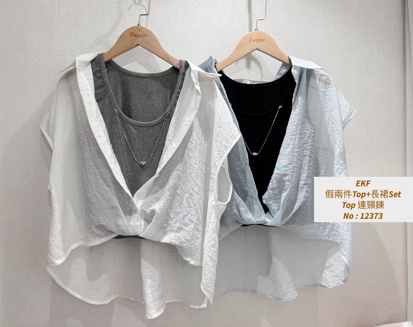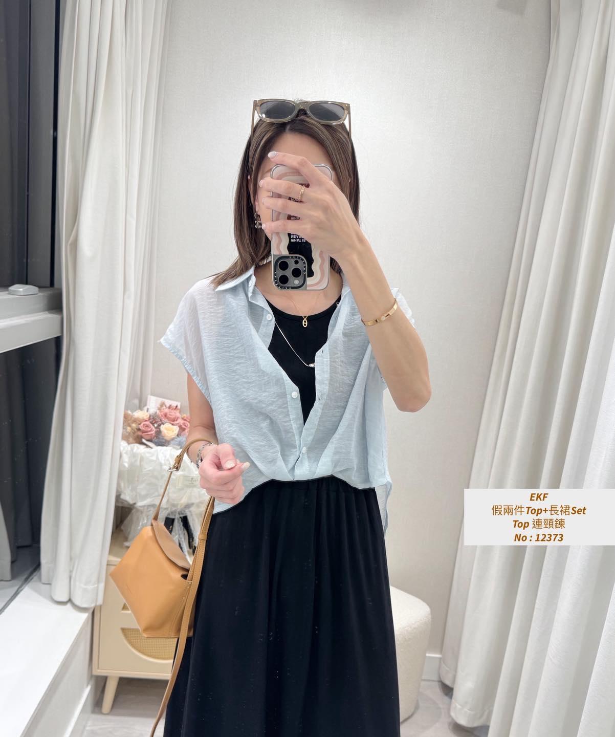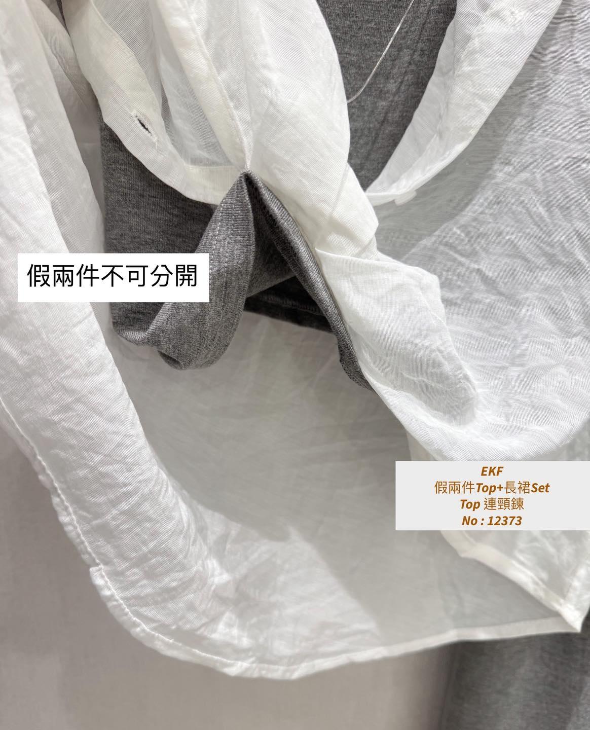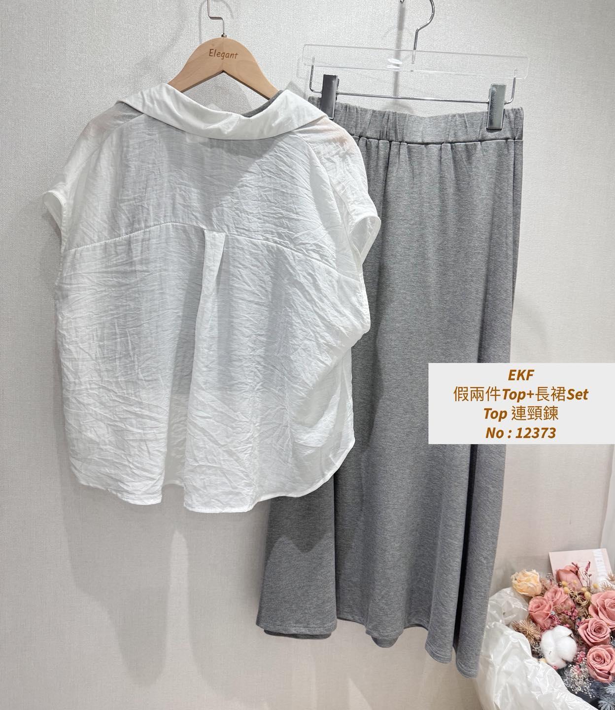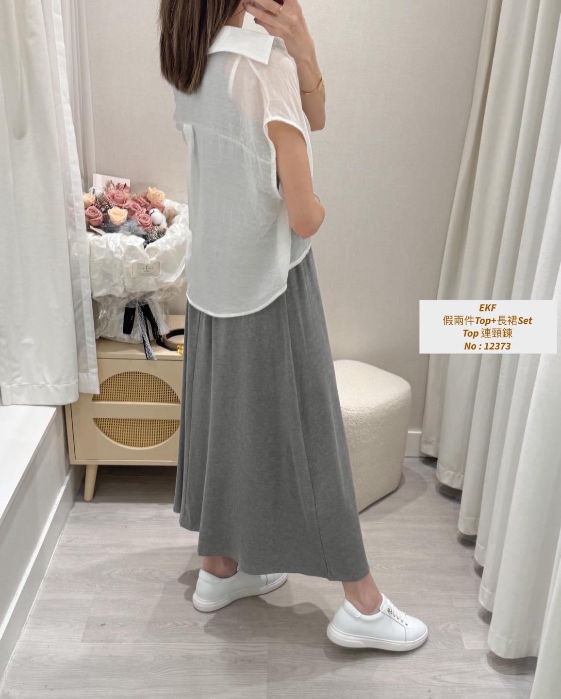 ・❥・假兩件Top+長裙Set ・❥・ ・❥・Top 連頸鍊,可拆 ・❥・背心+雪紡Top假兩件款不可分開 ・❥・橡筋腰棉料長裙 '*•.¸♡ 白拼灰色 / 藍拼黑色 / 2 Colour ♡¸.•*' ✎ No: 12373 ✎ Size : 背心 : Chest 36-42 Length 15.5" Top : 前長 18 後長 22" Dress : Waist 24-49 Hip 46-58 Length 32"