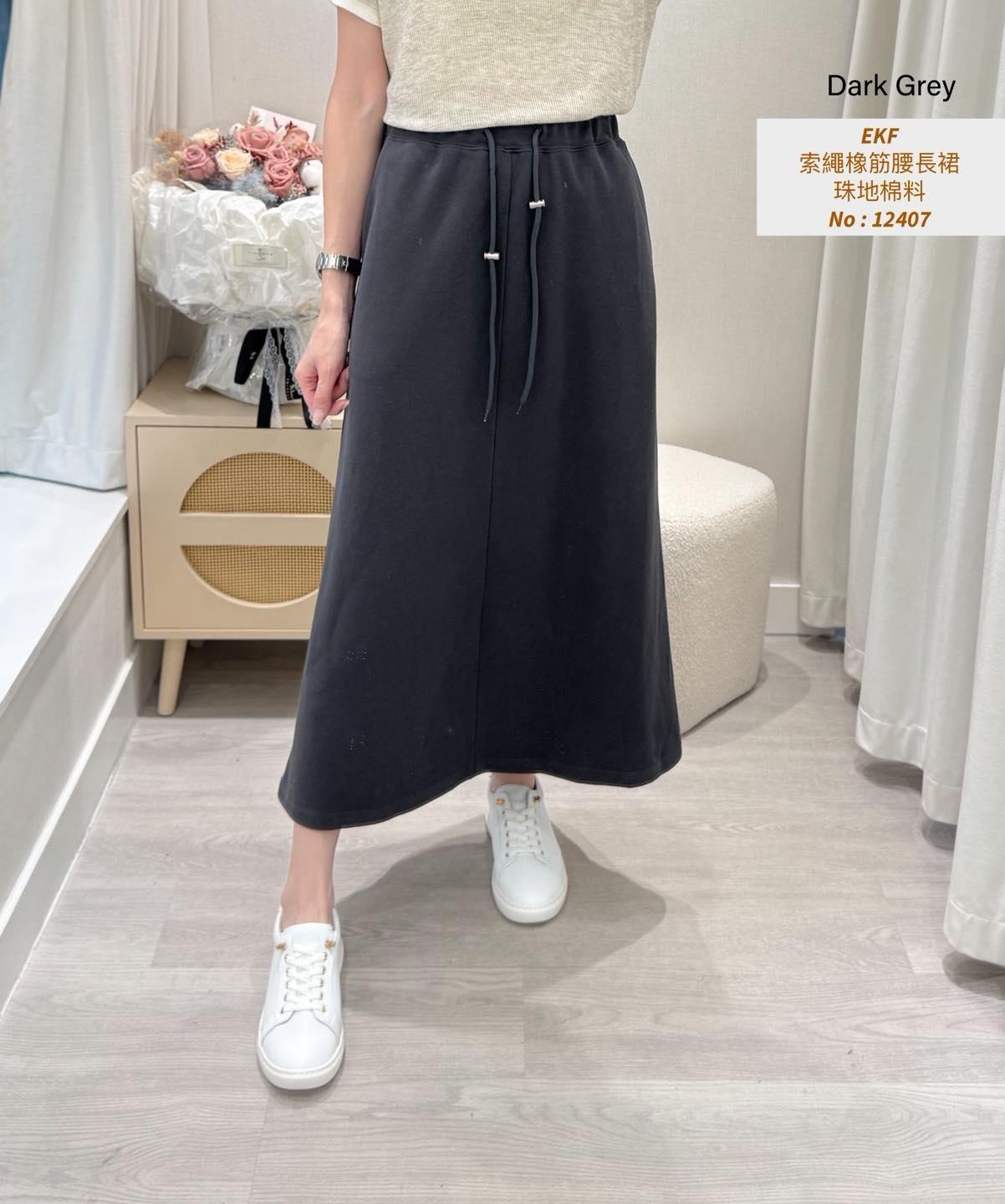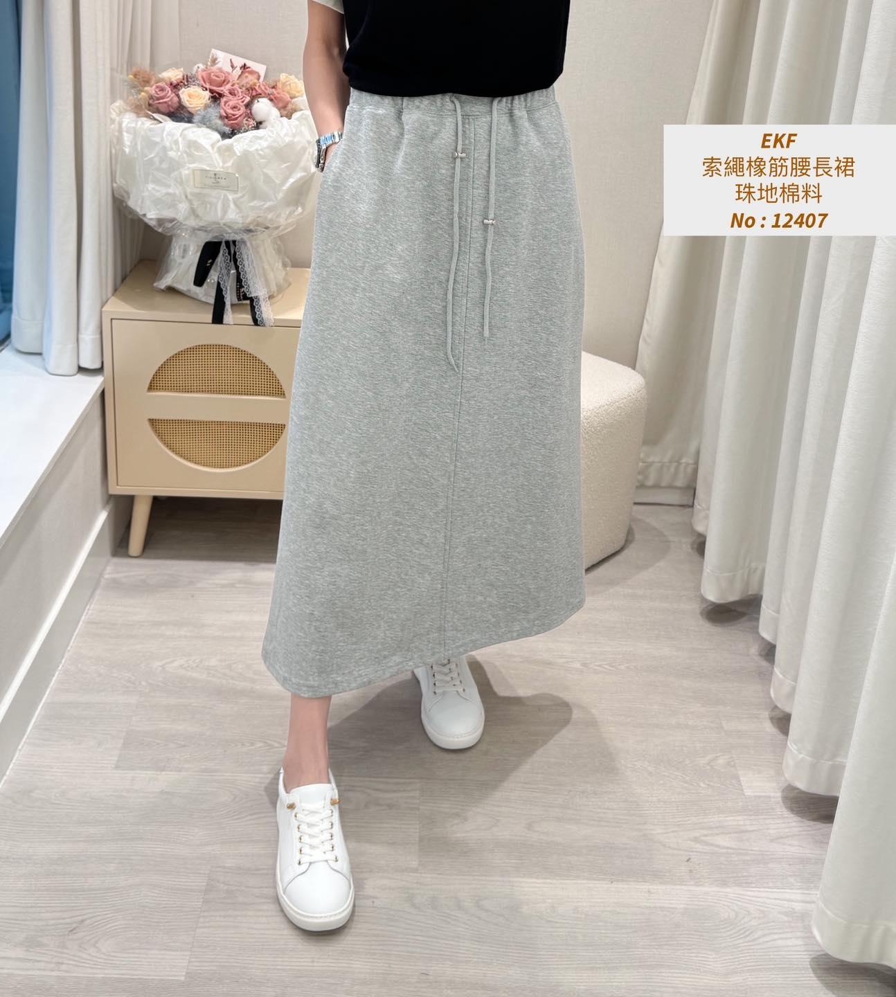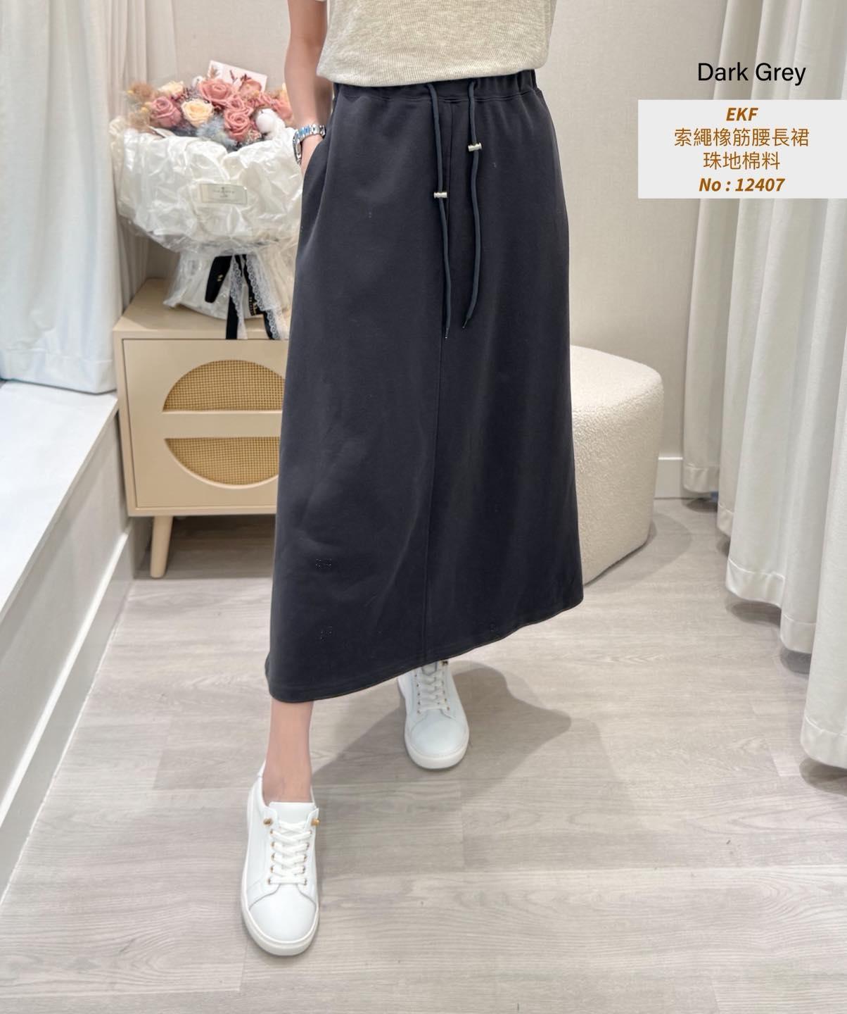 ・❥・索繩橡筋腰長裙・❥・ ・❥・珠地棉料 ・❥・兩側裙袋位 '*•.¸♡ 淺灰 / 深灰 / 2 Colour ♡¸.•*' ✎ No: 12407 ✎ Size : Waist 25-34" Hip 40-50" Length 33"